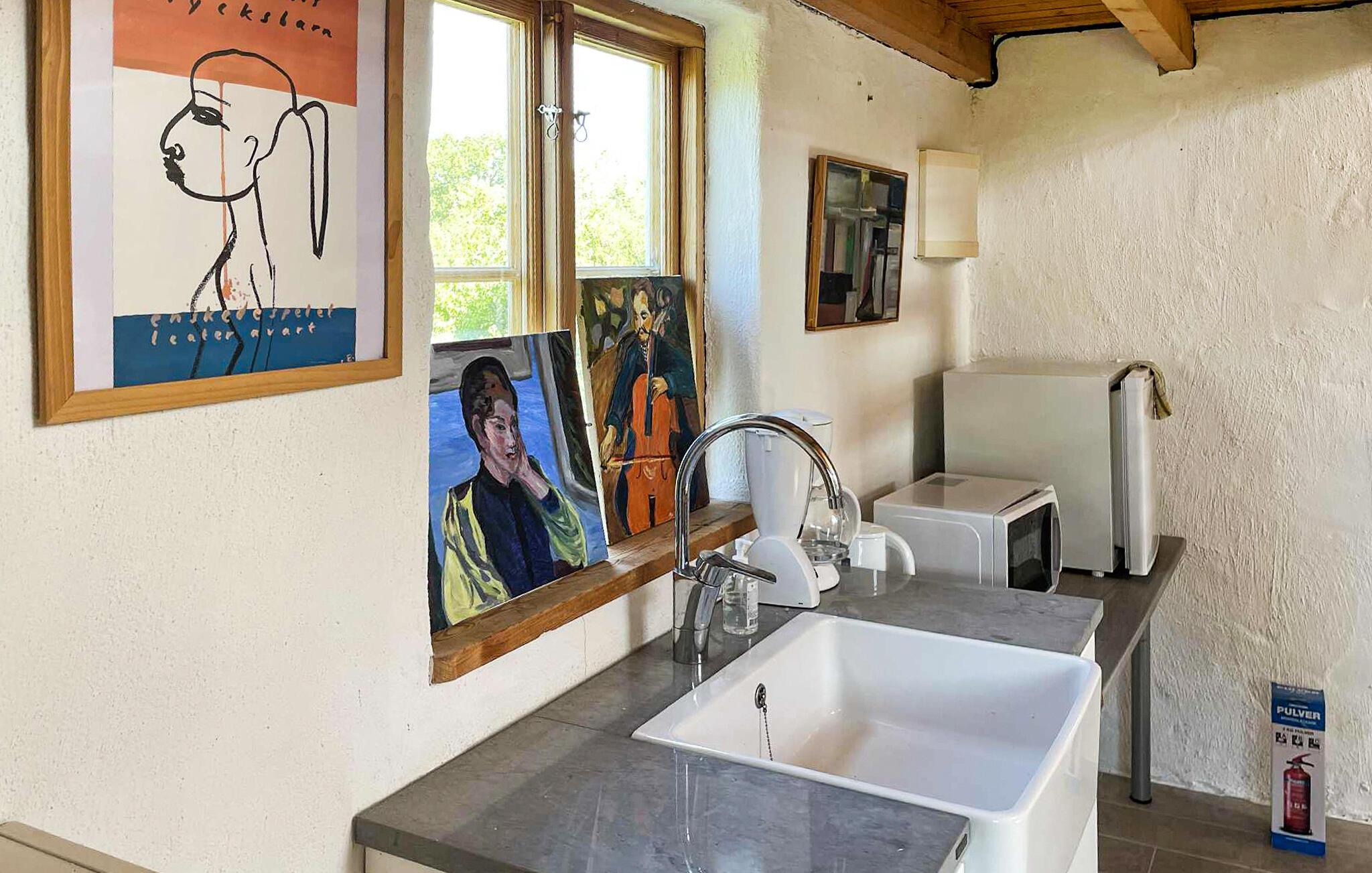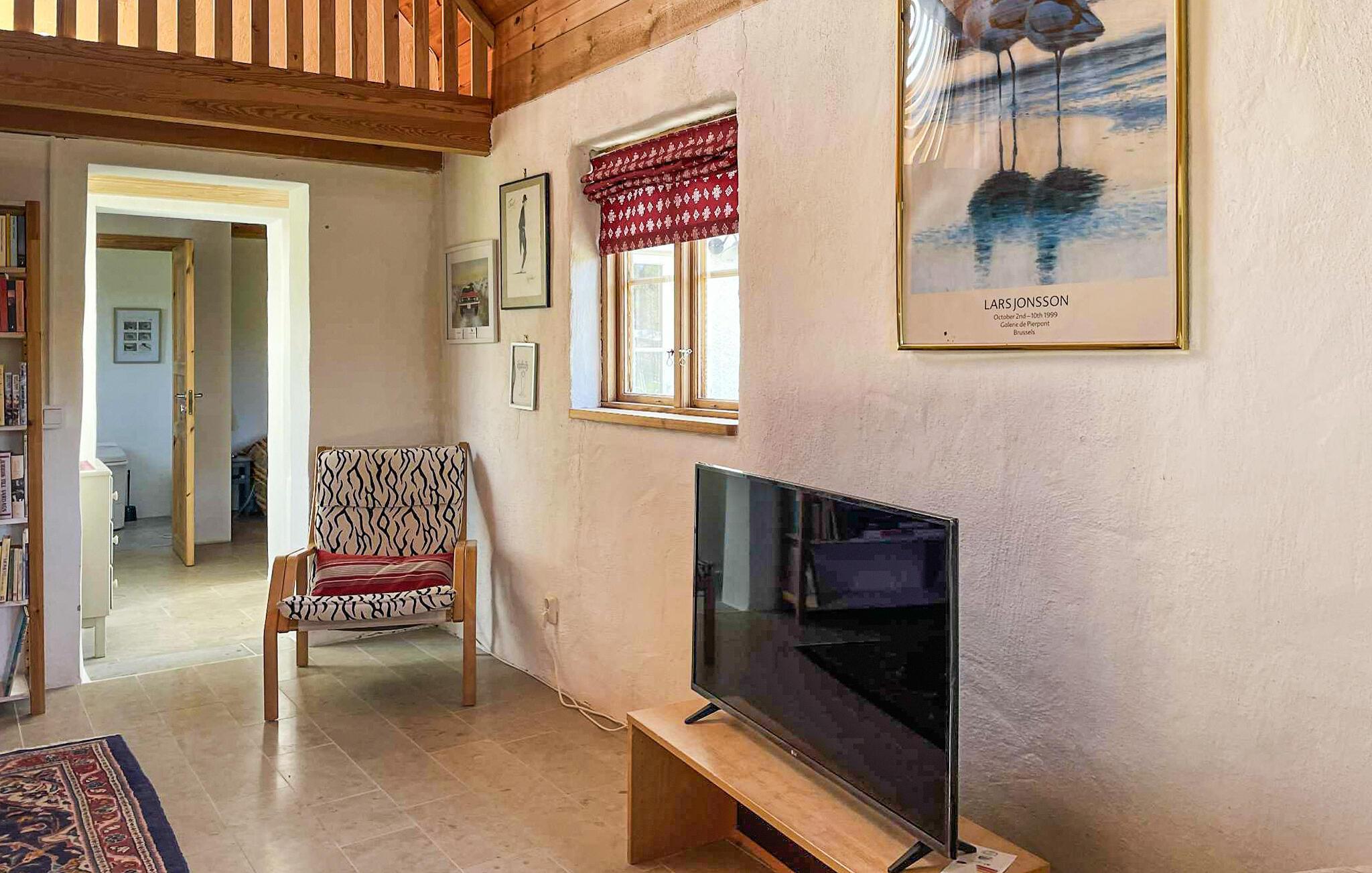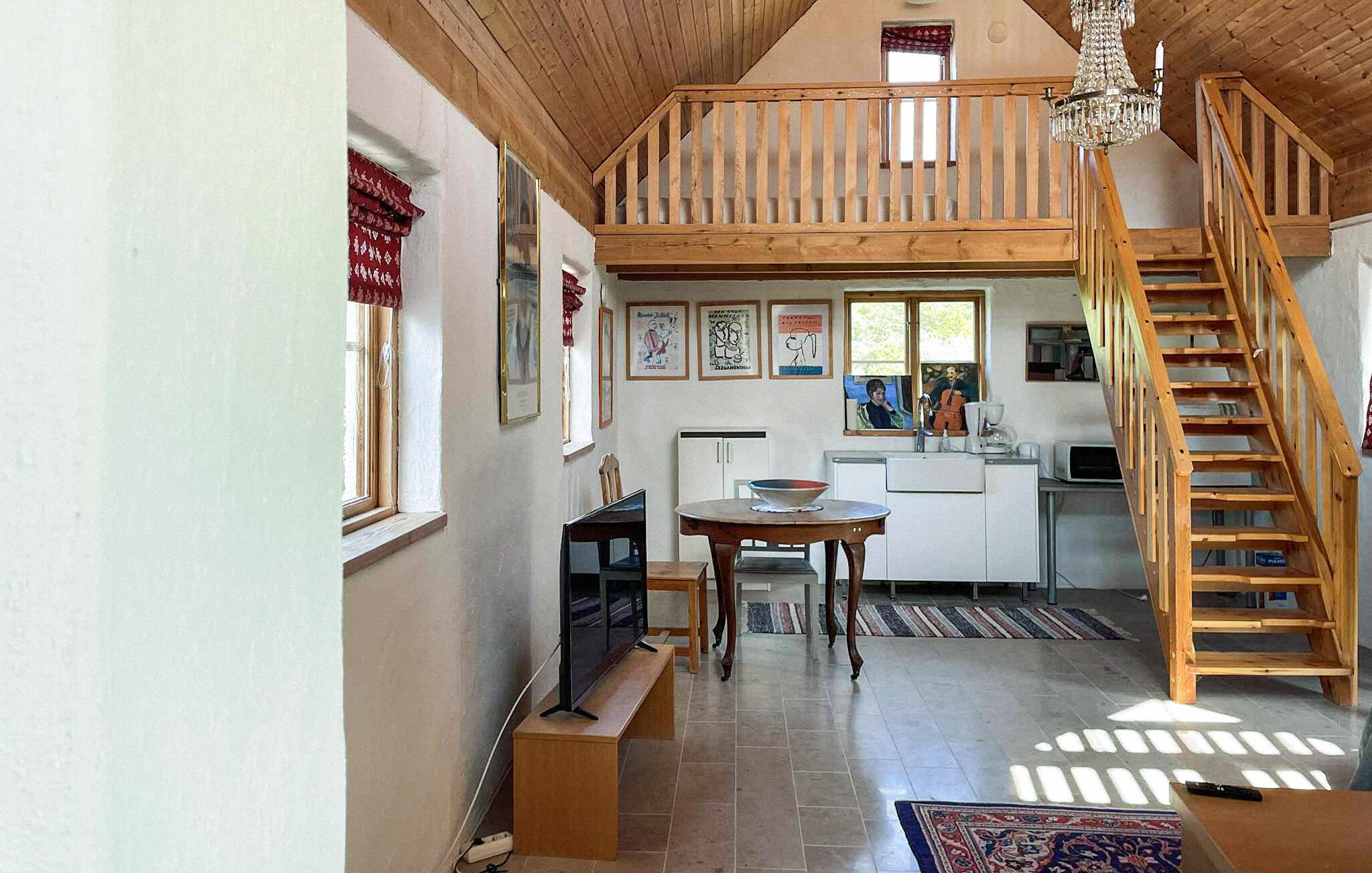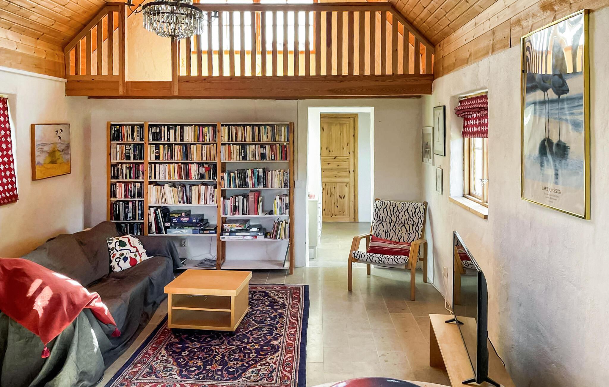 Dieses originell eingerichtete Haus ist der ideale Rückzugsort für Ihre Auszeit vom Alltag. Der offene Wohnbereich, die hohe Holzdecke und eine gemütliche Galerie schaffen eine ebenso einladende wie entspannte Atmosphäre. Eine kleine Bibliothek lädt zum Schmökern ein, während in der Küche die Kaffeemaschine summt und die Zeit stillzustehen scheint.