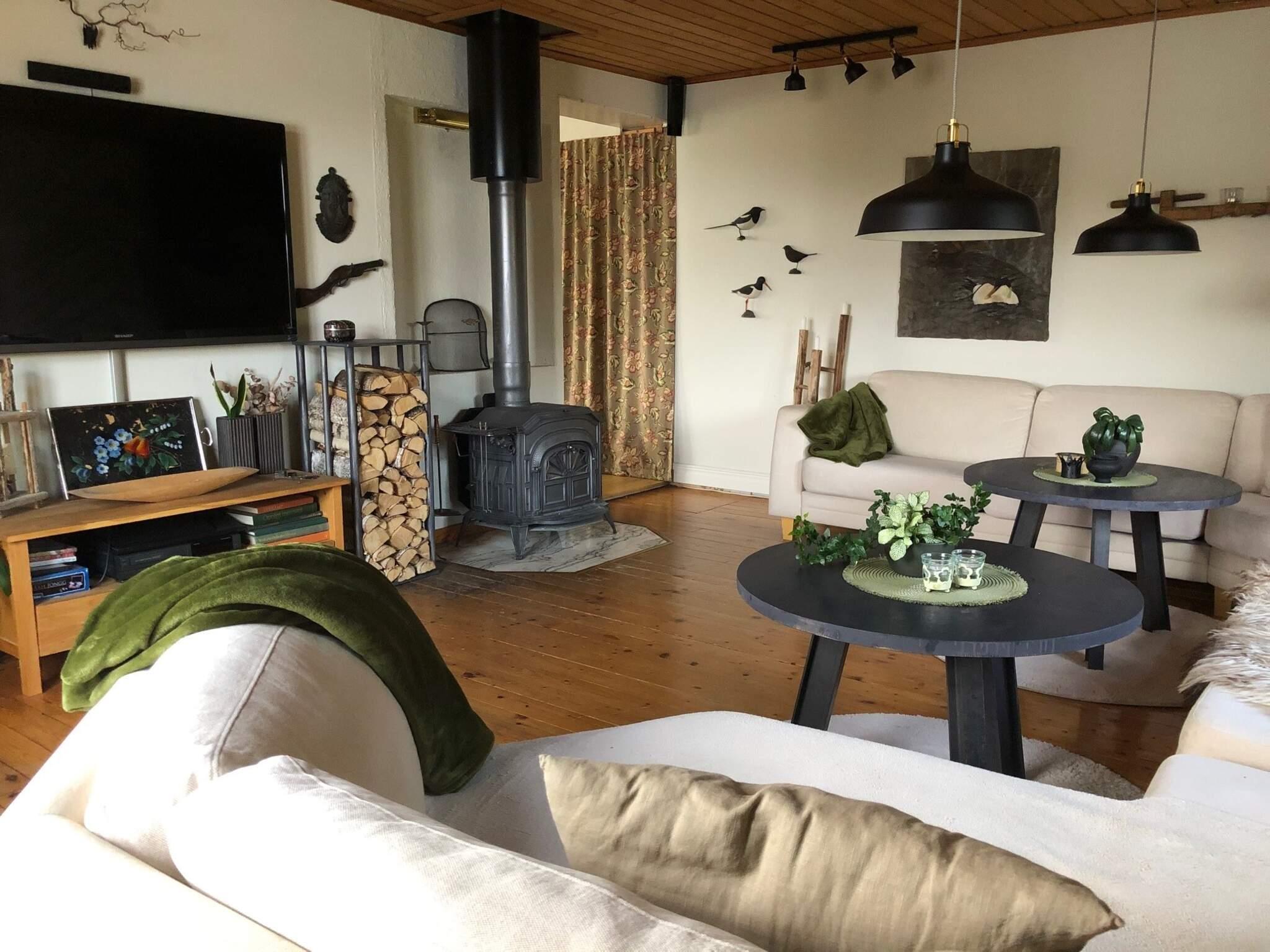 Was für eine Traumlage! Hier sind Sie umgeben von friedlicher Natur und genießen eine fantastische Aussicht. Das Haus ist ein älteres, teilweise renoviertes Haus mit erhaltenem Charme. Es hat eine Gesamtfläche von ca. 300 m² und steht Ihnen als Gast zur alleinigen Verfügung, obwohl etwa die Hälfte der Zimmer nicht genutzt werden kann. Die Küche ist modern und komplett ausgestattet und bietet alles, was Sie für die Zubereitung großer und kleiner Mahlzeiten benötigen. Neben den Sitzgelegenheiten in der Küche gibt es einen großen Esstisch, an dem die ganze Gesellschaft Platz findet.