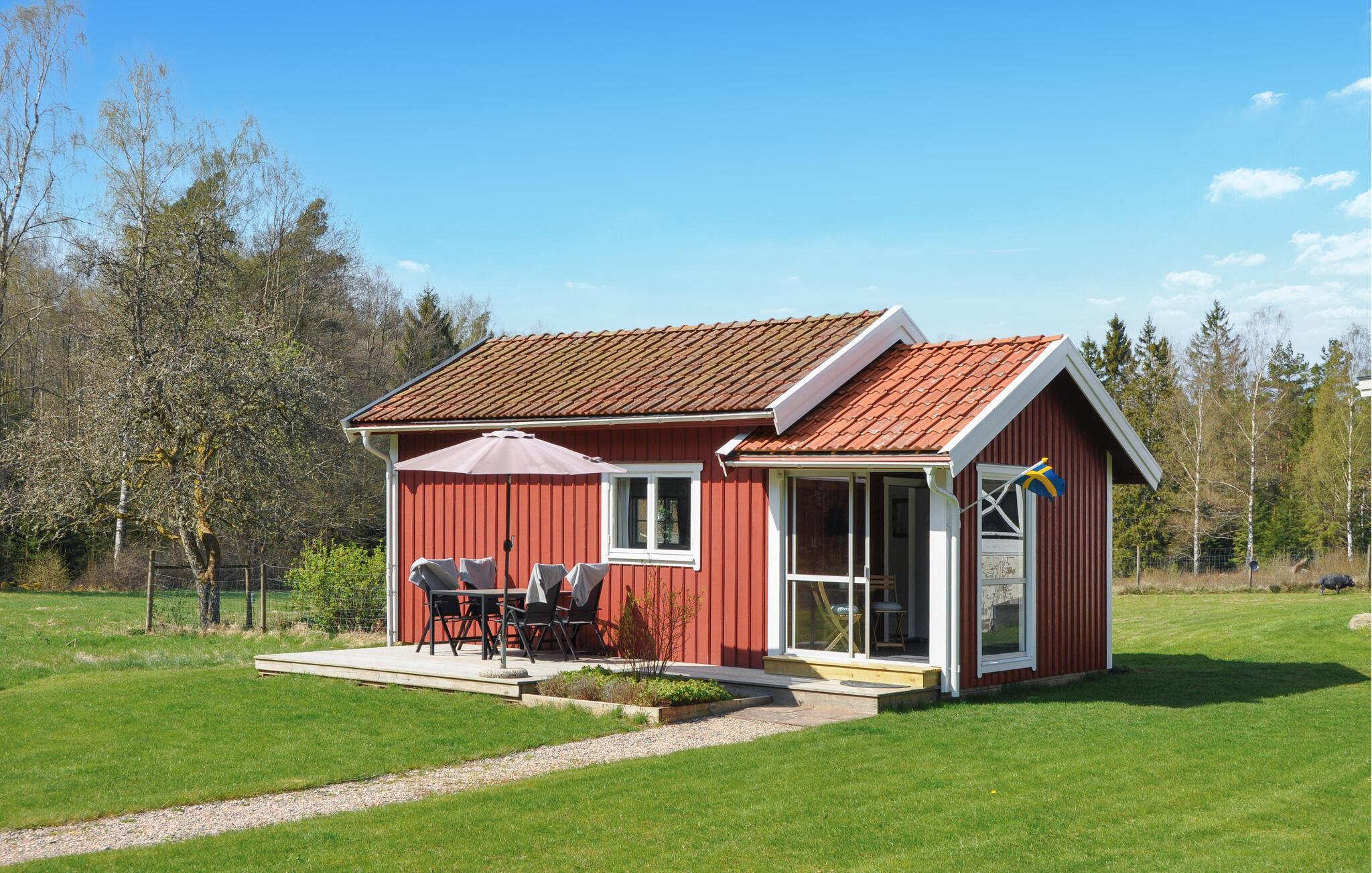 Schwimmen und angeln können Sie in Allmags Kile und dem Fjord (ca. 1 km). Der Golfclub Almagags mit 9-Loch-Platz liegt etwa 2 km entfernt. Für Tagesausflüge gibt es viele kleine Juwelen zu besuchen, Fischerdörfer auf der Westseite der Insel, gemütliche Restaurants in den Küstengemeinden, einige mit Künstleraufführungen am Abend, Gehöfte, Museen und vieles mehr. Oder machen Sie einen Angelausflug auf offener See mit einem Bootscharter. Wenn Sie einkaufen möchten, benötigen Sie mit dem Auto etwa 20 Minuten zum Orust-eigenen Discounter Göksäter. Nach circa 40 km Fahrt kommen Sie zu einem der größten schwedischen Einkaufszentren in Torp bei Uddevalla. Oder besuchen Sie Göteborg (70 km), die Küstenstadt mit einer großen Auswahl an Unterhaltung, Aktivitäten und Kultur wie dem Vergnügungspark Liseberg, Slottsskogen oder einem Spaziergang auf der Avenyn mit allen Restaurants und Cafés.
