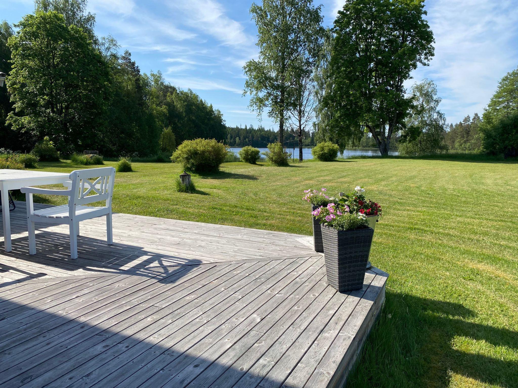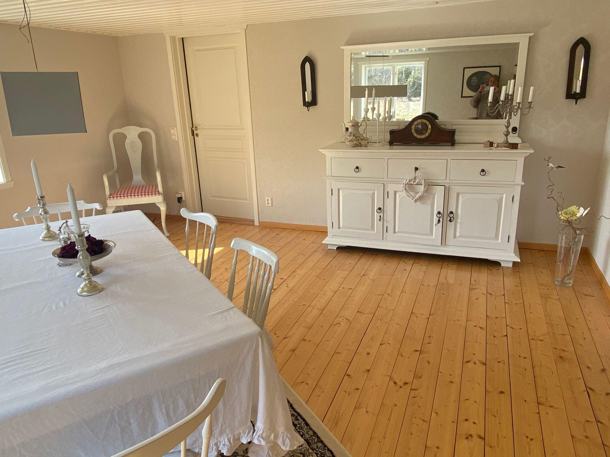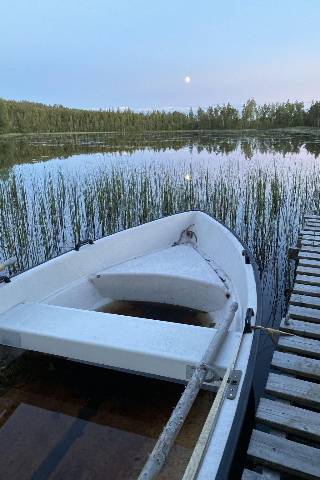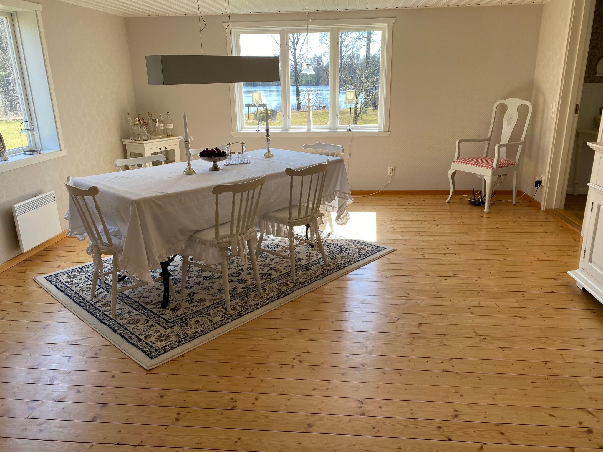 "Skuggebo Gårdsjön" – der Name sagt schon, dass es sich um ein direkt am Wasser liegendes Haus handelt, ein småländisches Ferienidyll für Familien und Angler in wirklich bester TOP-Ausstattung. Der Gårdsjön mit unserem Bootssteg liegt ca. 25 m direkt vor Ihnen, der kleine fischreiche Gölen befindet sich ca 150 m hinter dem Haus in einer Talsenke und der große und über die Grenzen Südschwedens hinaus als eines der besten Zandergewässer bekannte Ruskensee ist nur ca 700 fußläufig entfernt.Wer Ruhe, Natur und Erholung sucht und dennoch eine annehmbare Anbindung an die Infrastruktur des täglichen Lebens erwartet, ist bei uns in Skuggebo genau richtig.Das Haupthaus, unser Saunahaus sowie die original lappländische Grillhütte (beides gegen Aufpreis anzumieten) liegen auf einem ca. 3.500 m großen absoluten Sonnengrundstück. Zwischen Haus - und See verläuft lediglich die kleine und ruhige Straße nach Sandvik.Wir haben dieses idyllisch gelegene Objekt von Grund auf vollständig renoviert und gänzlich neu eingerichtet. Ein neues Badezimmer, die neue funktionelle helle Einbauküche sowie neue Oberböden, Elektrizität und eine große Terrasse mit Seeblick entsprechen unserem hohen Anspruch an ein Gästedomizil. Alle Räume sind hell und typisch skandinavisch eingerichtet. Es fehlt Ihnen hier an nichts. Die ganze Geschichte zum Haus haben wir auch auf unserer eigenen Seite verfasst. Das Haus ist mit seinen drei Schlafzimmern mit Doppelbetten und zwei weiteren Schlafcouchen bis zu einer Belegung von 8 Personen ausgelegt. Am günstigsten ist die Belegung mit 6 Personen in den drei Schlafzimmern. Bei einer Belegung mit mehr als 6 Personen erhöht sich die Endreinigungspauschale geringfügig. Bei einer Nutzung mit mehr als 6 Personen bitten wir um vorherige Kontaktaufnahme. Beginnen Sie mit uns an dieser Stelle einen virtuellen Rundgang durch unser Haus „Skuggebo Gårdsjön“:Sie betreten das Haus entweder von hinten durch den schwedentypischen Hintereingang oder direkt von vorne durch den Wintergarten. Wir beginnen hier üblicherweise von hinten, da Sie hier auch Ihr Auto parken. Zuerst gelangen Sie in den Vorraum, der als Vorratskammer und Garderobe genutzt wird. Hier steht auch der zusätzliche Gefrierschrank.Dann gelangen Sie in die große Wohnküche mit Esstisch und Stühlen für 6 Personen sowie die komplett ausgestattete weiße Landhausküche mit Induktionskochfeld, Dunstabzugshaube, Spülmaschine sowie Kühlschrank und reichlich Arbeitsfläche. Die Gestaltung der Wände entspricht dem typisch schwedischen Interieur und passt somit sehr schön zum Ferienhaus. Die Küche ist mit allen Utensilien und Einrichtungsgegenständen (wie z.B. Toaster, Mikrowelle, Kaffeemaschine etc.) versehen.Von der Küche aus geht eine Treppe ins Obergeschoss. Hier befinden sich zwei der drei Schlafzimmer, zur rechten und zur linken Seite sowie in der Mitte ein größerer Aufenthaltsraum. Ein Schlafzimmer verfügt über TV.Wieder unten, gelangen Sie durch die Küche in die Diele, von der es ins sehr große und helle Wohnzimmer auf der einen Seite und auf der anderen Seite in den Salon und Essbereich mit bis zu 8 Plätzen geht. Aus beiden Räumen haben Sie Seeblick. Ebenfalls geht es von der Diele ins Bad mit ebenerdiger Dusche, Waschmaschine und Toilette. Dann aus der Diele hinaus in den Wintergarten, durch den Sie wiederum das Haus zur Terrasse und See verlassen können.Das dritte und eigentlich das Elternschlafzimmer erreichen Sie landes - und alterstypisch durch das Wohnzimmer. Hell eingerichtet mit Doppelbett, Kleiderschrank und Kommode. Alle Schlafräume können abgedunkelt werden.Das ca. 22 qm große Wohnzimmer ist mit Sofas, Couchtisch und Flat-TV nebst WLAN ausgestattet. Die beiden großen Fenster lassen den ganzen Tag die Sonne rein.Beheizt werden können alle Räume mit elektrischen Elementen und mit einer modernen Wärmepumpe in der Diele. Die Wärmepumpe dient bei Bedarf auch als Klimaanlage. Alle Möbel und Einrichtungsgegenstände sind neu angeschafft worden.Außenbereich:Hier stehen Ihnen auf der sehr großzügigen Terrasse ausreichende Terrassen - und Gartenmöbel zur Entspannung zur Verfügung. Großer Tisch, Sonnenschirm und Liegen, Grillkamin und Wäschespinne. Voraussichtlich und je nach Lieferzeiten kann zum richtig urigen und abenteuerlichen Grillvergnügen die original lappländische Grillhütte angemietet werden. Sie steht dann direkt auf dem Grundstück.Ferner gibt es das kleine Ruderboot 3,90 m unten am See zum Angeln und zur Erkundung des Sees. Auf Wunsch und je nach Verfügbarkeit können zur Anwendung auf dem Ruskensee auch bis zu 5 größere Alu- Angelboote "Typ Linder Fishing 440" mit 5 und 6 PS Viertakter und entsprechender Ausstattung angemietet werden. Für die Anmietung wird eine Kaution erhoben. Die Boote sind in erster Linie für unsere Angler-Gäste sehr sinnvoll und liegen ca. 2 km nördlich die kleine Straße hoch in Sandvik im Bootshafen. Am Saunahaus findet sich ein Außenplatz mit Wasser und Edelstahl-Filetiertisch zum Ausnehmen des Fischfangs. Zusätzlich zu den Kühlschränken im Haus haben wir zei große Tiefkühltruhen im Außenhaus, die sich besonders zur Aufbewahrung des Fischfangs eignen. Einzelheiten siehe Details und nach Absprache. Unsere "Flotte" liegt in Sandvik in einem kleinen Bootshafen. Sandvik ist ca. 2 km die Straße entlang. Parkplätze sind dort ausreichend vorhanen. In Sandvik befindet sich zudem ein kleiner Sandstrand mit Liegewiese mit Grillplatz.Unterhaltung:Fernseher (Flat-TV), Sat-Anlage mit deutschen Programmen, Radio/CD-Player, viele Kinder- und Gesellschaftsspiele, Bücher, Krimis und Magazine, DVD-Player, Internetanschluss mit WLAN.Sonstiges:Haustiere sind leider nicht erlaubt, Nichtraucherhaus, vor Ort abzurechnende Nebenkosten zahlbar bei Abnahme. Die obligatorische Endreinigung erfolgt durch uns und ist kostenpflichtig. Damit gewährleisten wir auch den hohen Hygienestandard im Ferienhaus. Serviceleistungen und Hinweis