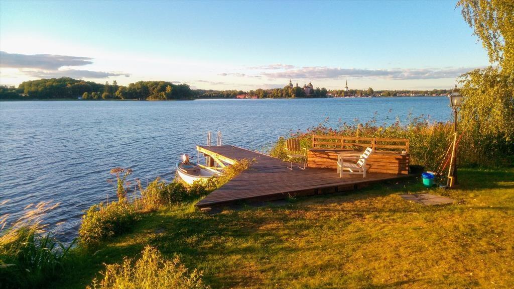 Das Ferienhaus Lotorp, eine Villa in schwedischen Stil mit wundervollem Wintergarten, liegt auf einem etwa 2.400 m² großen Seegrundstück direkt am See Mälaren, mit Blick auf Schloss Gripsholm. Das Nachbarhaus liegt in etwa 50 Meter Entfernung. Vom Steg springst du direkt in den See Mälaren oder stichst mit dem zum Haus gehörenden Ruderboot oder Kanu in See. Die bezaubernde Stadt Mariefred liegt in etwa 8 km Entfernung. Ein Schiff verkehrt regelmäßig in der wunderschönen Schärenlandschaft zwischen Mariefred und Stockholm und mit dem Auto sind es in etwa 70 km bis Stockholm.