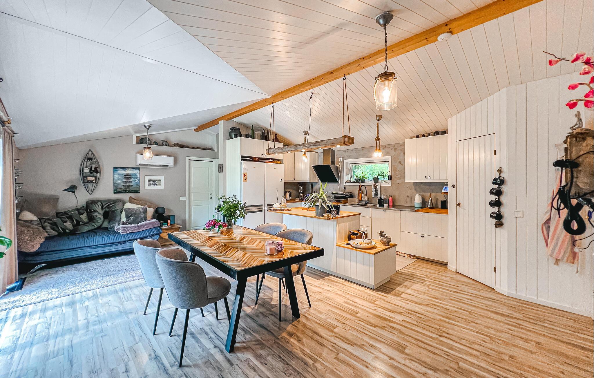 Dieses liebevoll eingerichtete Haus versprüht mit seinem rustikalen Charme und der farbenfrohen Ausstattung eine besonders behagliche Atmosphäre. Helle Räume, schöne Details und viele gemütliche Rückzugsorte sorgen für den idealen Rahmen für Ihre Auszeit, sei es beim Musikhören, beim gemeinsamen Spielen oder Kochen. Gestalten Sie Ihren Urlaub ganz in Ihrem eigenen Tempo in dieser entspannten Umgebung.
