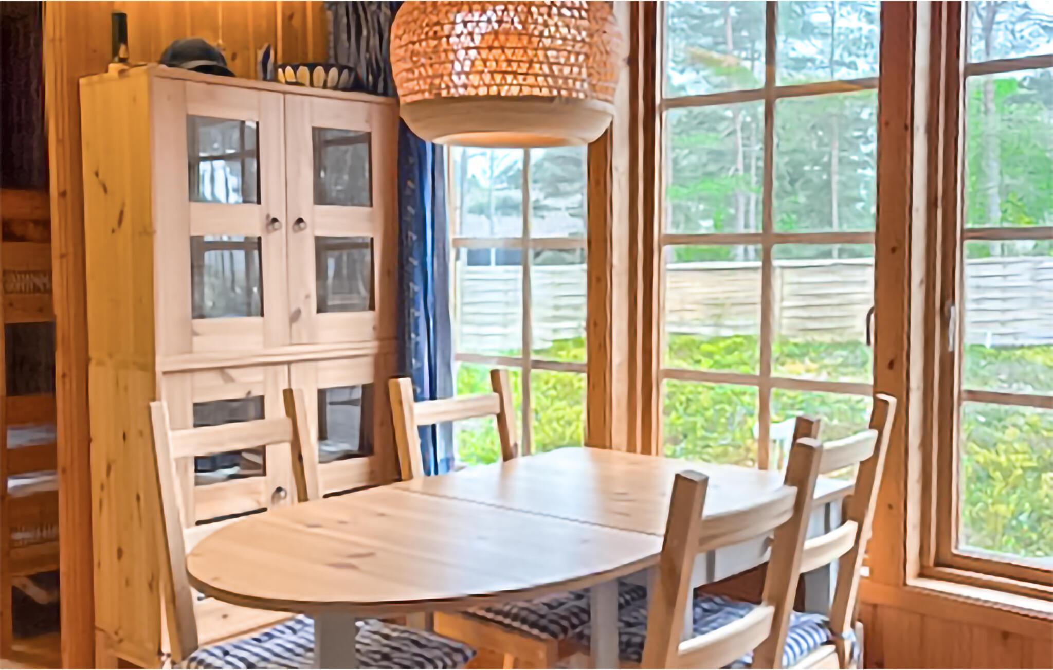 Machen Sie es sich in diesem rustikal anmutenden Ferienhaus gemütlich, das mit 2 Schlafzimmern Platz für bis zu 6 Personen bietet. Die mit Holz verkleideten Wände verleihen dem Haus seinen gemütlichen Charme. Das Wohnzimmer und die Küche liegen in offener Verbindung zueinander, so dass es leicht ist, hier eine schöne gemeinsame Zeit zu verbringen. Bei dem verfügbaren Kinderbett handelt es sich um ein Reisebett, dass im Schrank aufbewahrt wird.
