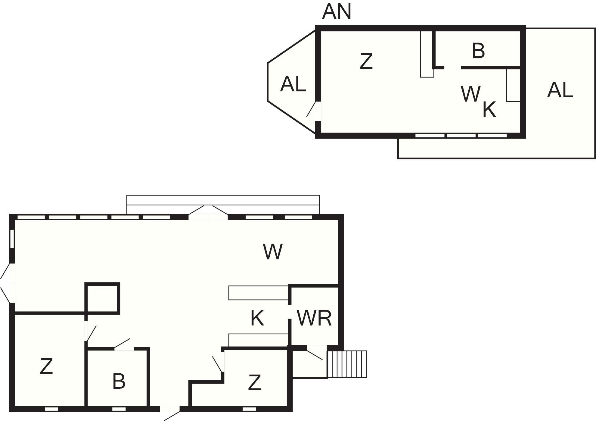 Das Ferienhaus verfügt außerdem über einen separaten Anbau mit großen Fenstern zum Meer und eigenem Balkon. Im Inneren befinden sich ein 140 cm breites Bett, eine Küchenzeile mit Herd und Mikrowelle sowie ein Badezimmer mit Dusche. Sommermöbel und ein Grill auf der Rasenfläche machen dies zu einer wunderbaren Oase zum Entspannen, Schwimmen, guten Essen und netten Gesprächen.