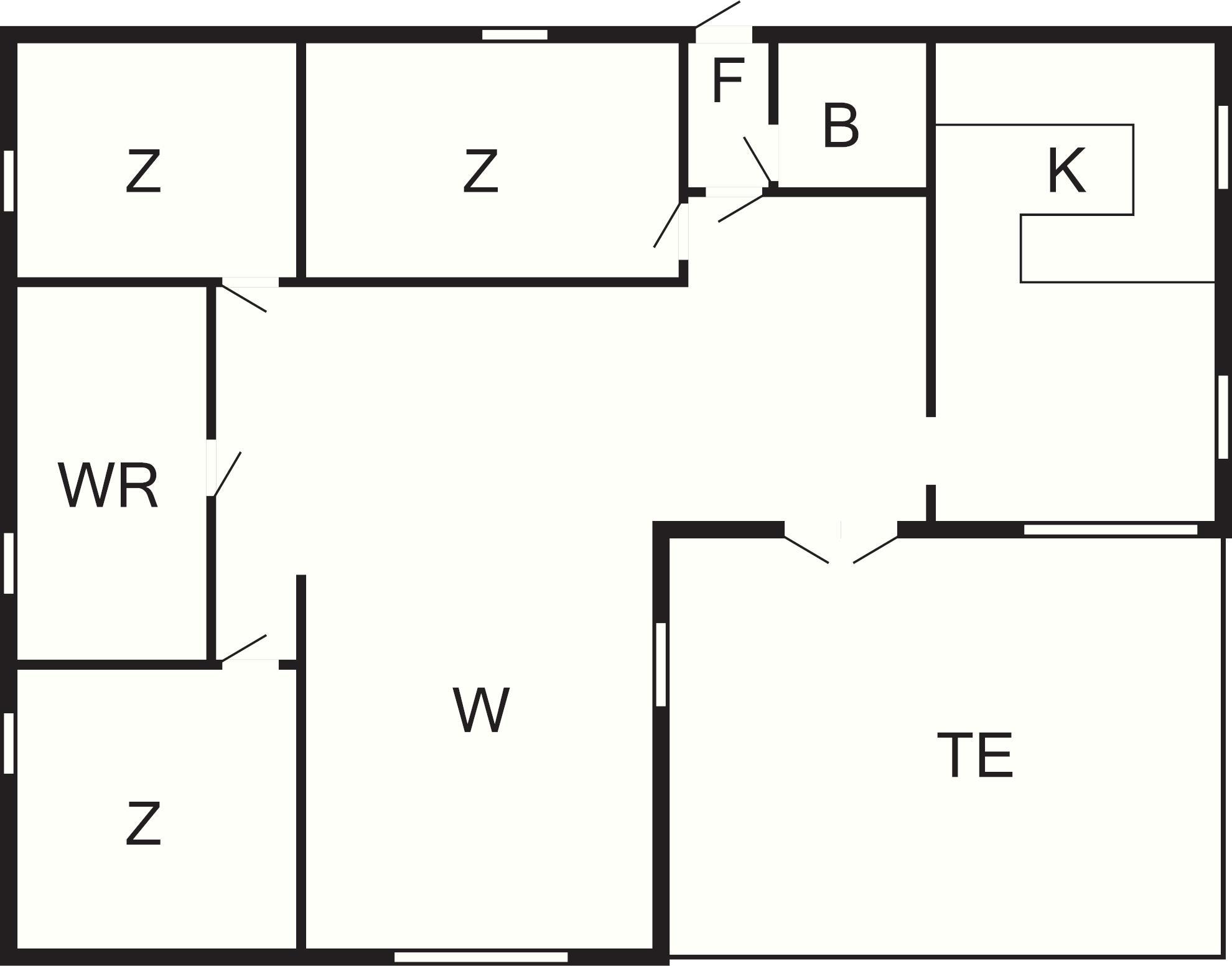 Das Ferienhaus hat ein großes Wohnzimmer, dessen Dach bis zum First offen ist. Es gibt hier eine schöne Sitzecke vor dem Kamin (Brennholz inklusive). WLAN ist ebenso vorhanden wie ein TV-Bildschirm mit Apple TV. Die Küche verfügt u.a. über einen Geschirrspüler und einen Essbereich. Sie haben drei schöne Schlafzimmer mit guten Betten im Haus; zwei mit Doppelbett, das dritte mit zwei Einzelbetten. Es gibt auch ein Badezimmer mit Dusche, Waschbecken und Waschmaschine sowie ein Gäste-WC.