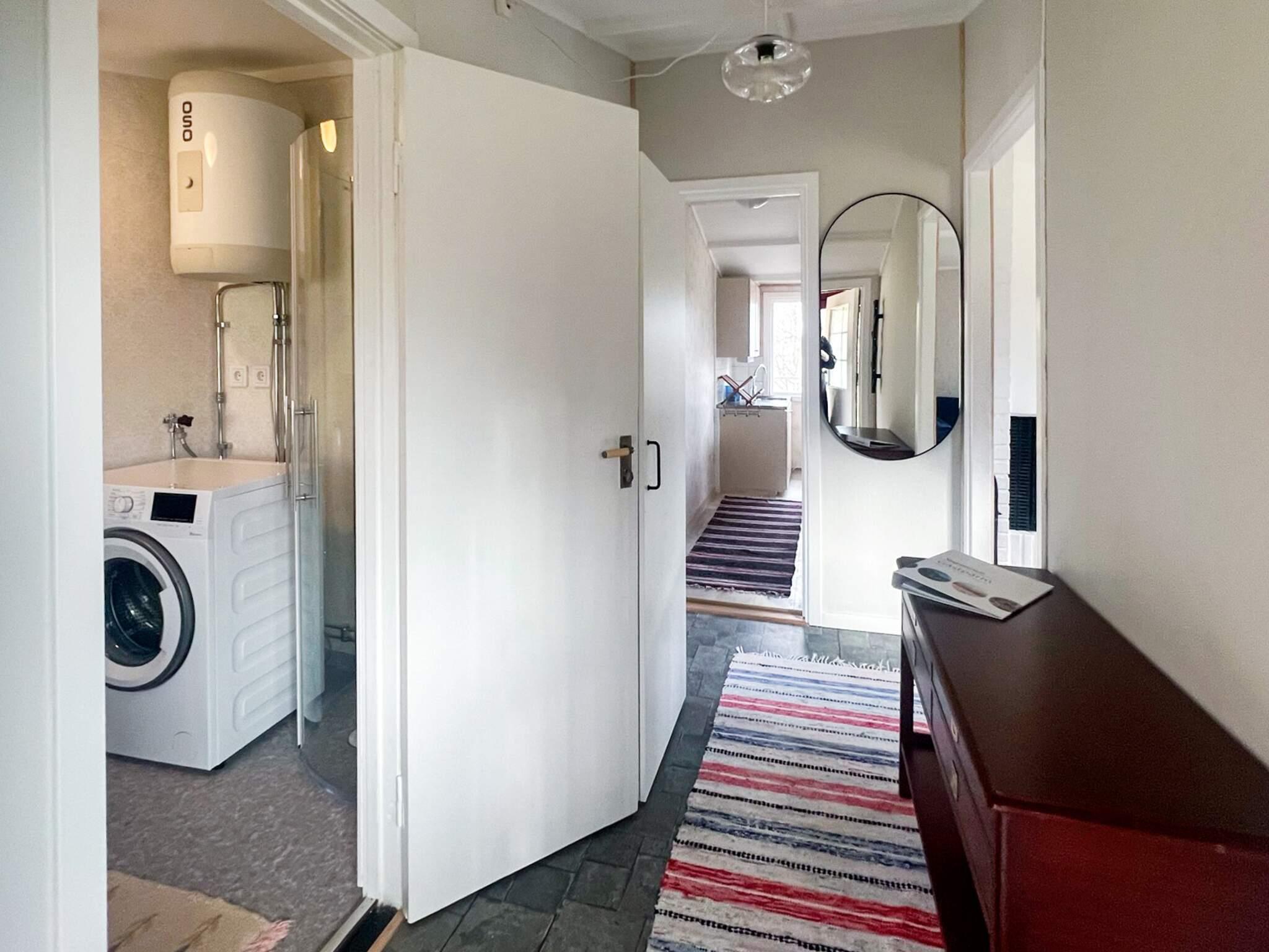 Es gibt im Haus ein Schlafzimmer mit zwei Einzelbetten, die auf Wunsch auch nebeneinander gestellt werden können. Zwei zusätzliche Schlafplätze stehen auf der Schlafcouch im Wohnzimmer zur Verfügung. Im großen, hellen Badezimmer gibt es eine kleine Dusche und eine Waschmaschine.