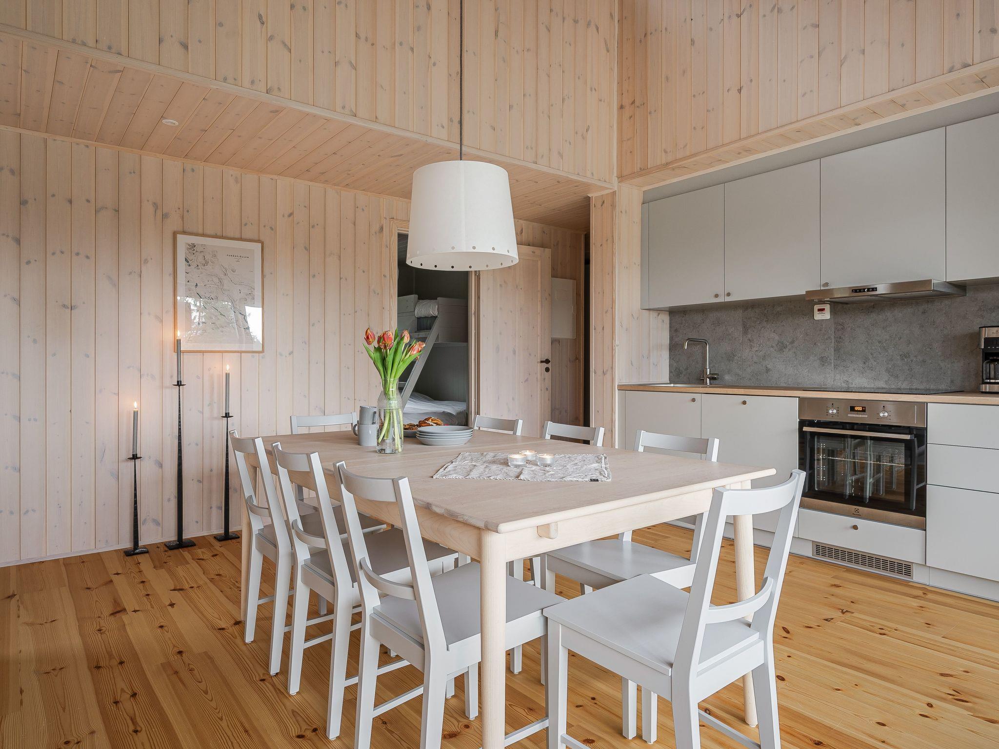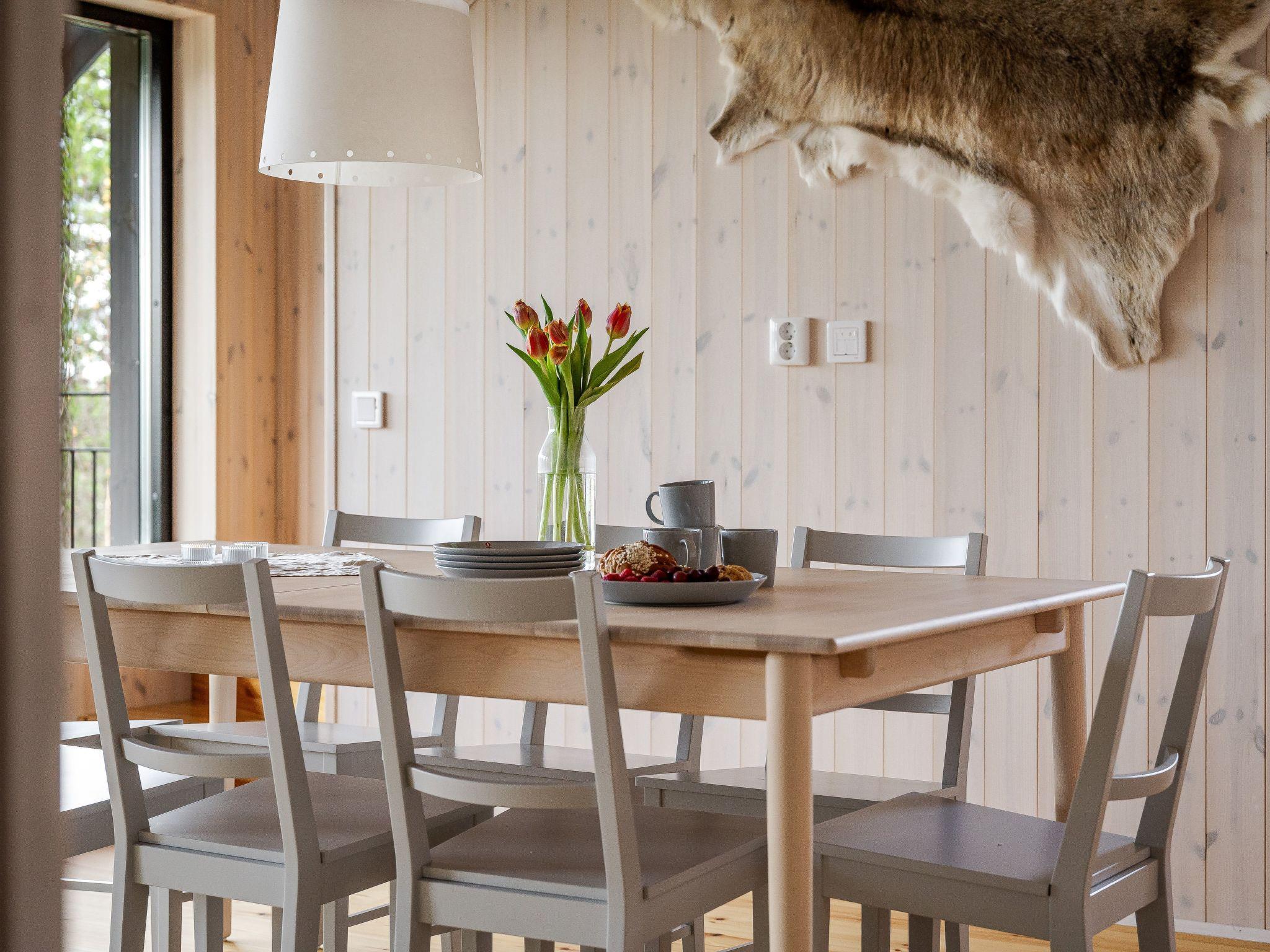 "Renstråket 2002", 5-Zimmer-Wohnung 74 m2 auf 2 Stockwerken, im Obergeschoss. Hell, sehr modern und geschmackvoll eingerichtet: offenes Wohn-/Esszimmer mit Panoramafenster. Ausgang zur Terrasse, Richtung Südwesten. 1 Doppelzimmer mit 1 Doppelbett (160 cm, Länge 200 cm). 1 grosses Zimmer mit 1 x 1 Etagenbetten (90 cm, Länge 200 cm) (120 cm, Länge 200 cm). Offene Küche (Backofen, Geschirrspüler, 4 Glaskeramikplatten, Toaster, Wasserkocher, Mikrowelle, Tiefkühler, elektrische Kaffeemaschine). Dusche/WC, Sauna. E-Heizung. Obergeschoss: 1 Zimmer mit 2 Betten (90 cm, Länge 200 cm). 1 Doppelzimmer mit 1 Doppelbett (160 cm, Länge 200 cm). Sep. WC. Parkettboden. Panoramasicht auf die Berge und den Wald. Zur Verfügung: Kinderhochstuhl, Babybett. Internet (WLAN, gratis). Bitte beachten: Nichtraucher-Haus. Rauchmelder, Feuerlöscher.