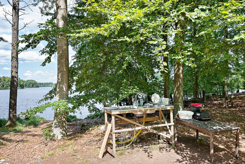 Diese schöne, aus dem 17. Jahrhundert stammende Kate, war ehemals an anderer Stelle errichtet worden und wurde von ihrem Eigentümer am jetzigen Platz, unmittelbar am See Stora Hensjö, im ursprünglichen Zustand wieder aufgebaut. Sie verfügt über ein großes, kombiniertes Wohn-/Schlafzimmer mit rustikaler Möblierung und zwei Schlafmöglichkeiten. Weiterhin gibt es eine Küche mit Elektroherd, Kühl- und Gefrierschrank und offenem Kamin. Das Haus kann elektrisch beheizt werden, hat jedoch keinen Wasseranschluss. Da der See Trinkwasserqualität hat (die Kommune Tingsryd gewinnt hier ihr Trinkwasser), ist die Wasserversorgung aber kein Problem. Außerdem kann man Wasser auch in Kanistern vom etwa 300 m entfernt liegenden Wohnhaus des Vermieters holen. Es steht eine Außendusche und eine Spüle mit kaltem Wasser zur Verfügung. Dusche und Spülanrichte werden durch eine Pumpe mit Seewasser versorgt. Ein separates, kleines Gästehaus, ausgestattet mit zwei weiteren Betten, bietet weiteren Gästen Platz. Ein besonderes Highlight ist eine mit Holz zu beheizende Sauna, die in einem kleinen Nebengebäude untergebracht ist. Auch das "stille Örtchen", ein rustikales Plumpsklo, befindet sich in einem dritten Nebengebäude. Den Gästen stehen ferner Gartenmöbel und Grill sowie ein Ruderboot zur Verfügung.