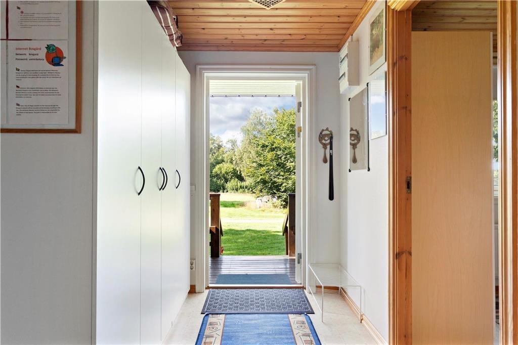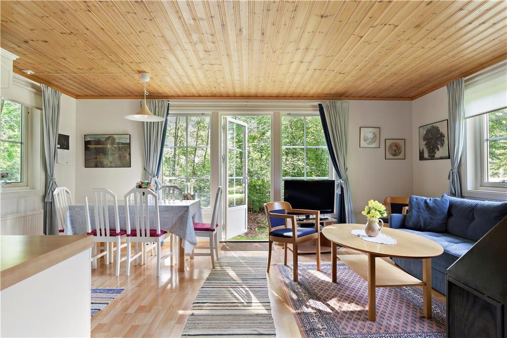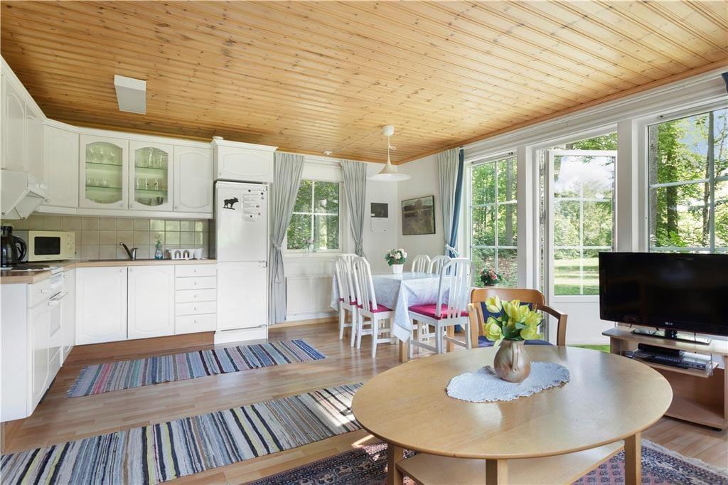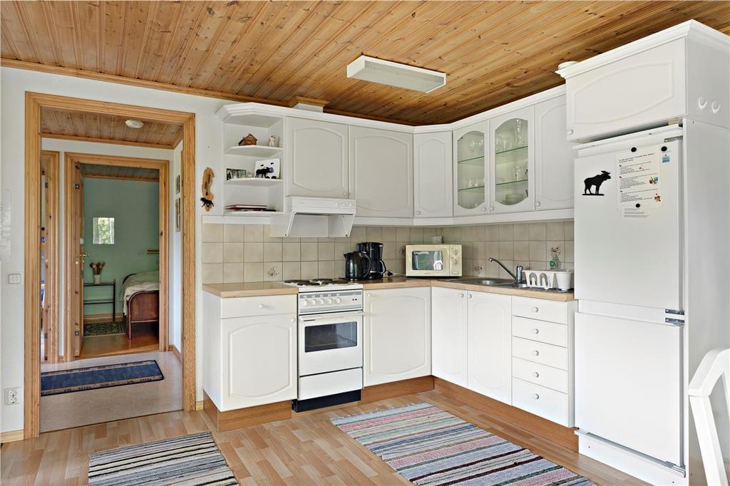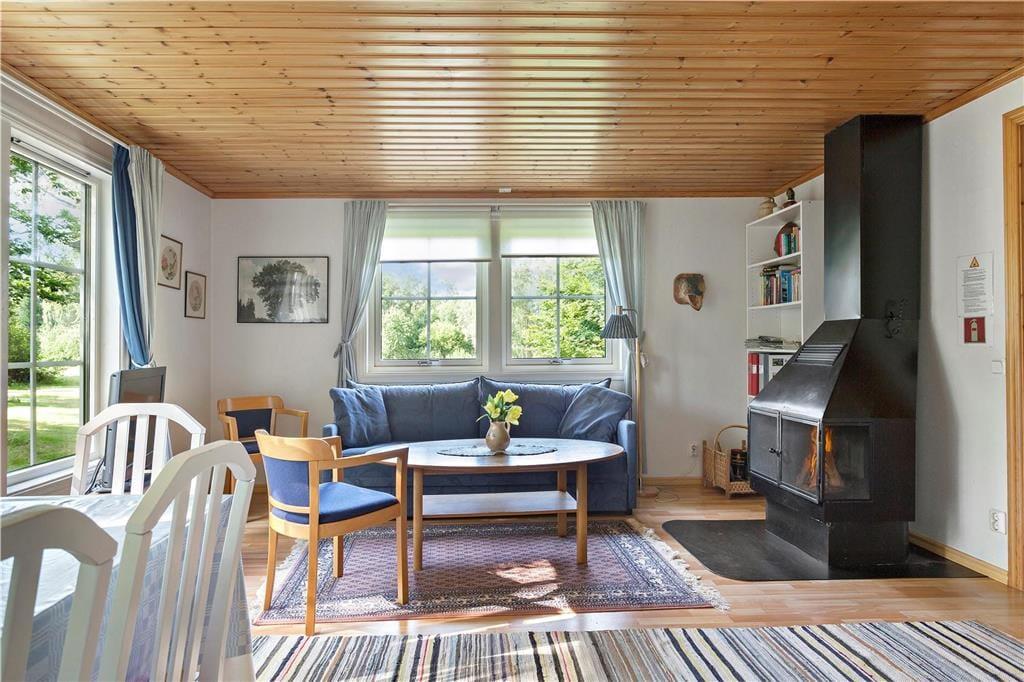 Die baugleichen, komfortablen Ferienhäuser Eken und Boken liegen nur etwa 75 m auseinander und bieten bei jeweils 58 m² Wohnfläche ein geräumiges Wohnzimmer mit großzügigem Küchenteil und zwei Schlafzimmer, eines davon mit Doppelbett, das andere mit einem Etagenbett ausgestattet, sowie ein Duschbad mit WC und Waschmaschine. Die Wohnzimmer sind mit einem Doppelbettsofa für zwei weitere Gäste möbliert und verfügen über Kaminofen, Internetzugang (100/10 Mbit), SAT-TV, DVD sowie Sitz- und Essecke. Die modernen Küchen sind mit Elektroherd, Dunstabzug und Kühl- und Gefrierschrank ausgestattet. Beide Häuser verfügen über fließend kaltes und warmes Wasser aus eigenem Brunnen und können elektrisch bzw. mit dem Kaminofen beheizt werden. Eine kleine, überdachte Veranda, Gartenmöbel und Grill komplettieren die Ausstattung. Ein Kinderbett kann bei Bedarf bereitgestellt werden.