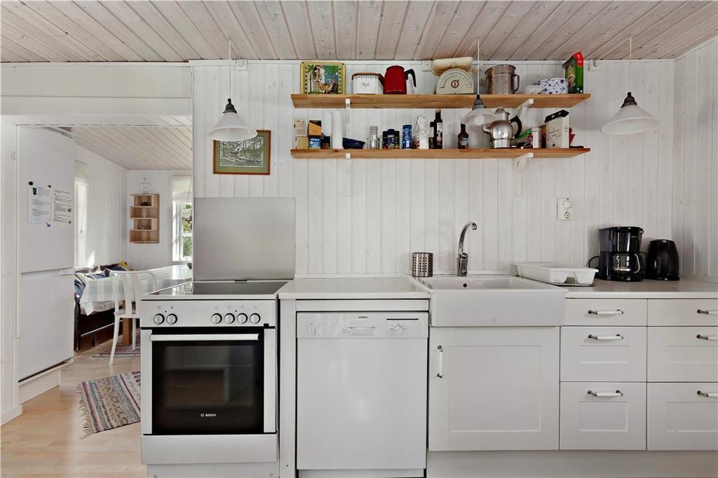 Das historische, geschmackvoll modernisierte und um einen Anbau erweiterte Ferienhaus bietet seinen Gästen auf einer Wohnfläche von etwa 120 m² ein gemütliches Ambiente zum Wohlfühlen. Es verfügt im Erdgeschoss über ein Wohnzimmer, ausgestattet mit Sitzgruppe und Kaminofen sowie über ein Schlafzimmer mit zwei Betten. Außerdem befindet sich hier eine moderne Küche mit Elektroherd mit Backofen, Geschirrspüler und Kühl-/Gefrierkombination und einem Essplatz sowie ein modernes Duschbad mit WC, Handwaschbecken und Waschmaschine. Das Obergeschoss ist mit einem möblierten Wohnflur mit Sitzgruppe, CD-Spieler und SAT-TV ausgestattet sowie mit zwei weiteren Schlafzimmern, eines davon mit zwei Betten, das andere mit drei Betten möbliert. Das Haus verfügt über einen Internetanschluss, hat fließend kaltes und warmes Wasser und kann elektrisch beheizt werden. Den Gästen steht außerdem ein Grillgerät zur Verfügung sowie, auf Wunsch, ein Kinderhochstuhl und ein Kinder-Gitterbett.