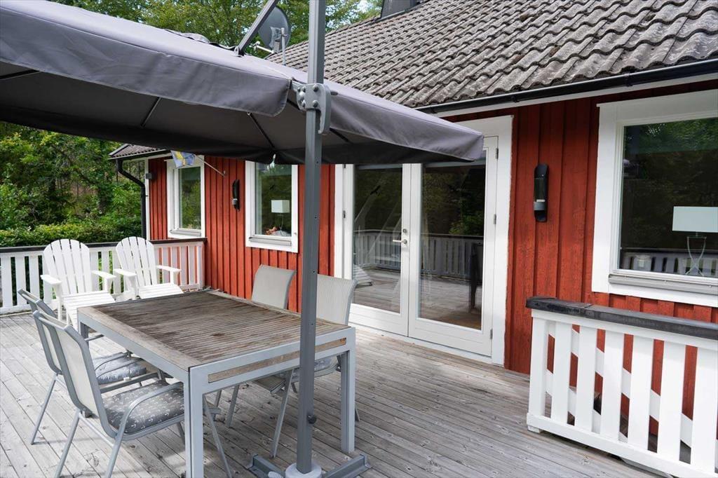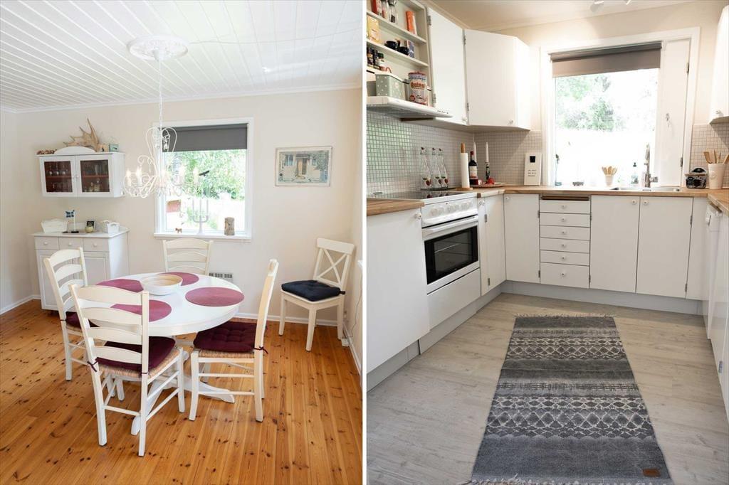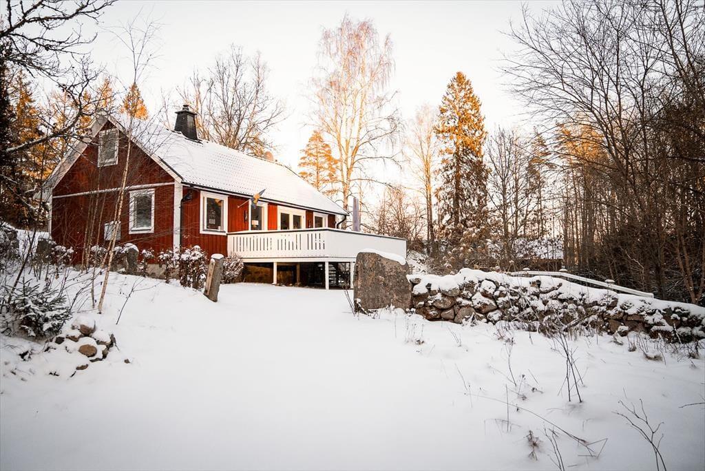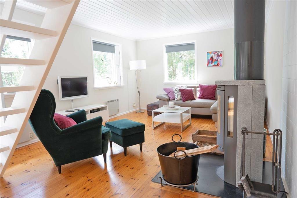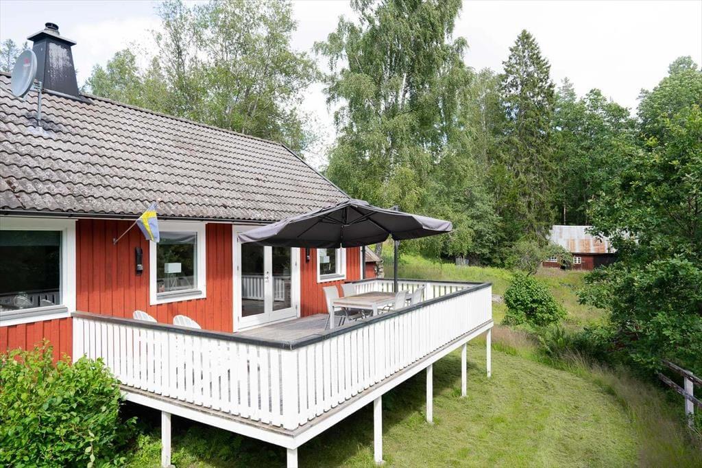 Das 1981 erbaute Ferienhaus bietet auf circa 100 m² Wohnfläche Platz für bis zu sechs Personen. Im Erdgeschoss liegt das gemütliche Wohnzimmer mit Kaminofen (Brennholz inklusive), Sitzecke, SAT-TV (mit deutschen Programmen), DVD- und CD-Player sowie einem Essbereich mit ausziehbarem Tisch für bis zu sechs Personen. Die angrenzende Küche ist modern ausgestattet mit Elektroherd, Backofen, Kühl- und Gefrierschrank, Geschirrspüler, Kaffeemaschine, Toaster, Wasserkocher und Smoothie-Mixer. Eines der Schlafzimmer mit Doppelbett befindet sich im Erdgeschoss. Die anderen beiden Schlafzimmer, die ebenfalls mit je einem Doppelbett ausgestattet sind, liegen im oberen Stockwerk. Das Badezimmer verfügt über eine Toilette, Dusche, fließend warmes Wasser (unbedenkliches Brunnenwasser) und eine Fußbodenheizung, die besonders an kühleren Tagen für Komfort sorgt. Eine Waschmaschine steht dir im kleinen Wirtschaftsraum zur Verfügung. Vor dem Haus lädt eine großzügige Veranda mit Gartenmöbeln und Grill zum Verweilen ein und auf dem Grundstück gibt es ausreichend Platz für Aktivitäten im Freien. Ein besonderes Highlight ist das Boot des Vermieters, das dir am Djupasjön zur Verfügung steht. Dieser See ist etwa 40 Minuten vom Ferienhaus entfernt und erfordert keine Angelkarte. Ein Grillplatz ist vorhanden. Bei Interesse bitte an den Vermieter wenden.