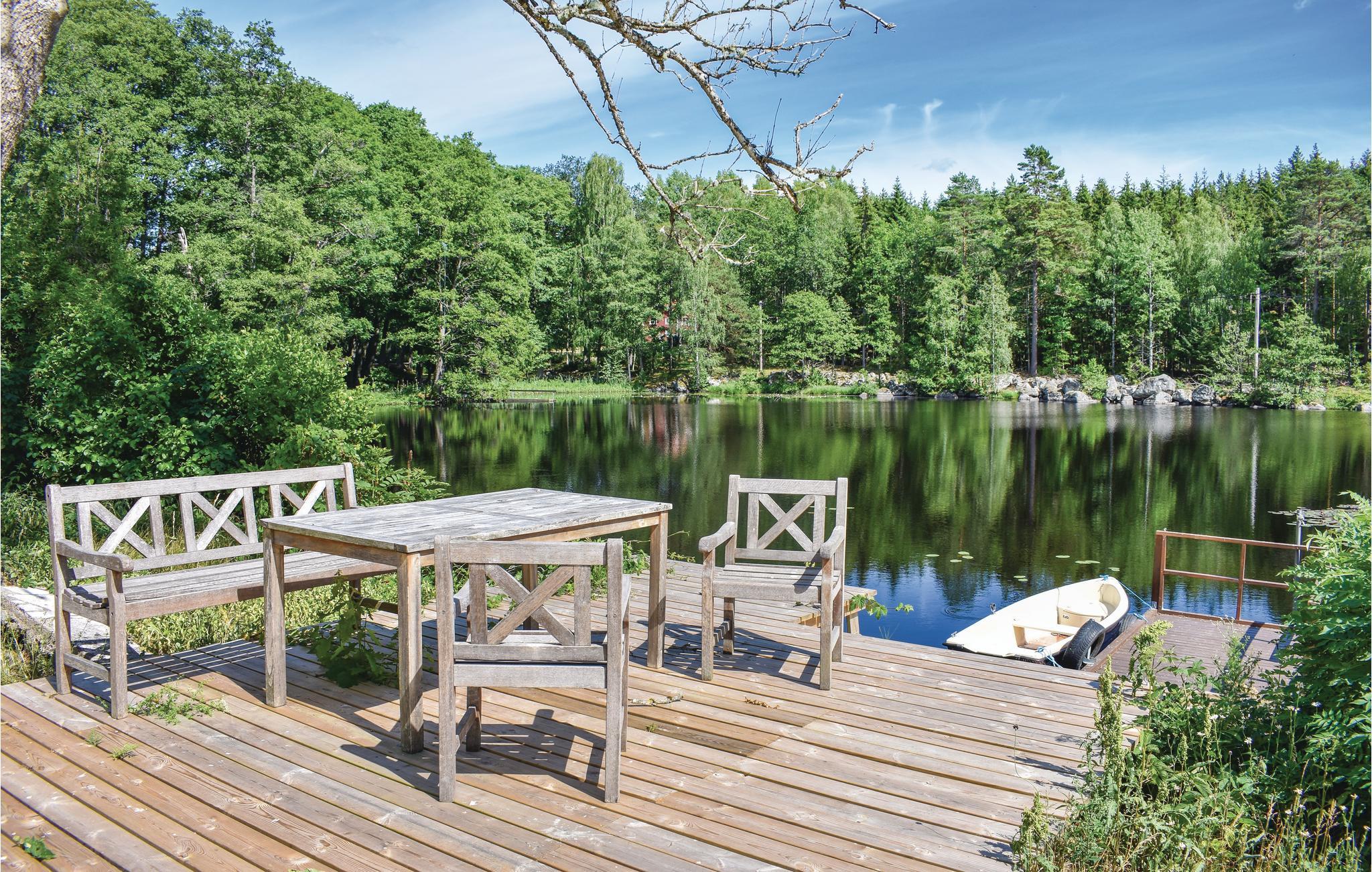 Großes, feines Ferienhaus mit Seegrundstück, Whirlpool im Freien und viel Platz zum Wasser hin. 20 m zum Schwimmen und Angeln. Ruderboot inklusive, Motor kann gemietet werden. Das Haus liegt in einer sehr schönen, seenreichen Landschaft. Mehrere Seen sind miteinander verbunden, dies lädt zu ausgedehnten Ausflügen auf dem Wasser. Im See Tiken in der Nähe können Sie angeln. Es gibt hier auch viele Rad- und Wanderwege. Durch die nahe Lage zum Stenfors Naturreservat gibt es hier viele Pilze, Wild, Elche und Wälder. Tagesausflüge: Älgriget, Astrid Lindgrens Värld, Ölands Djurpark, Kalmar, High Chaparral, Schären von Blekinge, Glasriket. Die Abende beim Haus können Sie zum Grillen nutzen.