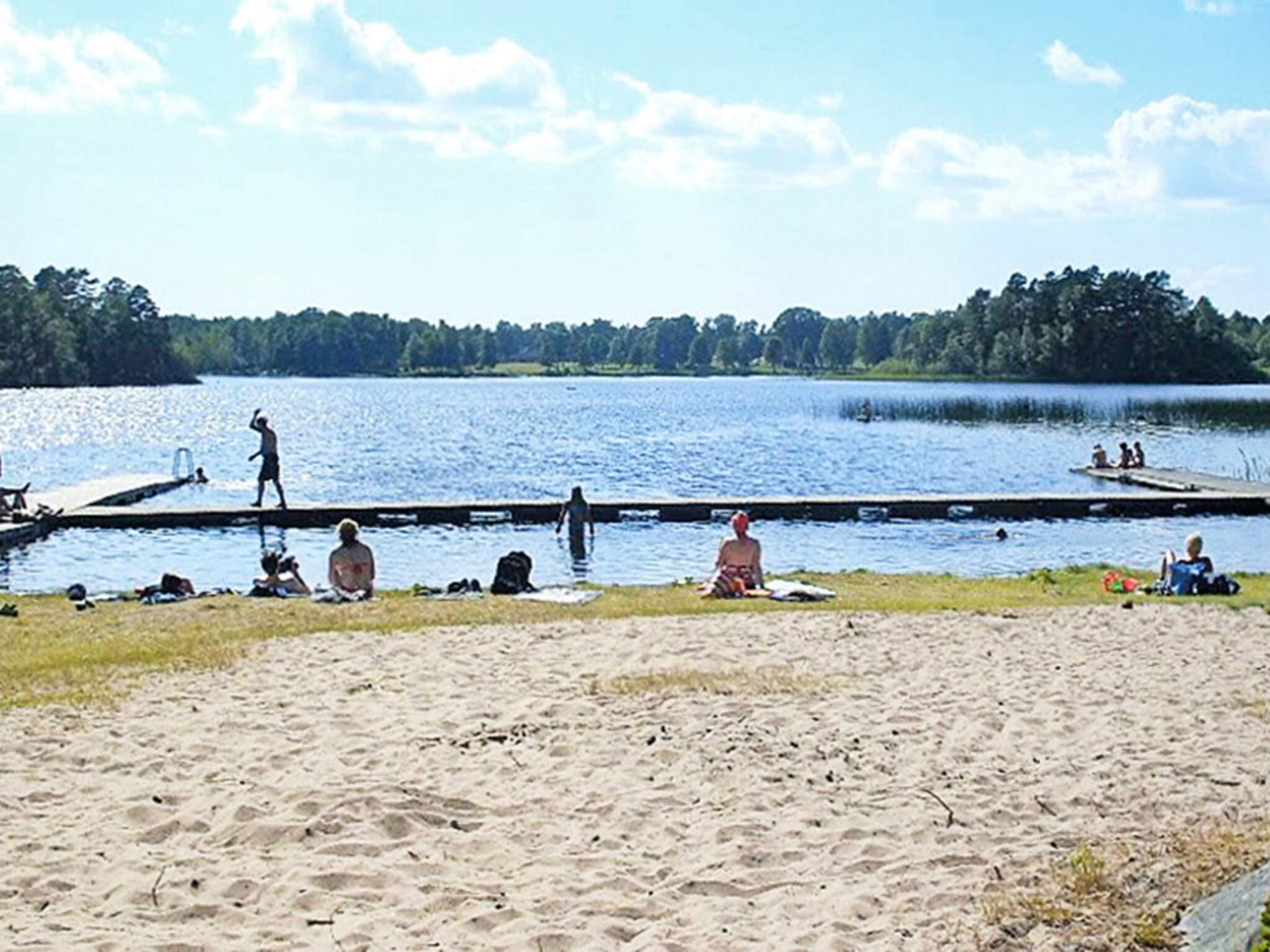 Baden kann man an mehreren Stellen ringum das Häuschen, u.a. von einem Steg aus, der etwa fünf Kilometer vom Haus entfernt ist. Ein attraktives Badeufer mit Strand, Kiosk usw. findet man bei Mårdslycke in Tingsryd oder am Nabbens Camping außerhalb von Linneryd.