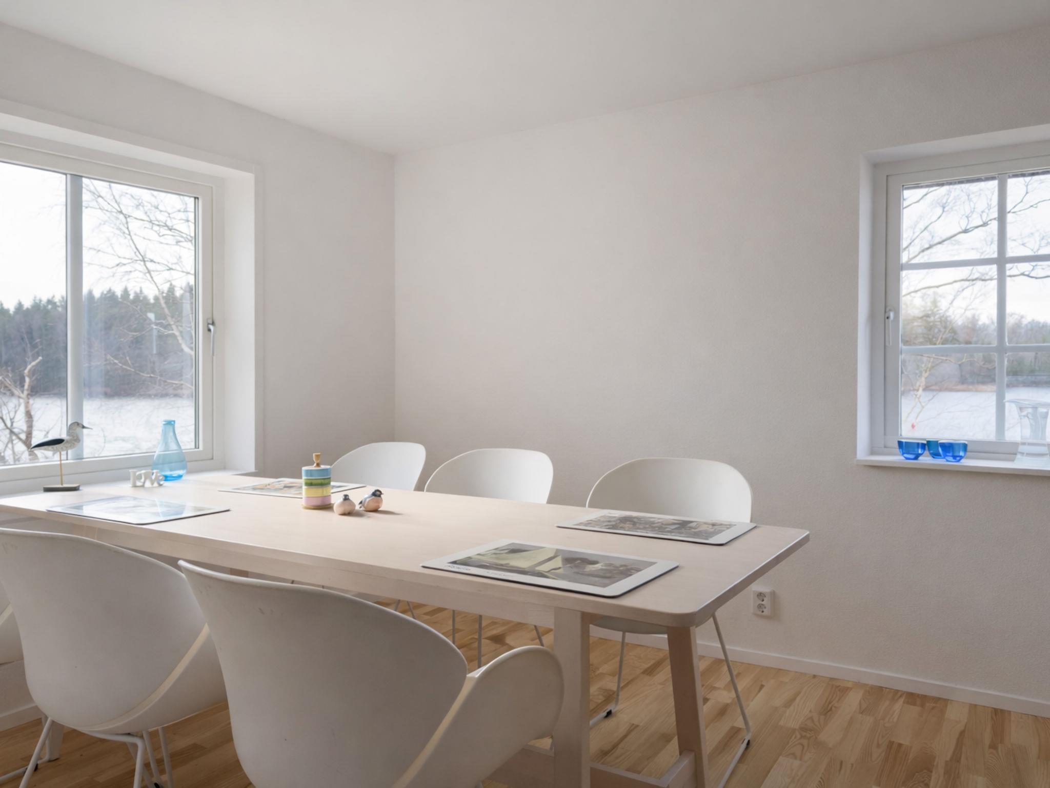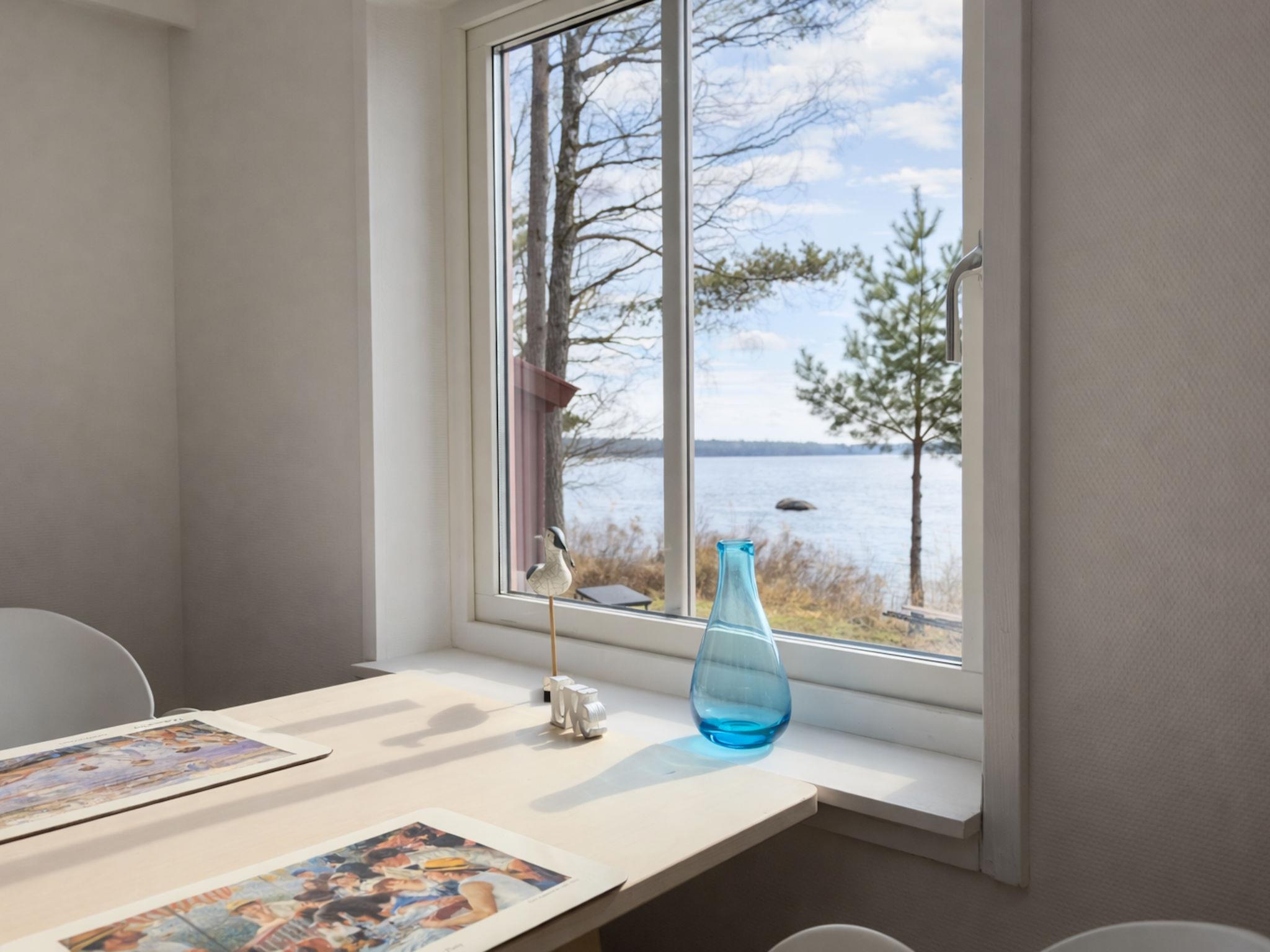 "Rönnö", 5-Zimmer-Haus 100 m2. Schön eingerichtet: Wohn-/Esszimmer mit Schwedenofen und TV. 1 Zimmer mit 1 Doppelbett (180 cm, Länge 200 cm). Küche (Gasherd, Toaster, Wasserkocher, Mikrowelle, Tiefkühler, elektrische Kaffeemaschine). Dusche/WC, Trockentoilette. Heizung. Obergeschoss: 1 Zimmer mit 1 Bett (90 cm). 1 Zimmer mit 1 Bett (90 cm). 1 Zimmer mit 1 Doppelbett (180 cm, Länge 200 cm). Holzdielenboden. Gartengrill (mobil). Sehr schöne Panoramasicht auf das Meer. Bitte beachten: ein Doppelzimmer liegt außerhalb der Wohnung. Nichtraucher-Haus. Rauchmelder.
