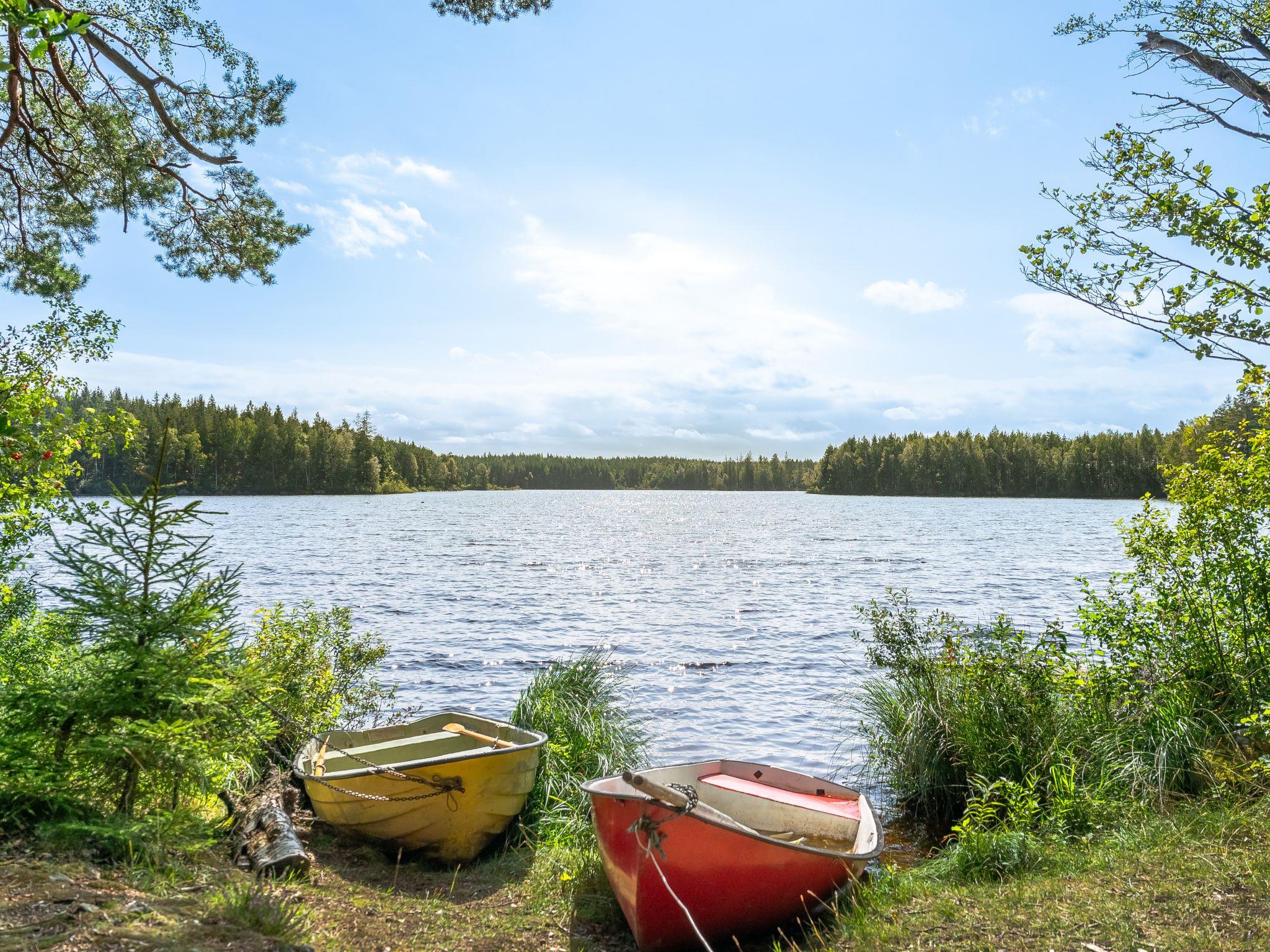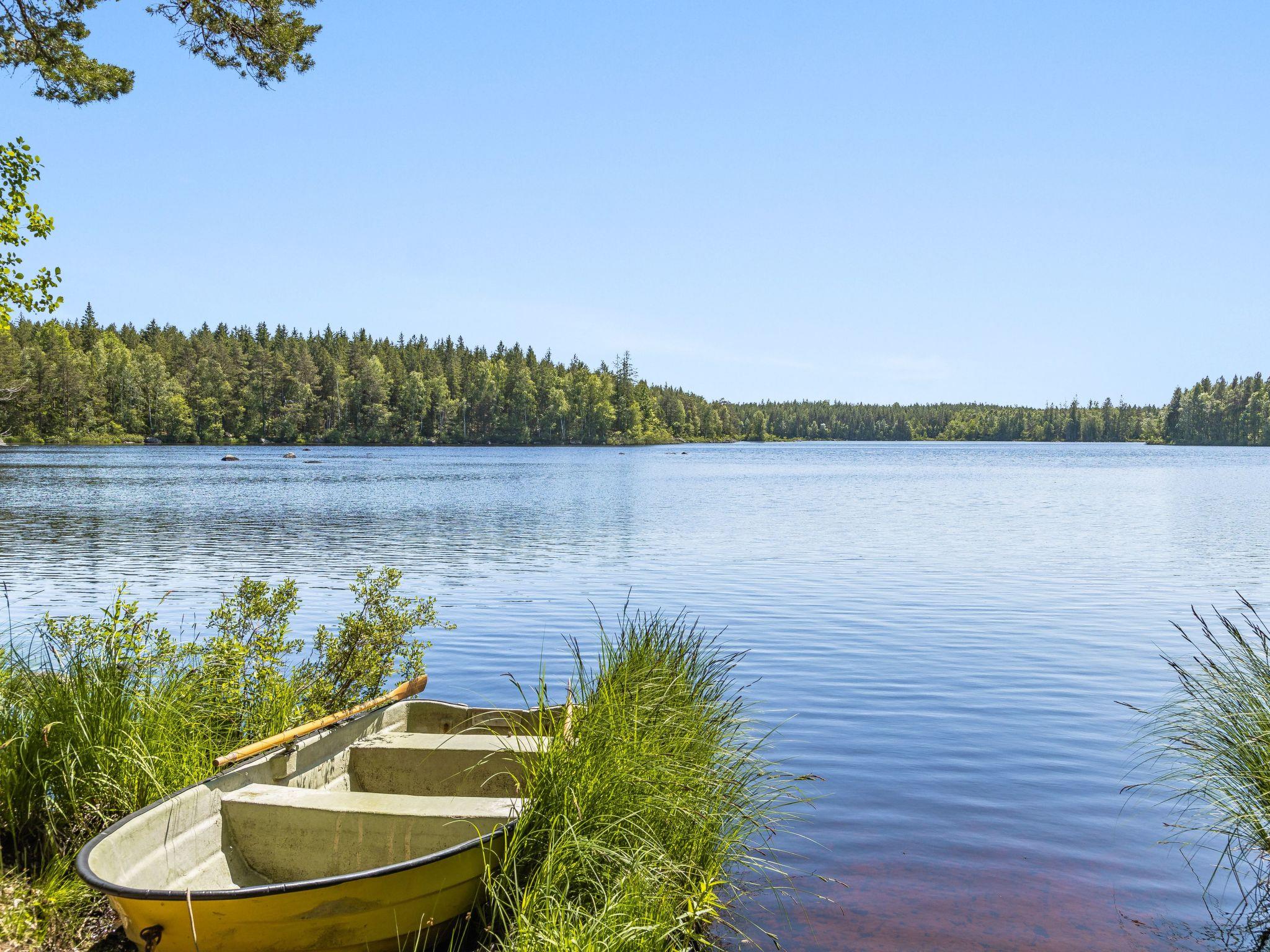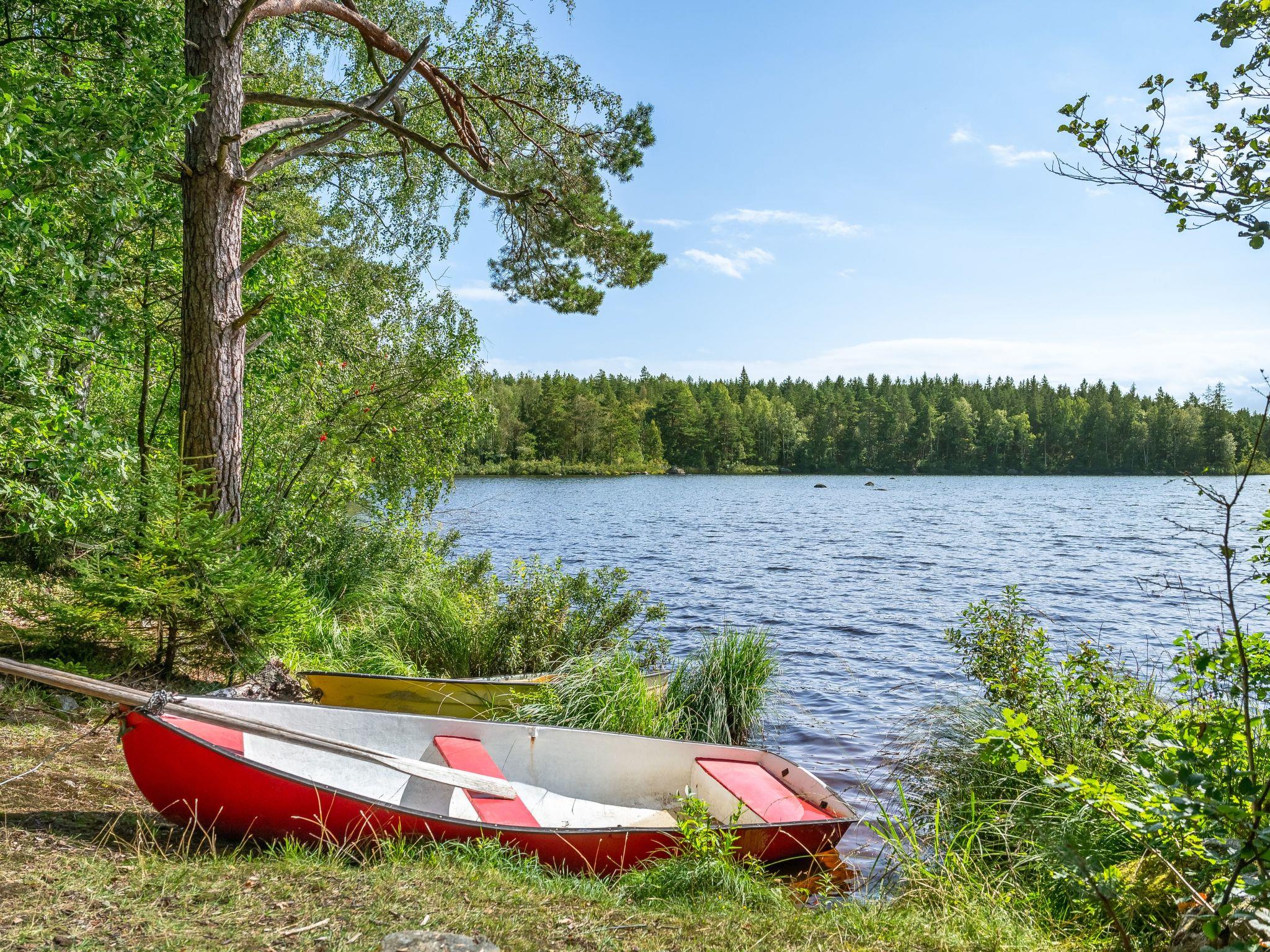 Kleines Haus "Stenfors". 6 km vom Zentrum von Tingsryd, 50 km vom Zentrum von Växjö, 500 m vom See, im Grünen. Zur Alleinbenutzung: naturbelassenes Grundstück 1'000 m2, Garten (nicht eingezäunt) mit Bäumen. Terrasse, Gartenmöbel, Grill. Ruderboot. 3 km lange Zufahrt bis zum Grundstück (Naturweg). Parkplatz auf dem Grundstück. Supermarkt 6 km, Bushaltestelle 3.1 km, Bahnstation "Växjö" 50 km, Fähre "Helsingborg" 185 km, Sandstrand "Tingsryd" 7 km, Hallenbad 6 km. Angelmöglichkeit 1 km. Ein Ruderboot steht zur Verfügung und liegt etwa 1 km vom Haus entfernt am Seeufer (1,6 km per Pkw).
