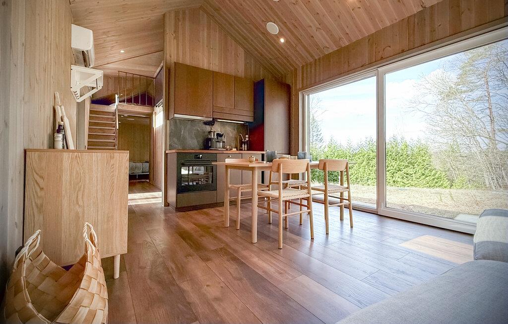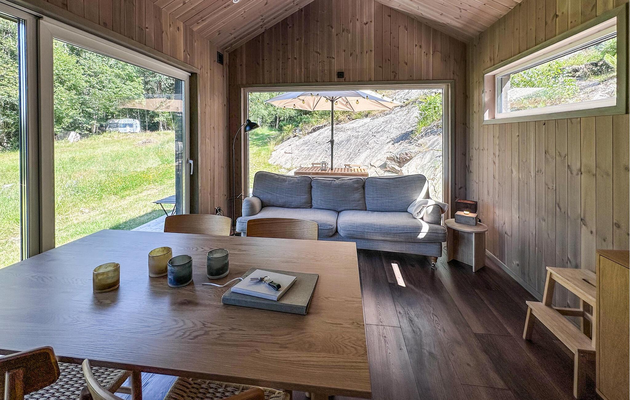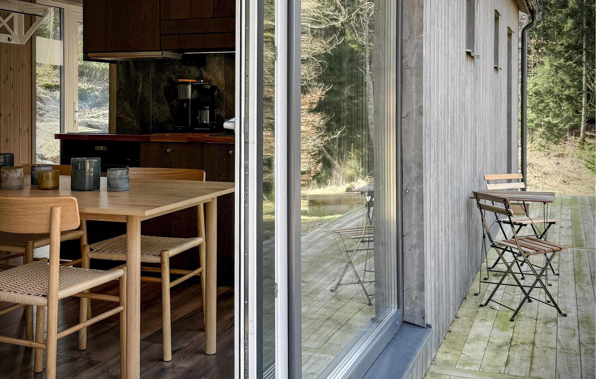 Ihr modernes Ferienhaus nahe dem See Sävelången bietet ideale Voraussetzungen für eine entspannte Auszeit inmitten der schwedischen Natur. Genießen Sie die ruhige Lage am Waldrand, fernab vom Alltag. Hier finden Sie den idealen Ort für ein paar entschleunigte Tage zu zweit oder mit der Familie. Treten Sie ein in den offenen Wohnbereich mit gemütlichem Sofa, Holzwänden und bodentiefer Fensterfront, die den Blick in die grüne Umgebung freigibt. Kochen Sie gemeinsam in der funktional ausgestatteten Küche und genießen Sie Ihre Mahlzeiten am Esstisch mit Tageslichtpanorama oder machen Sie es sich mit einem Buch auf dem Sofa bequem.