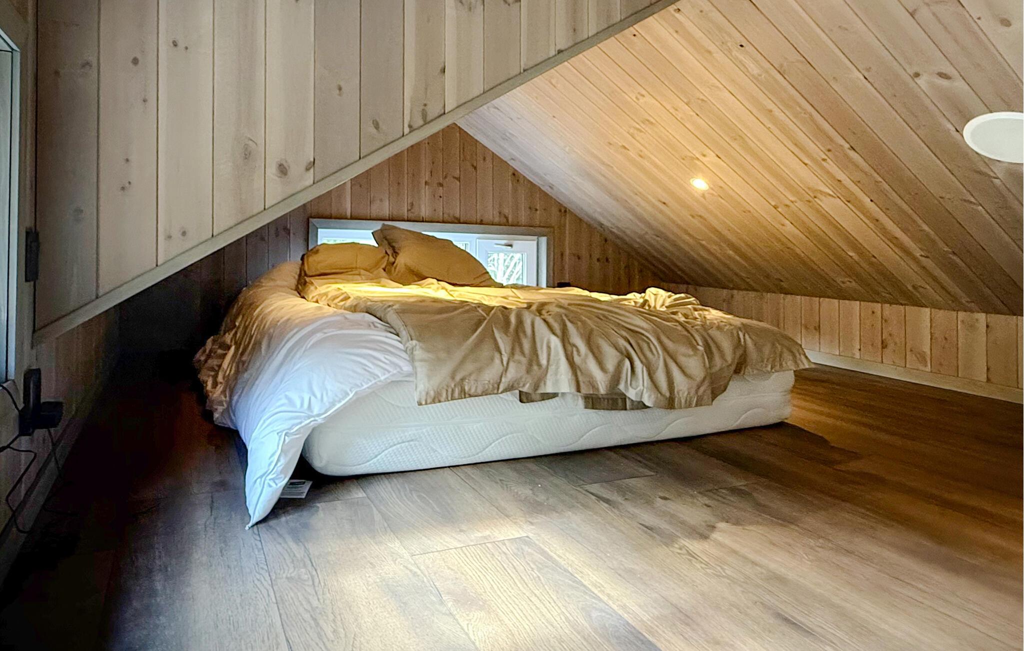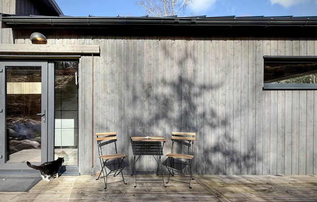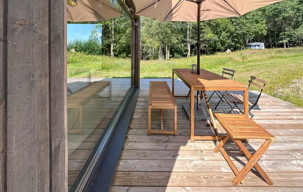 Gehen Sie hinaus auf die Holzterrasse. Hier können Sie frühstücken, grillen oder einfach die frische Luft genießen. Machen Sie ein Lagerfeuer an der Feuerstelle und lassen Sie den Abend bei knisterndem Holz ausklingen. Für Kinder gibt es außerdem ein Trampolin im Außenbereich.