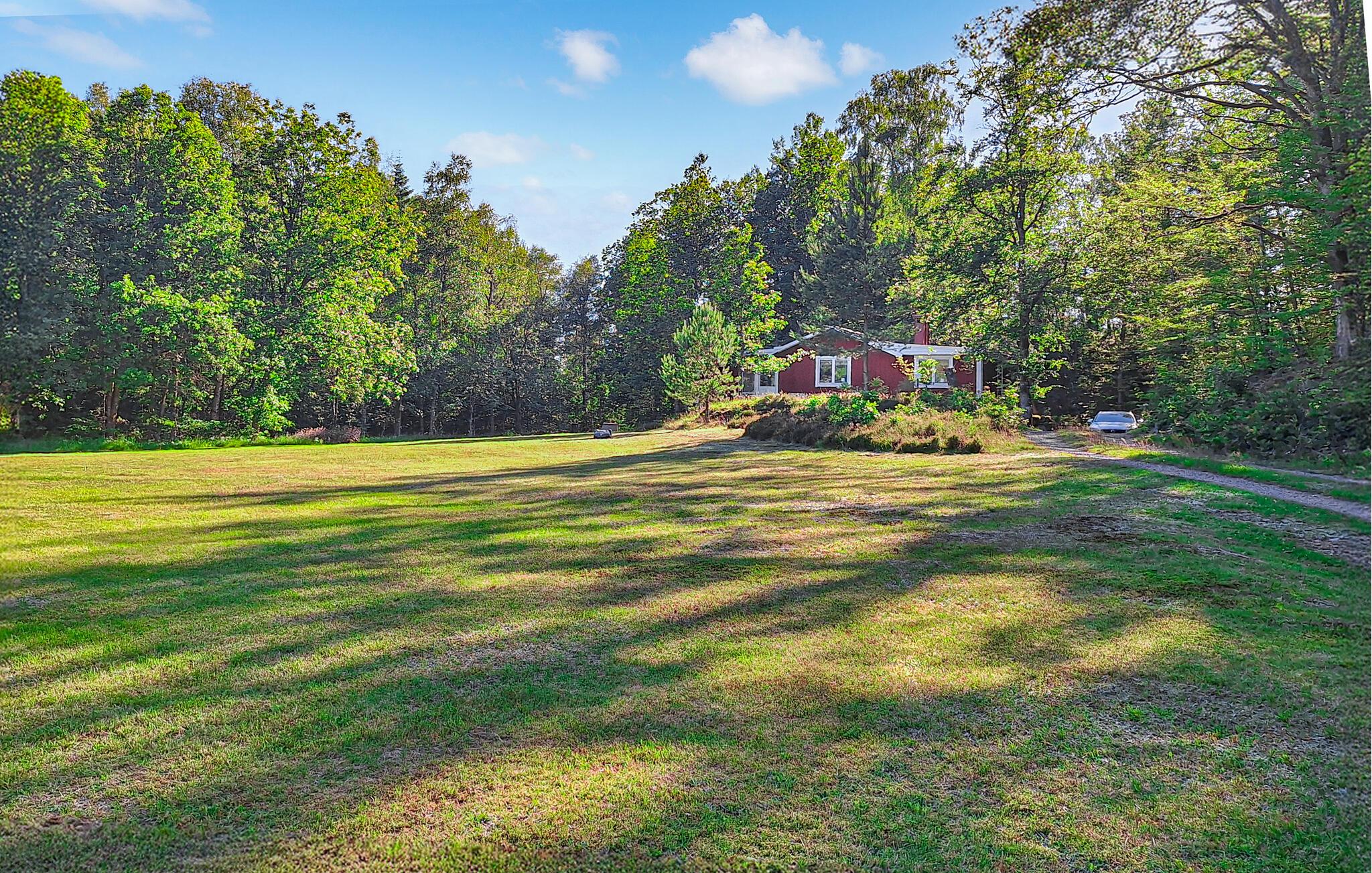 Gut ausgestattetes und schönes Ferienhaus mit Wintergarten, von dem eine Glastür auf die Terrasse führt. Sie wohnen in der Nähe von Torpa in Småland. Badezimmer mit Fliesen, Zentralstaubsauger. Ungestörte und schöne Lage mit See in der Nähe, den See können Sie hinter den Bäumen sehen. Der See Mäen ist gut zum Angeln, langen Spaziergängen am Ufer und Radfahren in seiner Umgebung geeignet. In der Nähe finden Sie auch mehrere Naturreservate. Großer Rasen zum Spielen. Einkaufen in Ljungby oder Halmstad.