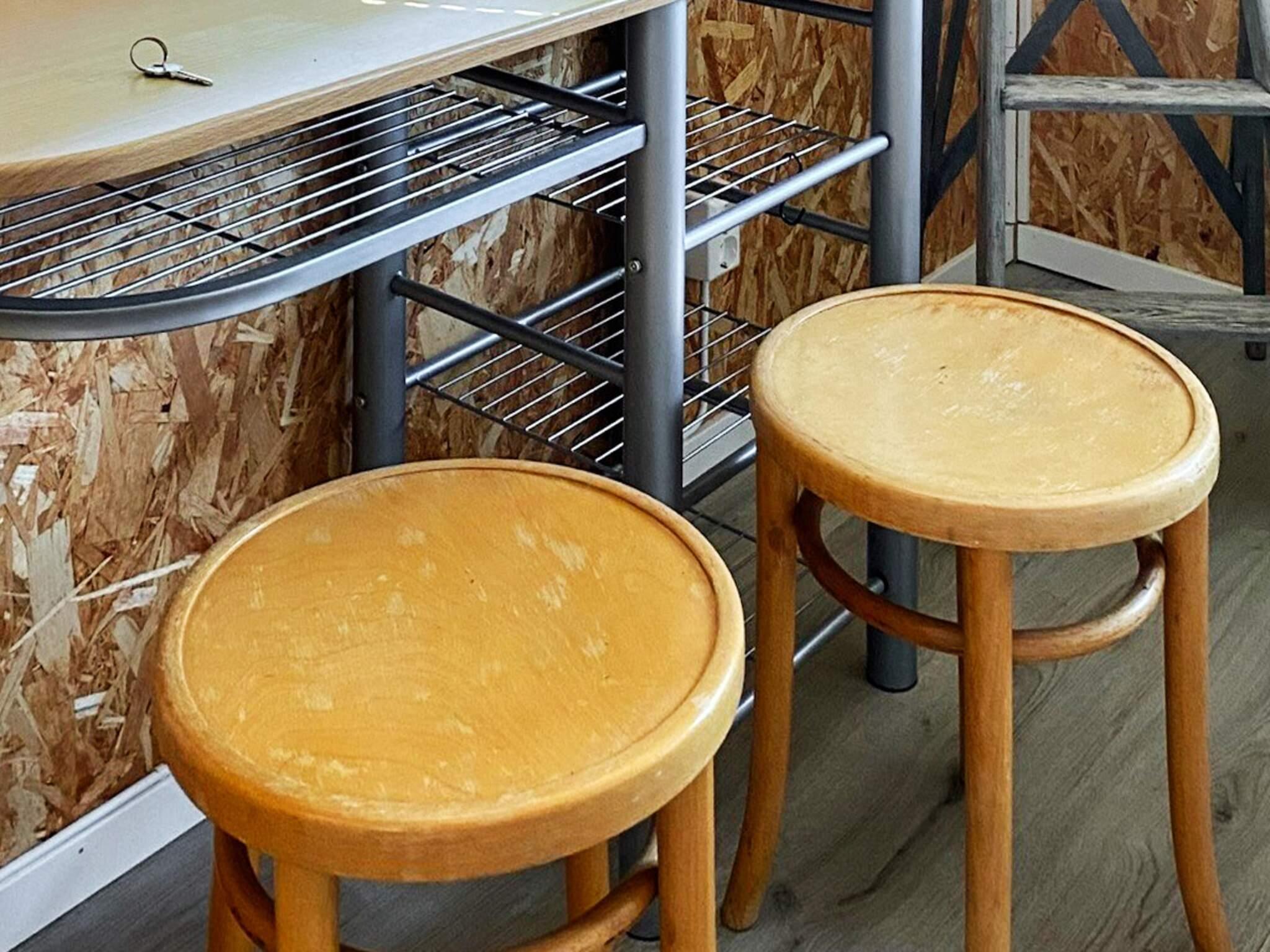 Offener Küchen-/Wohnbereich für das Familienleben im Haus mit Küchenzeile, Essecke sowie einem fest eingebautem Etagenbett mit zwei Kojen. Im Wohnbereich stehen ein Doppelbett und eine Sitzgruppe bereit. Das helle Badezimmer ist mit Dusche, Toilette und Waschbecken ausgestattet.