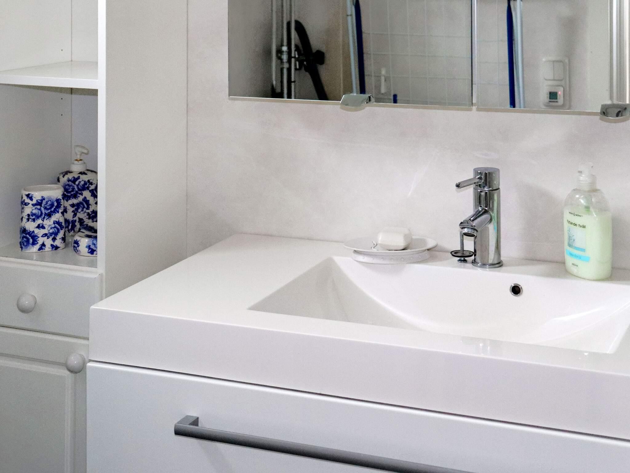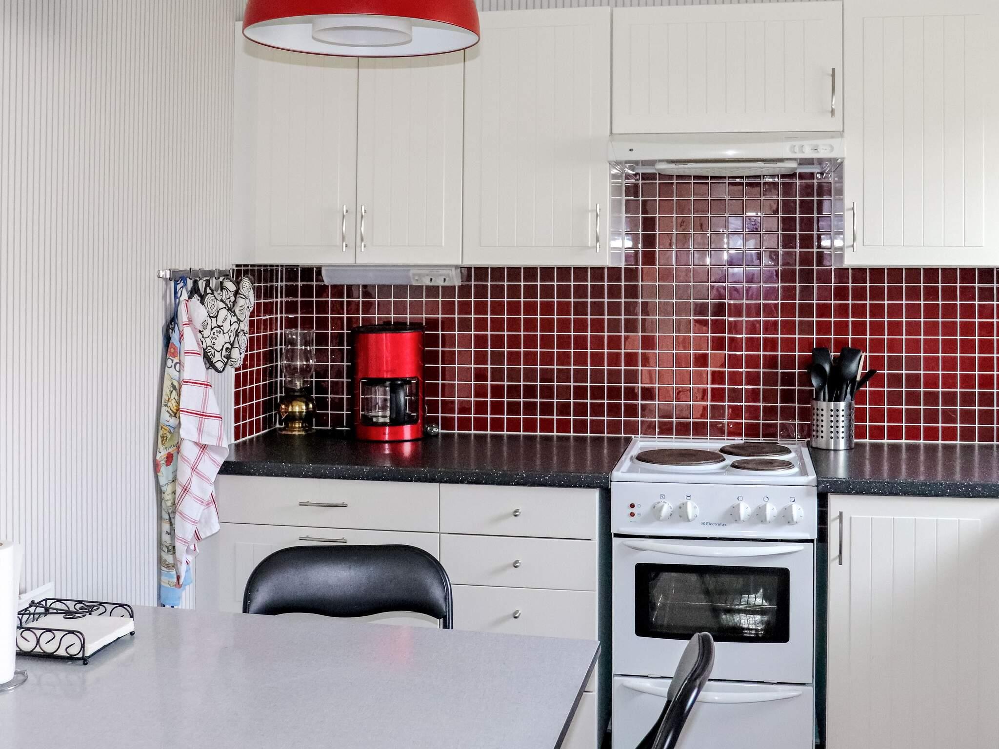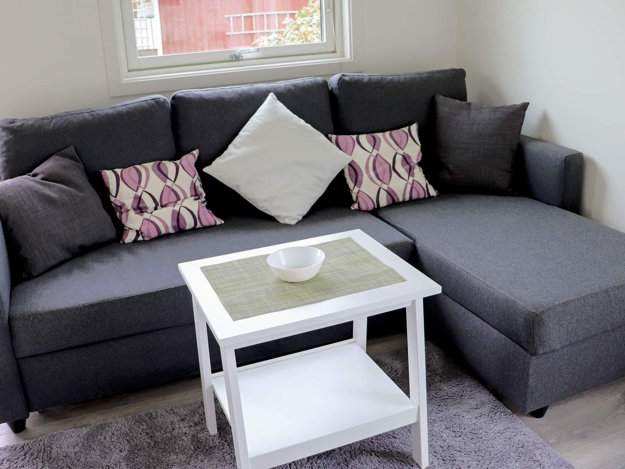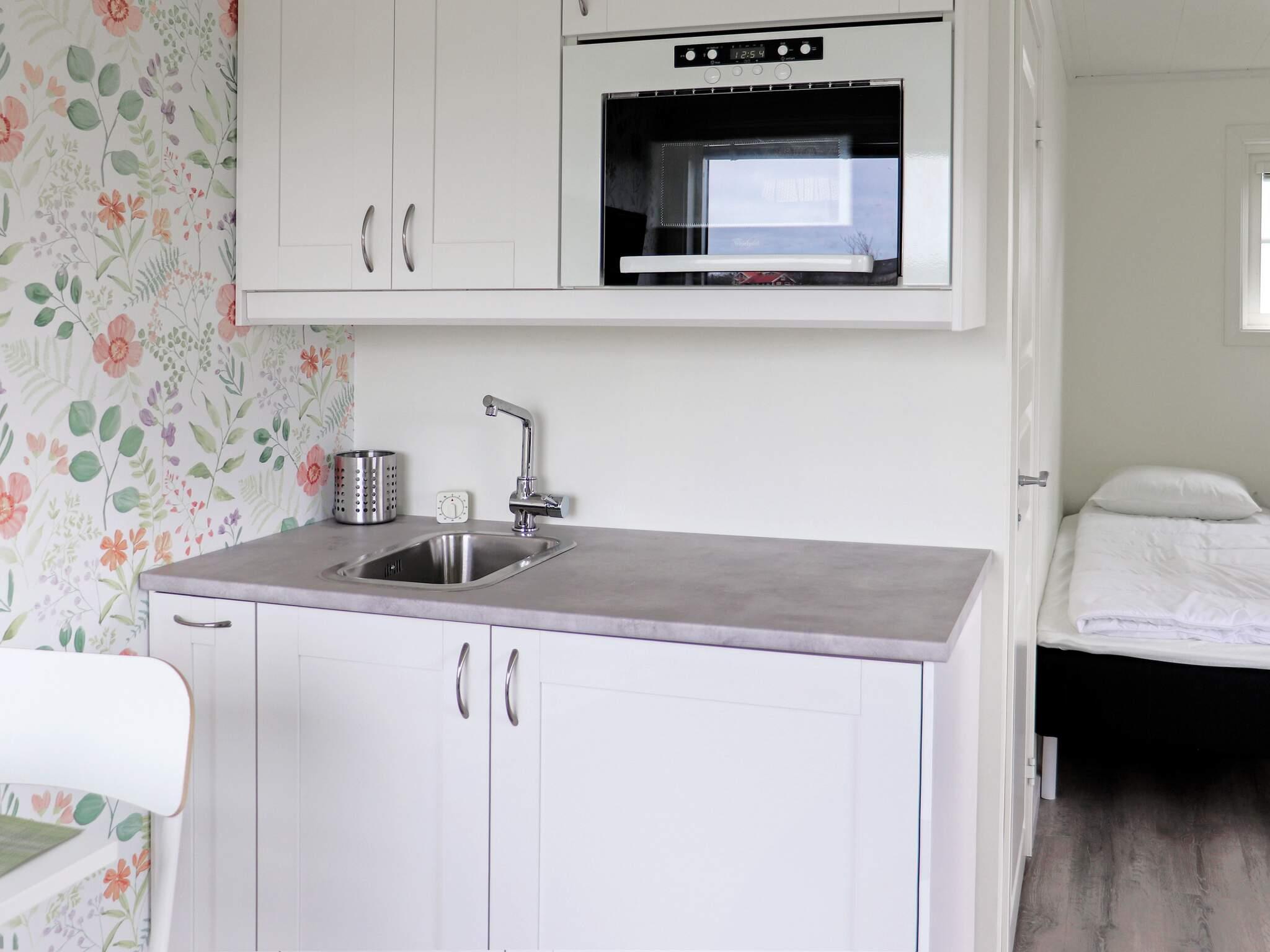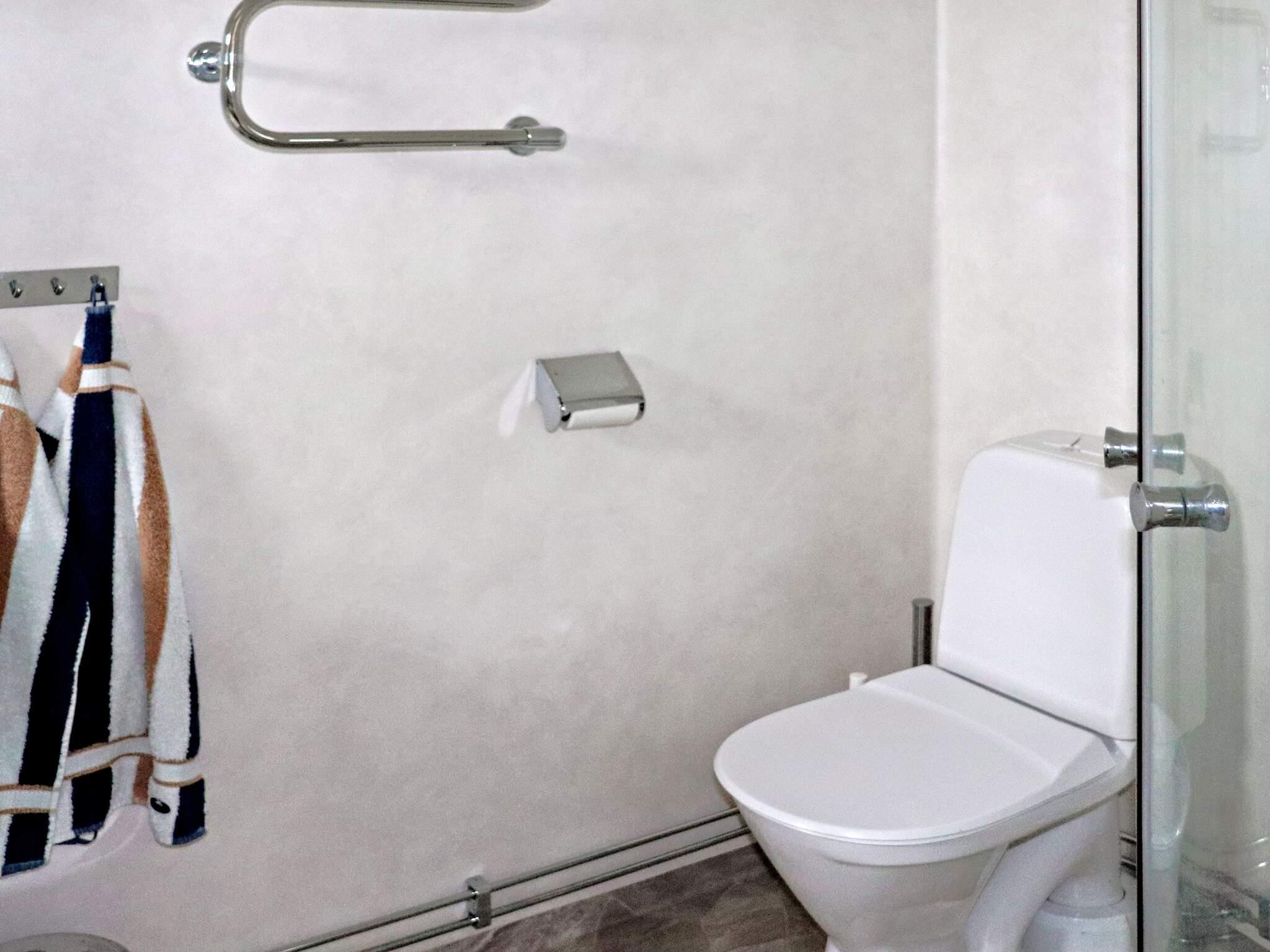 Im Haupthaus betreten Sie zunächst den Eingangbereich, rechts davon liegt die gut ausgestattete Küche mit kleinerem Essbereich, links das Badezimmer mit Dusche und Waschmaschine sowie angenehmer Fußbodenheizung. Das geräumige Wohnzimmer ist mit bequemem Mobiliar und eingebautem Kaminofen für kühlere Abende ausgestattet. Im Haus liegen einige Gesellschaftsspiele für gesellige Abende bereit. Nur schwedische TV-Sender zur Auswahl. WLAN (von April bis September), nur im Haupthaus.