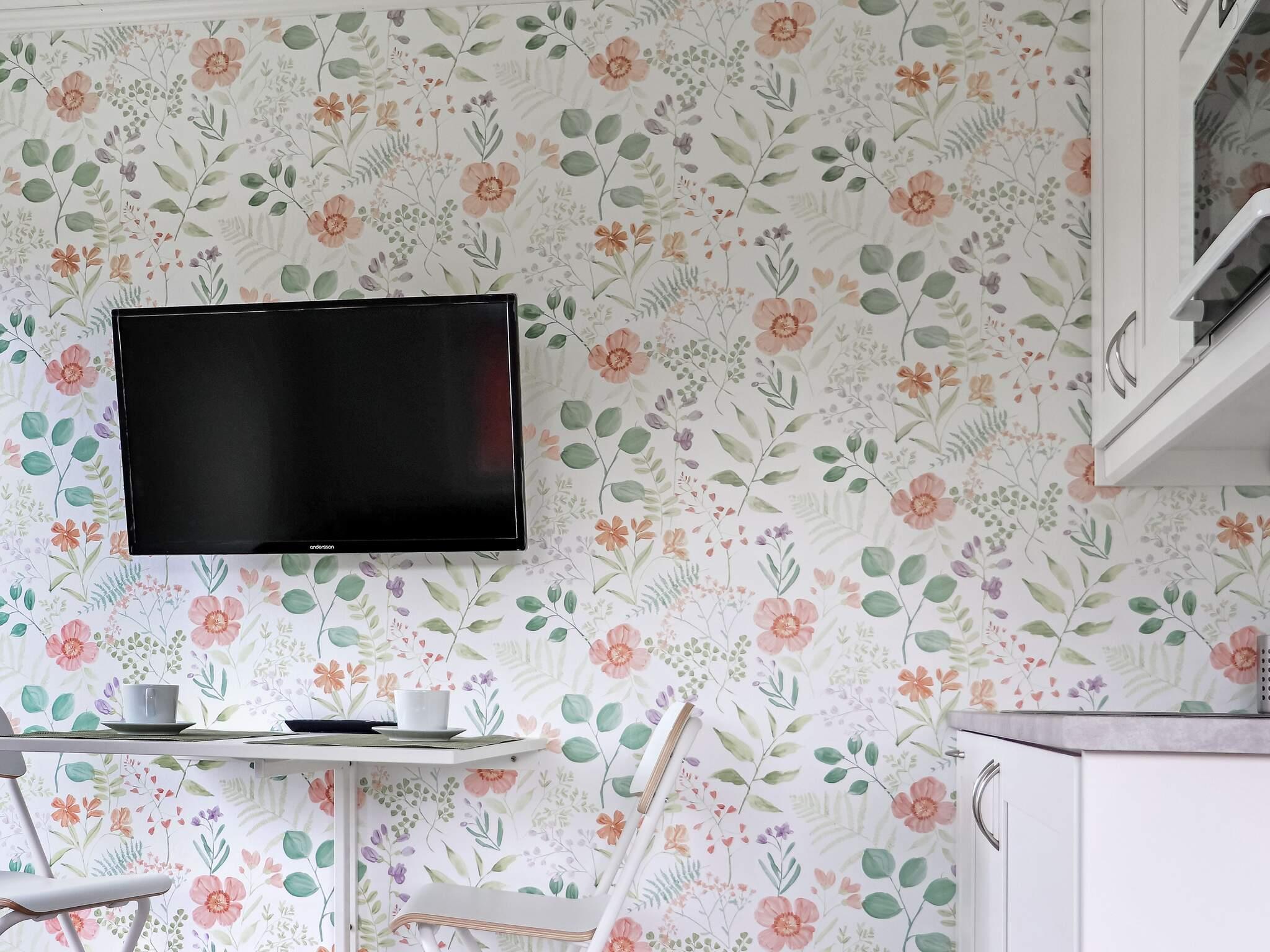 Es gibt zwei Schlafzimmer im Haus: eines mit zwei Einzelbetten und eines mit zwei Etagenbetten. Vom Wohnzimmer aus haben Sie durch die Paartüren Zugang zu einer verglasten Veranda mit geräumigem Esstisch, ein perfekter Ort für spätere Abendstunden oder windigere Tage. Draußen steht außerdem eine geräumige Holzterrasse mit mehreren Gartenmöbeln und Grill bereit, mit einer Fläche zur Morgen- und einer zweiten zur Abendsonne hin ausgerichtet.