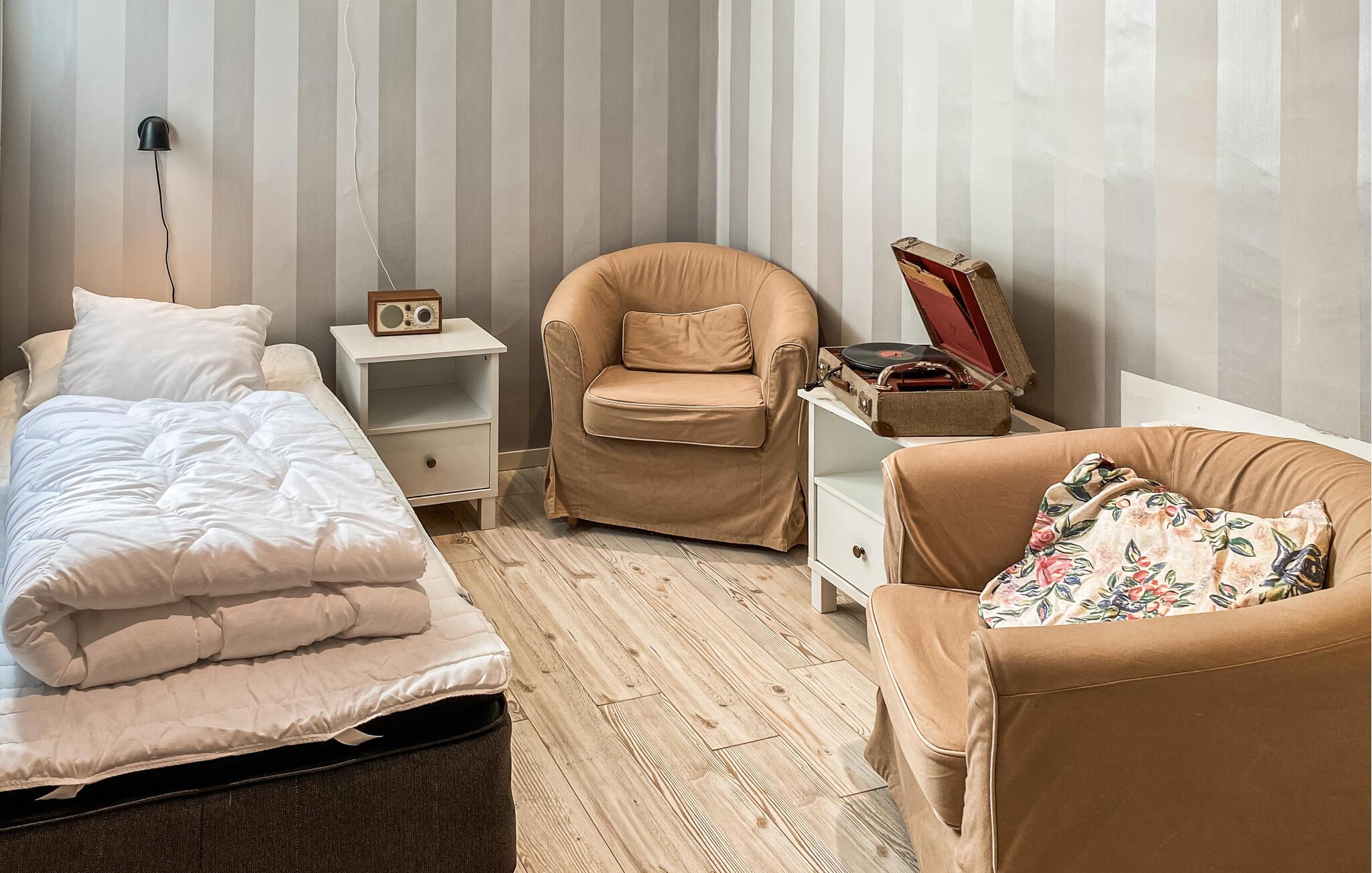 Stellen Sie sich vor, Sie betreten dieses Urlaubsdomizil in der Nähe von Tranås: ein charmantes Ferienhaus, das durch seine klassische Einrichtung und vielfältige Gestaltung besticht. Hier, umgeben von liebevollen Details, fühlt sich jeder Raum wie ein gemütlicher Rückzugsort an. Die helle Wohnfläche lädt Sie dazu ein, gemeinsam Zeit zu verbringen und besondere Erinnerungen zu schaffen.