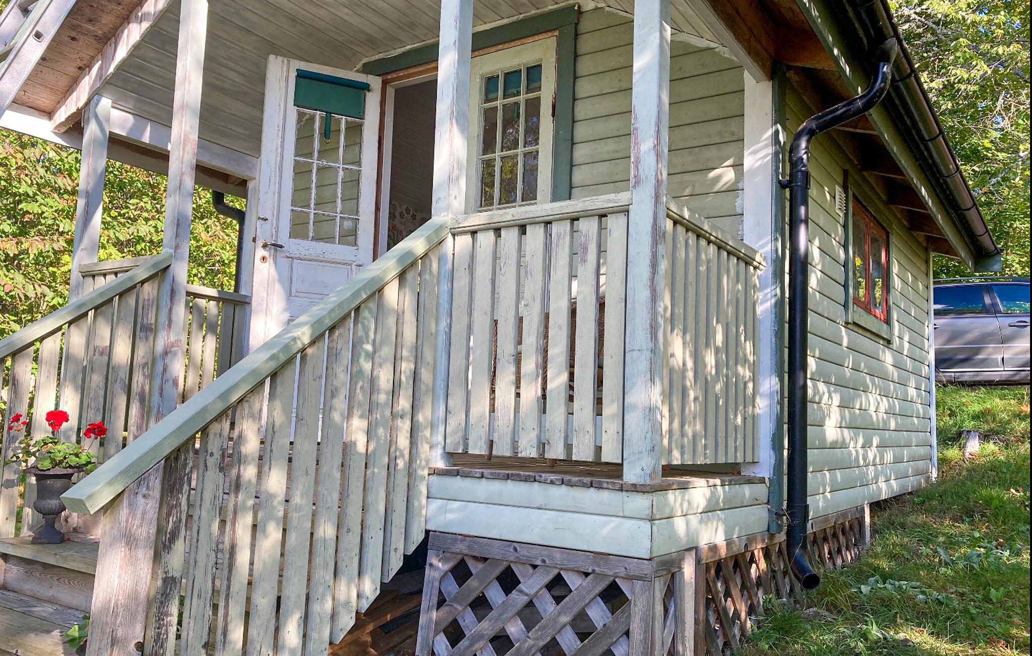 Am Ufer des Säbysjön heißt Sie dieses hübsche und praktische Ferienhaus mit Veranda willkommen.