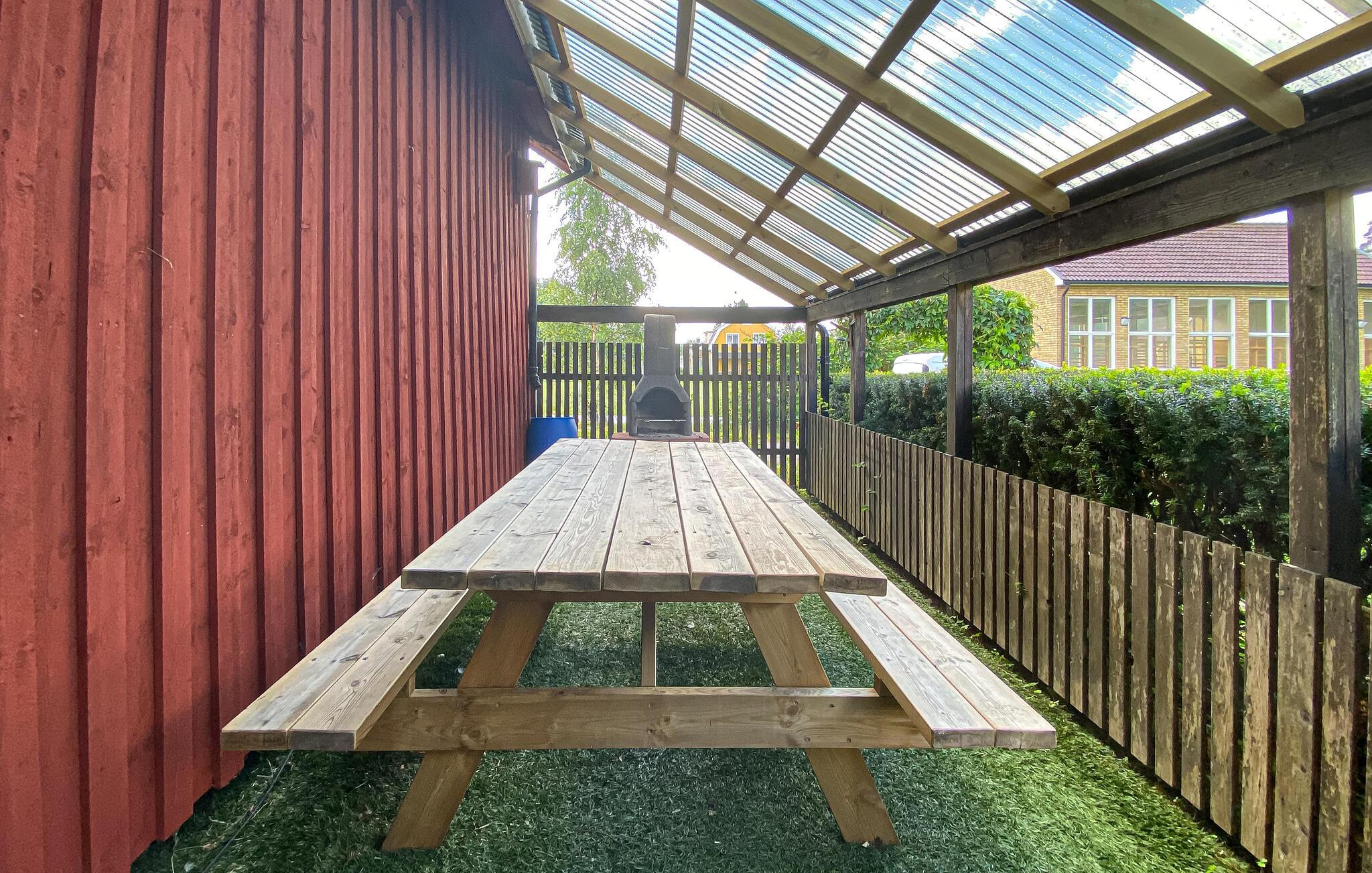Treten Sie schon morgens mit einer Tasse Kaffee in den großen, grünen Garten und genießen Sie die Ruhe der Natur. Unter der überdachten Terrasse finden Sie ein geschütztes Plätzchen, um ausgiebig zu frühstücken und die Aktivitäten für den nächsten Tag zu planen. Versammeln Sie abends Ihre Familie oder Freunde am Grill und lassen Sie den Tag entspannt bei einem Glas Wein ausklingen.