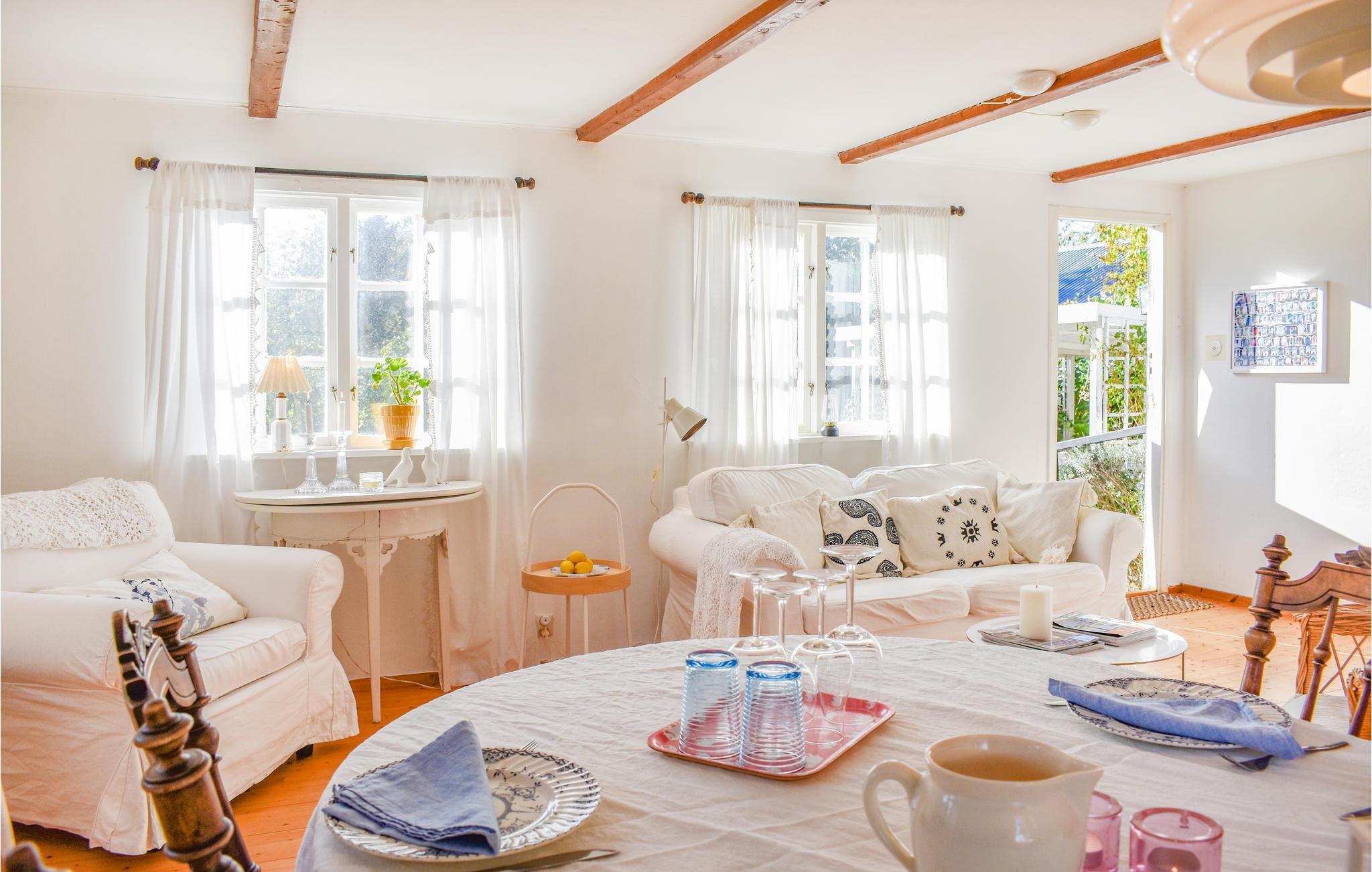 Etwas außerhalb von Trelleborg finden Sie dieses liebevoll eingerichtete Ferienhaus, das zu Ihrem persönlichen Entspannungsort wird. Das Haus mit einfacherem Komfort zeichnet sich durch sommerliche Frische und ein Interieur im romantischen Stil aus, die gemeinsam lange Abende und gemütliche Momente vor dem Kamin ausstrahlen. Die klassische Idylle des Hauses wird durch den Garten abgerundet. Genießen Sie die Mahlzeiten des Tages auf der überdachten Terrasse und Erfrischungen am Cafétisch. Der Garten eignet sich perfekt zum Spielen für die jüngeren Familienmitglieder. Den schönen Sandstrand finden Sie gerade in der Nähe sowie auch den Südküstenwanderweg, der entlang der Grundstücksgrenze verläuft.