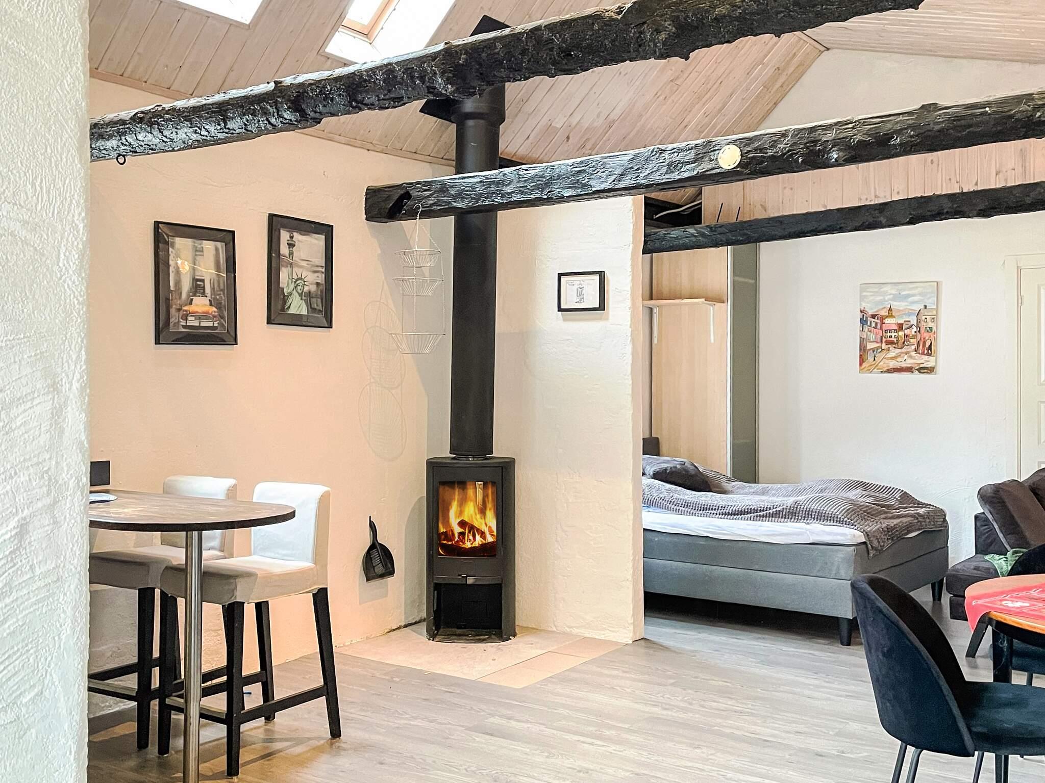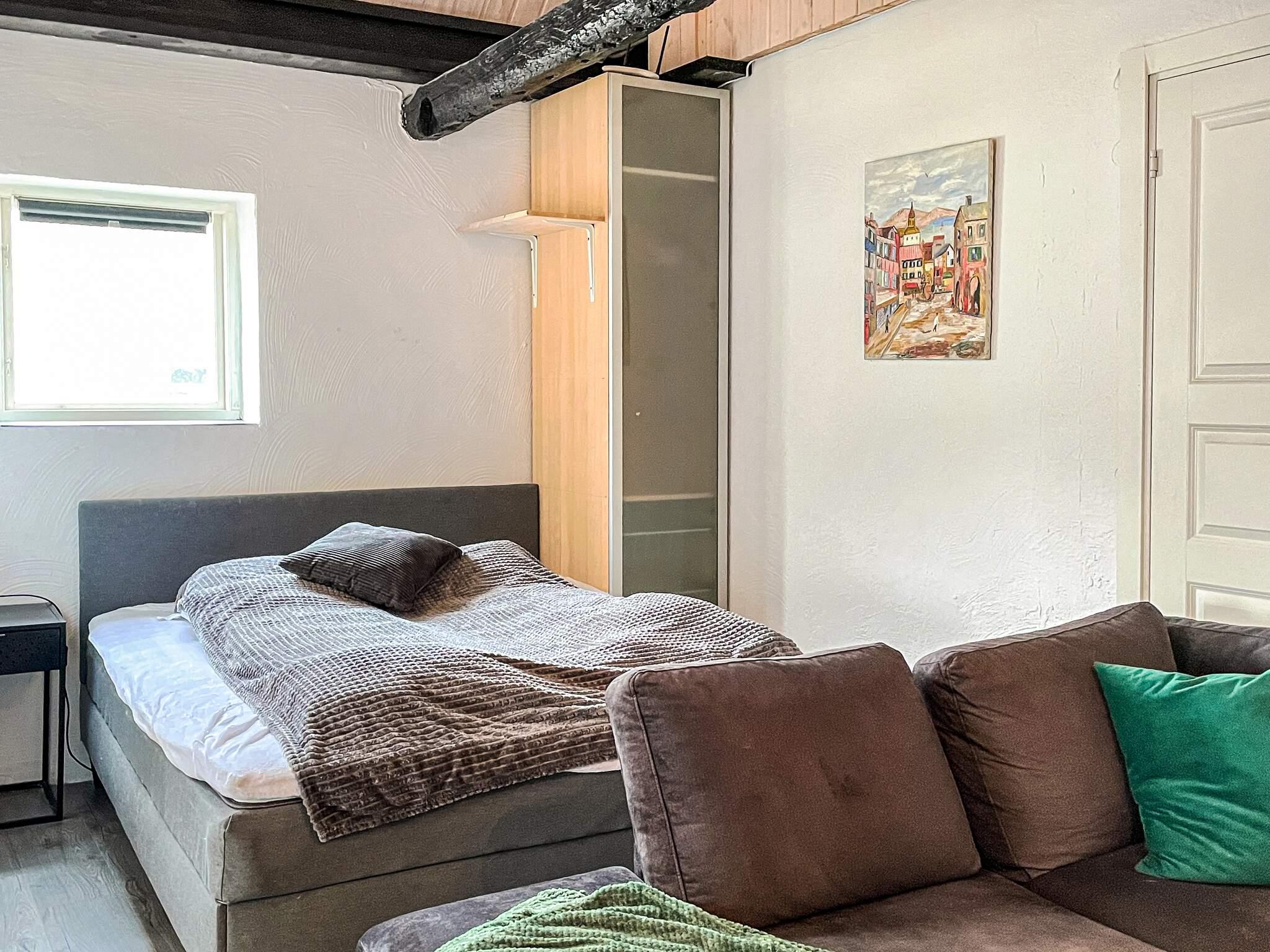 Enjoy the peace and the unobstructed view over the fields in this charming guesthouse. Here you live comfortably in an open plan with a large living room where the kitchen, dining area and sleeping area merge together. The house has a comfortable double bed and a spacious sofa bed for two, perfect for both couples and families. The fresh and spacious bathroom gives an extra feeling of comfort. Outside the door, a cozy terrace with seating and barbecue awaits - a perfect place for long summer evenings and relaxing moments in nature.