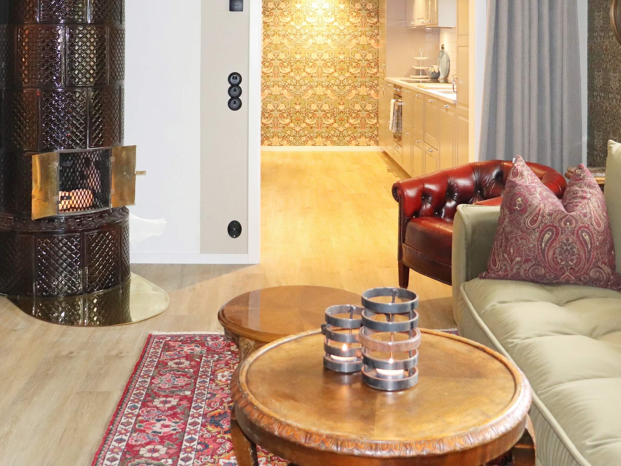 Das Ferienhaus verfügt über eine große, offene und gut ausgestattete Küche mit Essbereich. Der schöne, gusseiserne Ofen dient nur als Dekoration. Es gibt zwei Schlafzimmer, beide mit einem Doppelbett (eines davon 140 cm breit). Das Wohnzimmer verfügt über ein großzügiges Schlafsofa, außerdem gibt es ein großes, modernes Smart-TV. Ein schöner Kachelofen mit brennenden Kerzen sorgt für eine schöne Atmosphäre (Feuerverbot). Das Badezimmer ist geräumig und verfügt über eine Dusche und einen kombinierten Waschtrockner. Am Eingang befindet sich eine Gästetoilette. Freies WLAN über Breitband und Bluetooth-Lautsprecher im Haus. Die gesamte Inneneinrichtung wurde sorgfältig ausgewählt, um die einzigartige Atmosphäre des Bauernhofs zu bewahren, jedoch mit absolut moderner Qualität.