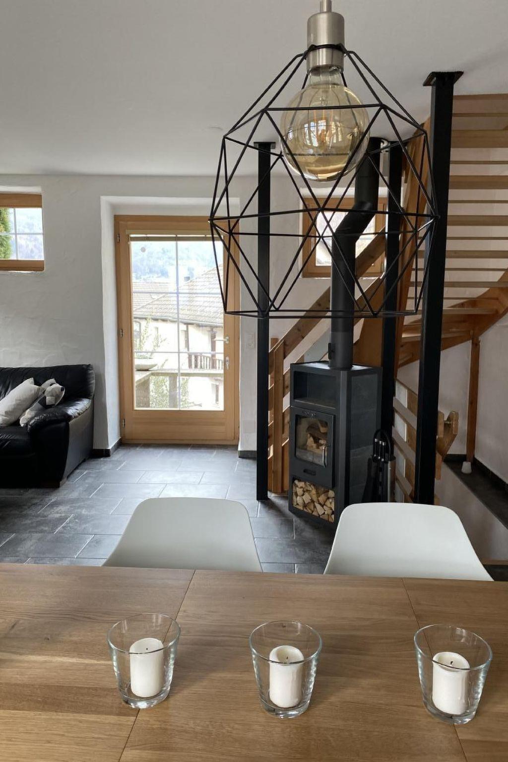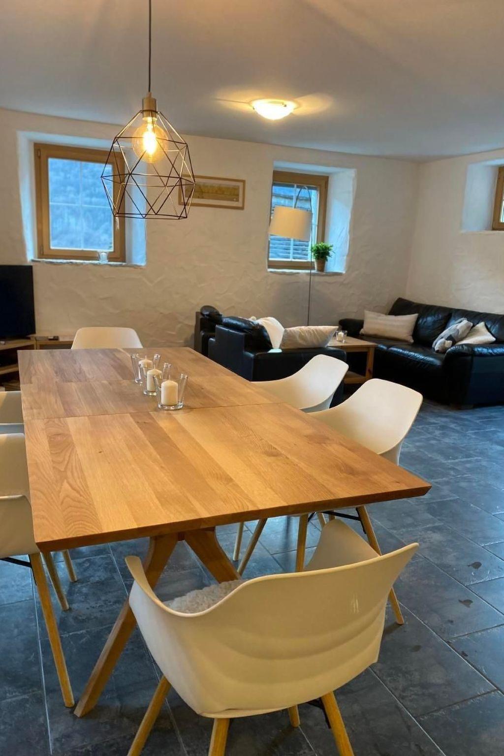 Sonstige Wohnzimmerausstattung (Wohnzimmer1): Fernseher (Swisscomtv mit 30 Stunden Replay) , Polstergruppe , Salontisch ,Esstisch u. Stühle. Treppe nach oben und nach unten abschließbar mit Kindergitter.