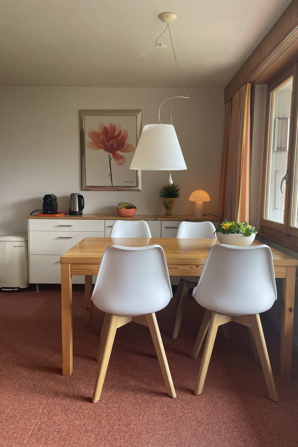 60 m2. Weitere Angaben des Anbieters: Modern eingerichtete 3-Zimmer-Wohnung im Erdgeschoss (60m2) eines Chalets. Schöne sonnige Lage mit Blick auf das Dorf Adelboden. Die Liegenschaft verfügt über 2 Schlafzimmer, Wohnzimmer, Bad, Küche, Garage, Skiabstellraum, Aussenterrasse und grossen Parkplatz auf privater Zufahrt. Badezimmer mit Dusche in der Badewanne und Toilette. Der Internetzugang erfolgt über Wifi, das an einen 5-G-Router angeschlossen ist. Das Fernsehen läuft über Apple TV. Niederländische Sender können über NLziet empfangen werden. Schweizer Sender können über die SRF-App empfangen werden. Mit Ihrem eigenen Konto können Sie sich auch bei Sunrise, Netflix, Prime Video und Videoland anmelden. Natürlich können Sie auch Ihr iPhone oder iPad verwenden, um Inhalte über das Apple TV auf den Fernseher zu streamen. JBL-Soundbox für die Nutzung von Radiosendern und Spotify. Zur weiteren Ausstattung gehören ein Geschirrspüler, eine Nespresso-Kaffeemaschine und ein Gefrierschrank in der Garage. Gartenstühle, Gartentisch, Sonnenschirm und Holzkohlegrill sind vorhanden. Die Nutzung der Waschmaschine ist in Absprache mit dem Hauseigentümer möglich. Hunde sind nicht erlaubt.