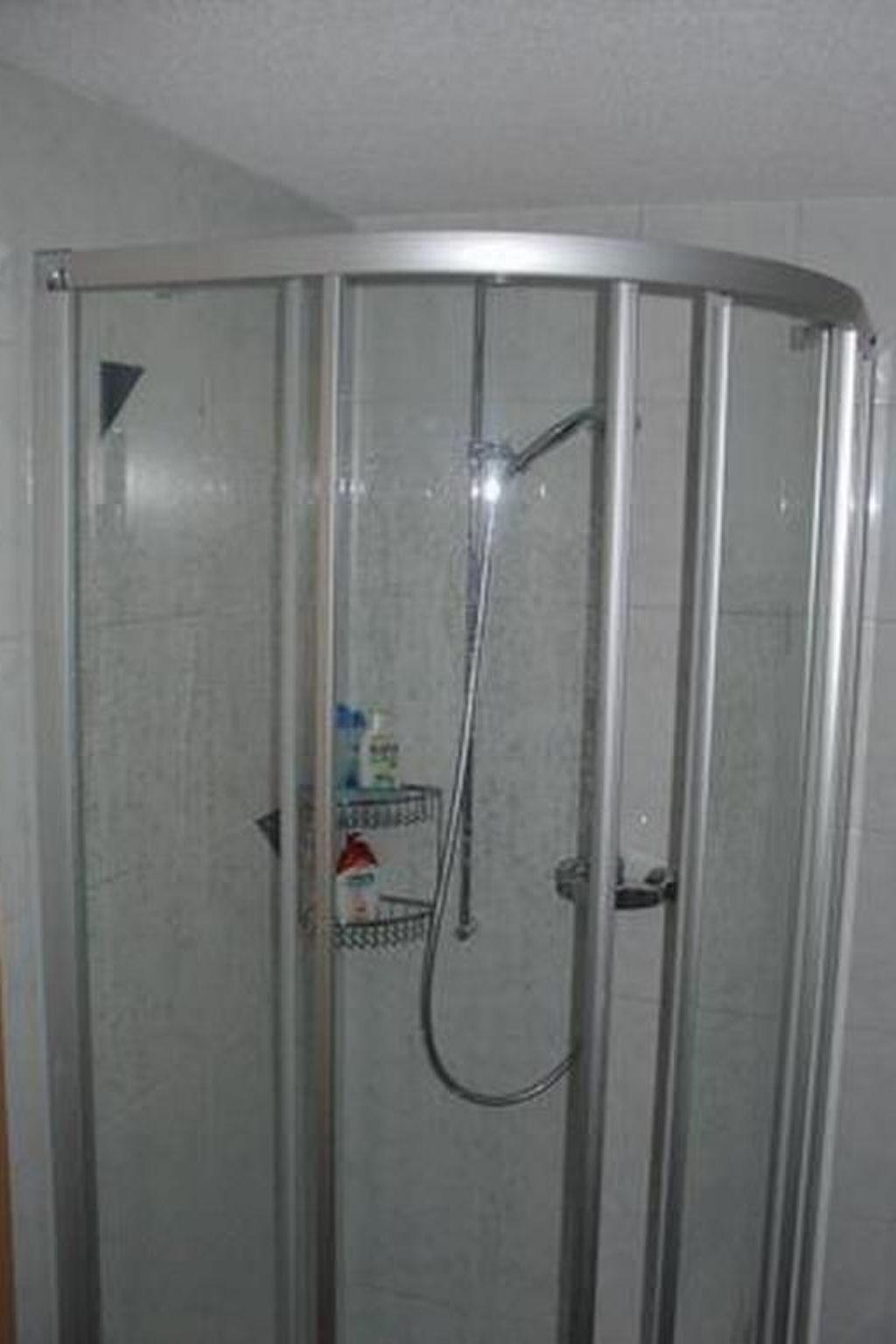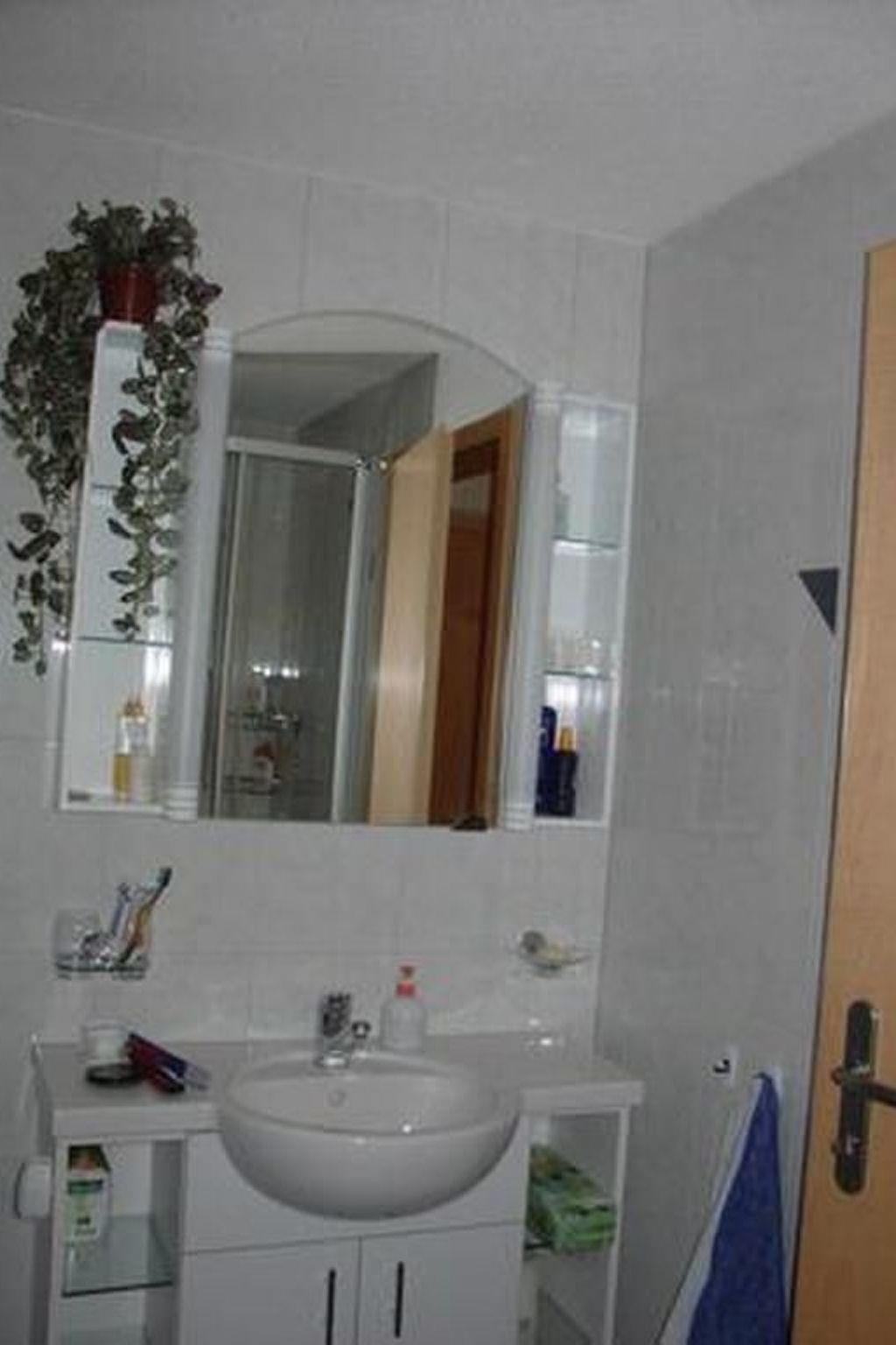 Das Badezimmer ist mit einer Dusche ausgestattet und hat einen heizbaren Handtuchhalter und genügen Ablagefläche.