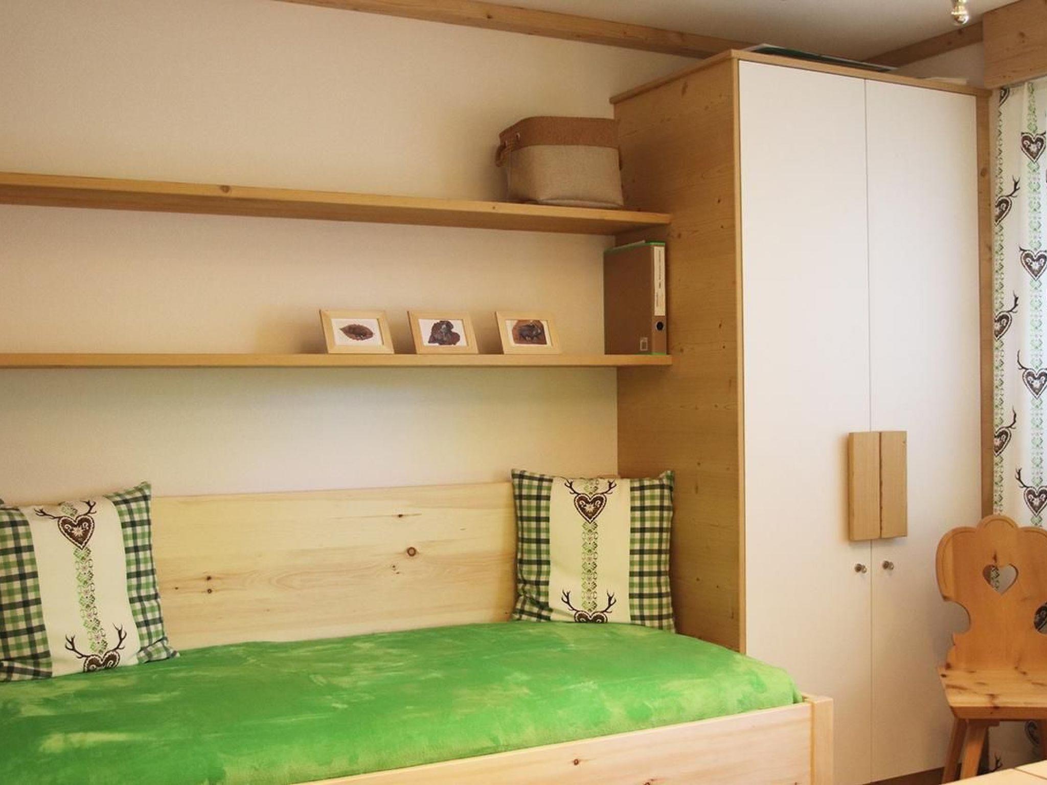 1 Schlafzimmer mit Doppelbett, 2 separate Matratzen, eingebauter Schrank, alles in Arvenholz.