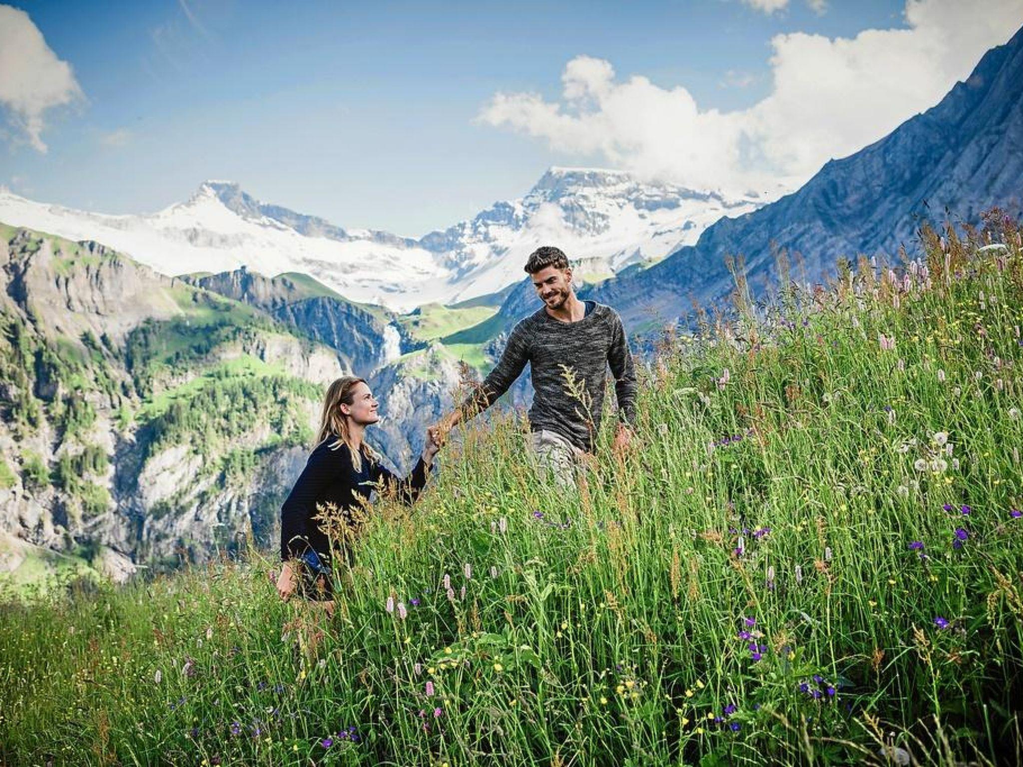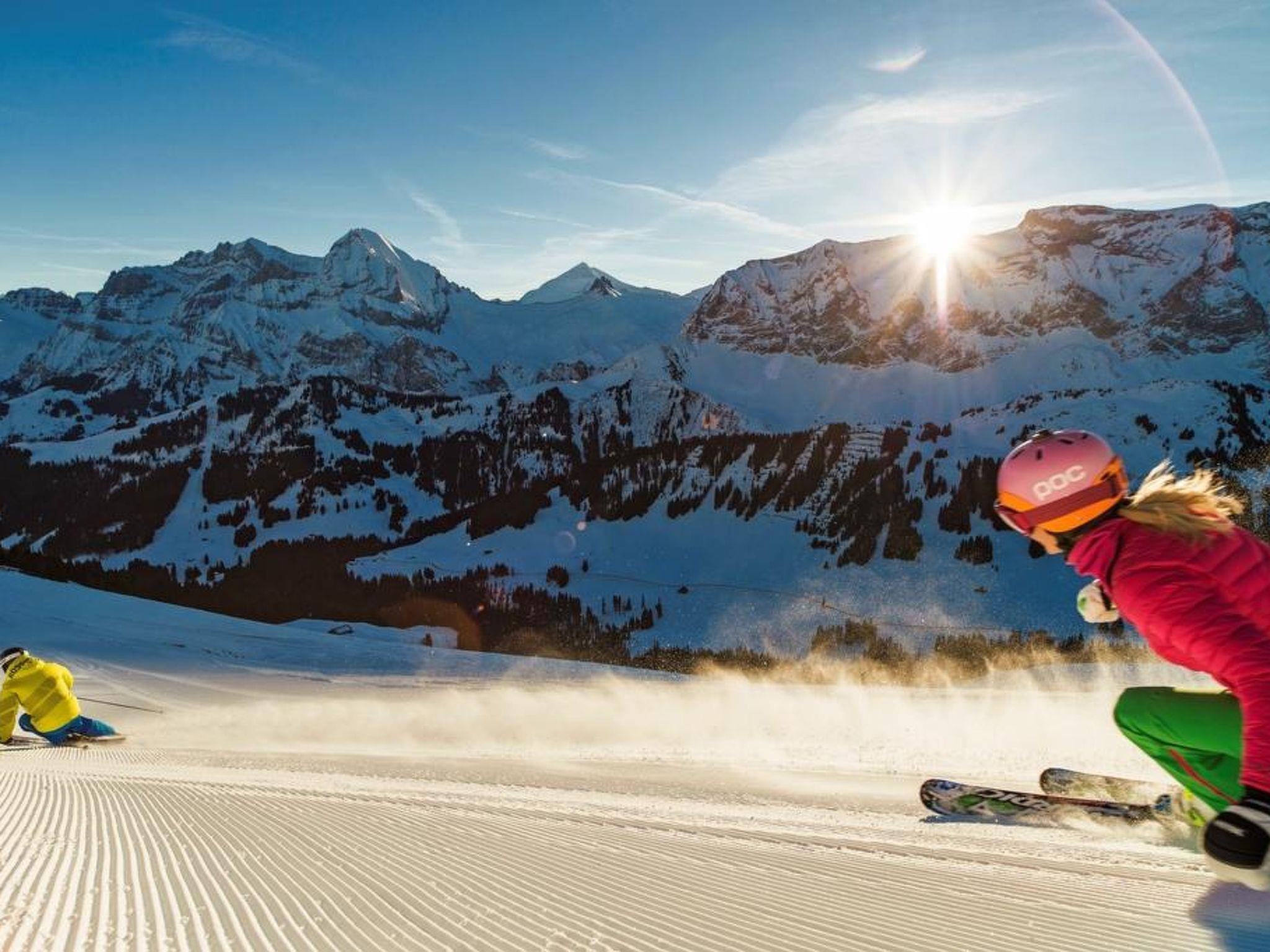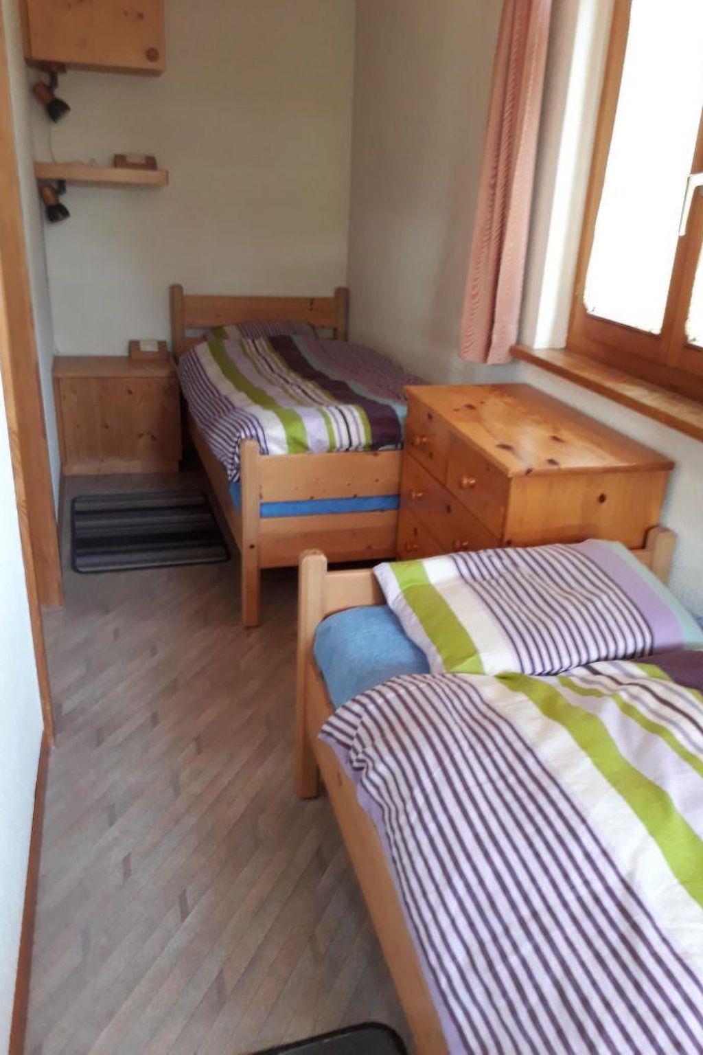 Ferienwohnug mit 2 Schlafzimmer (55m2). Jedes Schlafzimmer verfügt über 2 Betten, im einen Zimmer lassen sich die Betten zu einem Doppelzimmer zusammenschieben. Wohnessküche, Tisch mit Eckbank, Spühlmaschine, Kühlschrank, diverses Küchenmaterial (Raclett, Fondue). Wohnzimmer mit Sofa, Fernseher und einem Schrankbett. Badezimmer mit Dusche, WC, ausziehbarer Wickeltisch, Haarföhn. Waschmaschine, Tumbler und Seccomat im UG. Grosser Balkon mit Bergpanorama Sicht auf Bunder, Engstligen und Chuenisbergli, Gartenmöbel und Elektrogrill. Parkplatz vorhanden. Ski- und Veloraum 5 Gehminunten ins Dorf und zur Seilbahnstation Dorf 3 Gehminunten ins Freibad Gruebi (Gratiseintritt).