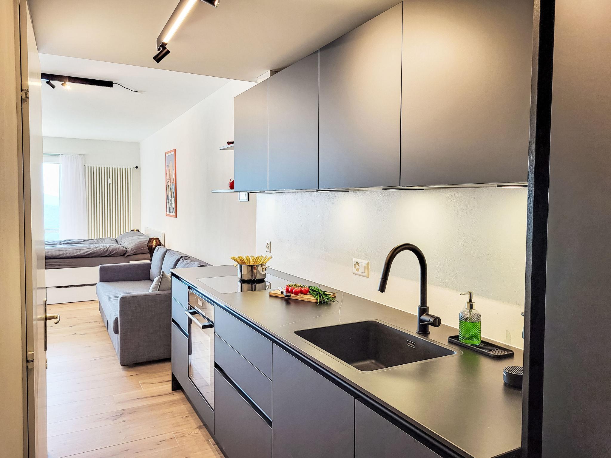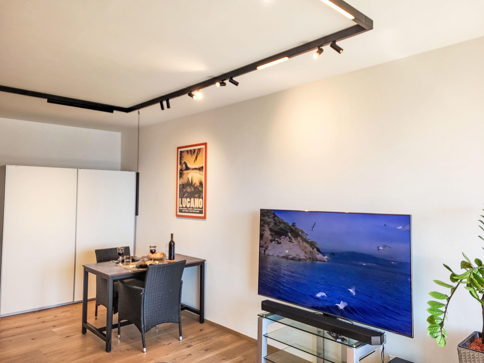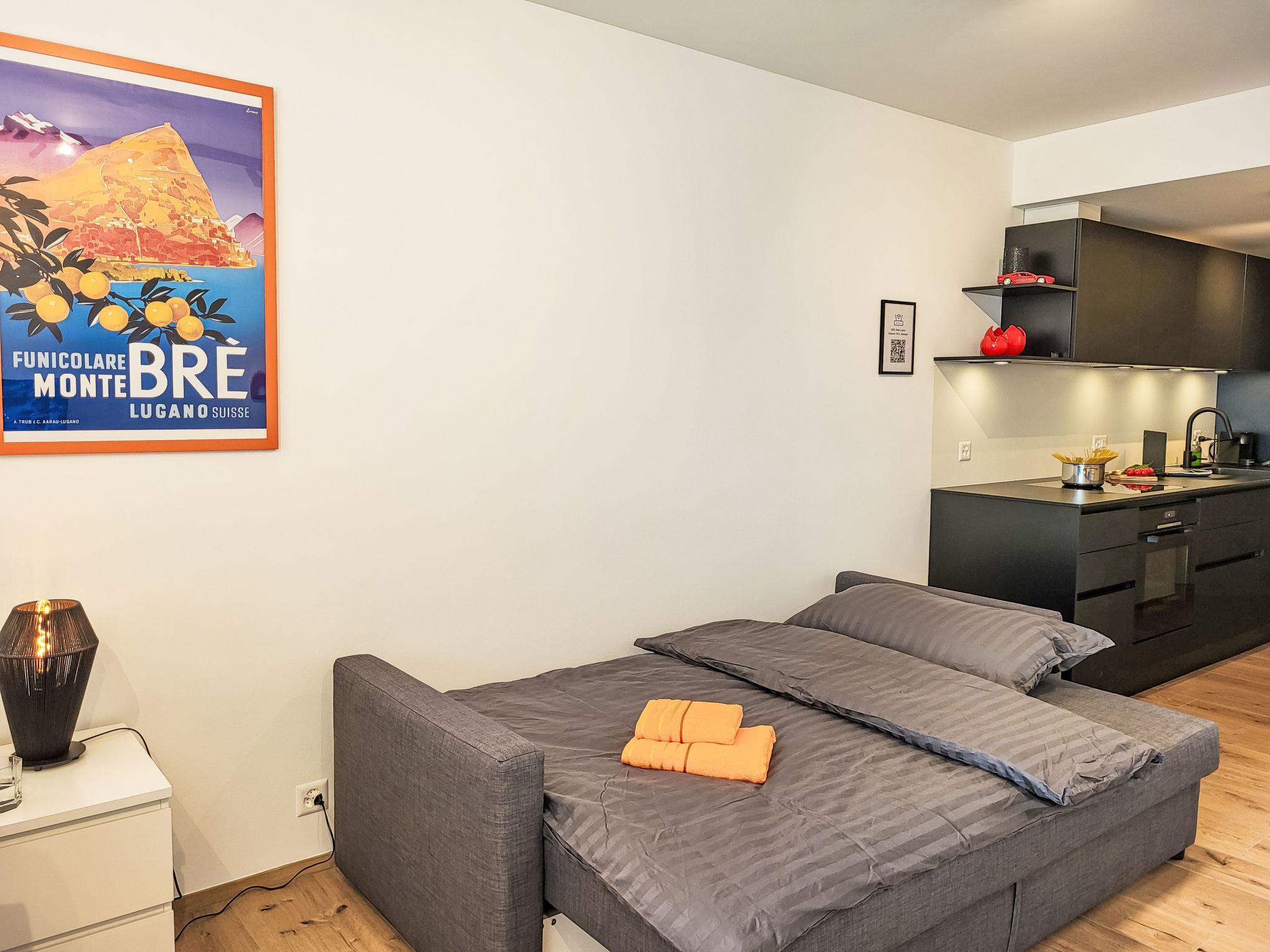 "Residenza Monte Brè - Apt. 203 Haus2", 1-Zimmer-Wohnung 28 m2 im 2. Stock, Südwestlage. Vollständig renoviert im Jahre 2025, komfortabel und modern eingerichtet: offenes Wohn-/Schlafzimmer mit 1 Diwanbett (140 cm, Länge 200 cm), 1 Doppelbett (160 cm, Länge 200 cm). Offene Küche im Eingang (Backofen, Geschirrspüler, 4 Induktionskochplatten, Toaster, Wasserkocher, Mikrowelle, elektrische Kaffeemaschine, Kapseln für die Kaffeemaschine (Nespresso) extra). Dusche/WC. Heizung. Kleiner Balkon 4 m2, Südwestlage. Balkonmöbel. Herrliche Panoramasicht auf den See, die Berge, die Landschaft und die Stadt. Zur Verfügung: Kinderhochstuhl, Babybett bis 2 Jahre (extra), Haartrockner. Internet (WLAN, gratis, Bandbreite: 1'000 Mbit/s). Parkplatz (extra) beim Haus. Bitte beachten: Nichtraucher-Unterkunft. NL-00012843