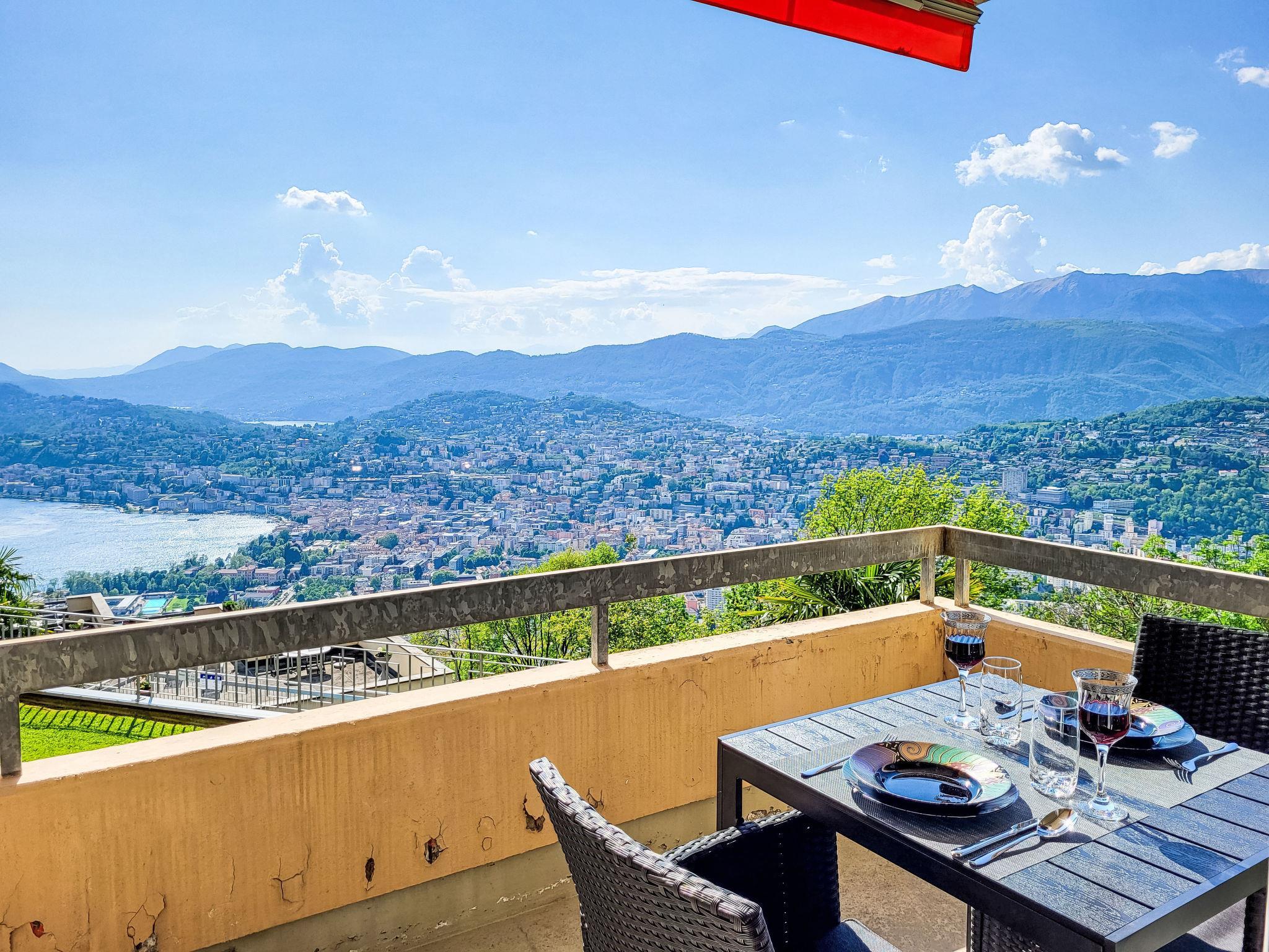 Aldesago 6 km von Lugano: Inmitten der Natur, am Monte Brè, befindet sich das komfortables Appartementhaus "Residenza Monte Bré Aldesago". 34 Wohnungen in der Residenz. Oberhalb von Lugano, ruhige, sonnige Lage am Hang, 5 m vom Waldrand, 4.4 km vom See, in einer Sackgasse, im Grünen. Zur Mitbenutzung: Schwimmbad eckig beheizt (12 x 4 m, 154 - 160 cm tief, saisonale Verfügbarkeit: 19.Apr. - 25.Okt.) mit Innentreppe. Aussendusche, Tischtennis, Terrasse. Im Hause: Zentralheizung, Waschmaschine (zur Mitbenutzung). Zufahrt bis zum Haus (Bergstrasse). Parkplatz (extra) beim Haus. Lebensmittelgeschäft 6 km, Einkaufszentrum 12 km, Bushaltestelle "Bus Nr. 12" 200 m, Bahnstation "Lugano SBB/FFS" 7.2 km, See Lago di Lugano. Golfplatz (18 Loch) 15 km, Wanderwege ab Haus 1 m. Nahe gelegene Sehenswürdigkeiten: Gandria 5 km, Swiss Miniatur, Melide 13 km, Museum Hermann Hesse, Montagnola 11 km, Mercato Ponte Tresa, IT 17 km, Como 40 km. Bekannte Seen in der Umgebung sind gut erreichbar: Lago di Lugano, Lago di Como, Lago Maggiore. Wandergebiete: Monte Tamaro, San Salvatore-Carona-Parco san Grato, Alpe Vicania-Morcote. Bitte beachten: Fahrzeug empfohlen. Geeignet für Senioren. Weitere Unterkünfte sind buchbar. Ferienwohnung Ref. CH6974.102 befindet sich auf dem gleichen Grundstück. Teilweise Sicht auf Lugano. Seilbahn "Utoring-Aldesago" 50 m. Aufzug nur im Gebäude II. Überdachter Aussenparkplatz: CHF 10.00/Tag. Nicht überdachter Parkplatz: CHF 7.00/Tag., Reservierung bei Ankunft. WLAN an oder in der Nähe der Rezeption. Öffentliche Busverbindung und Standseilbahn nach Lugano tagsüber im Halbstundentakt.