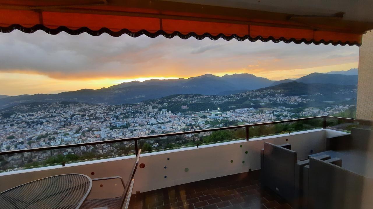 Willkommen in "Al Bosco", eine Perle von Ferienwohnung, gelegen am sonnigen Hang des Monte Bré im malerischen Aldesago, einem Ortsteil von Lugano, bietet diese exklusive 2½-Zimmer Wohnung im obersten Stockwerk eines Kondominiums (mit Lift) nicht nur Ruhe und Privatsphäre direkt am Waldrand, sondern auch eine phantastische Aussicht auf die Bucht von Lugano, den majestätischen San Salvatore und die Alpen. Sonnige Wetterbedingungen vorausgesetzt, werden die Abende auf Ihrem privaten Balkon zu einem unvergesslichen Erlebnis, wenn die Sonne hinter den Bergen untergeht.