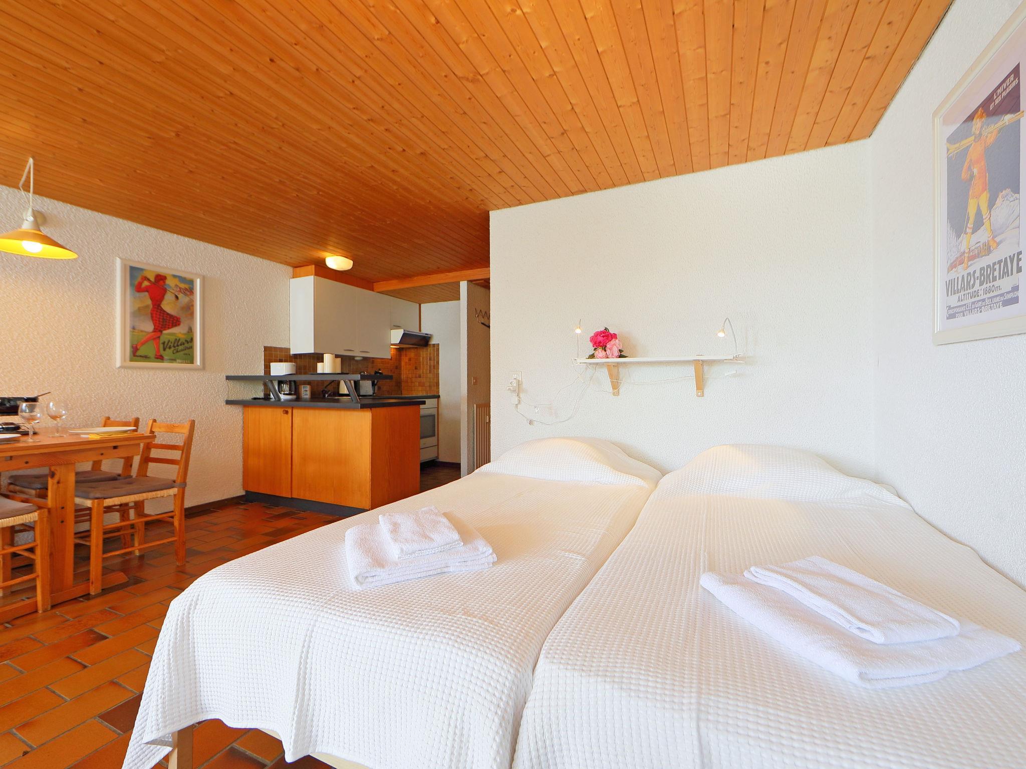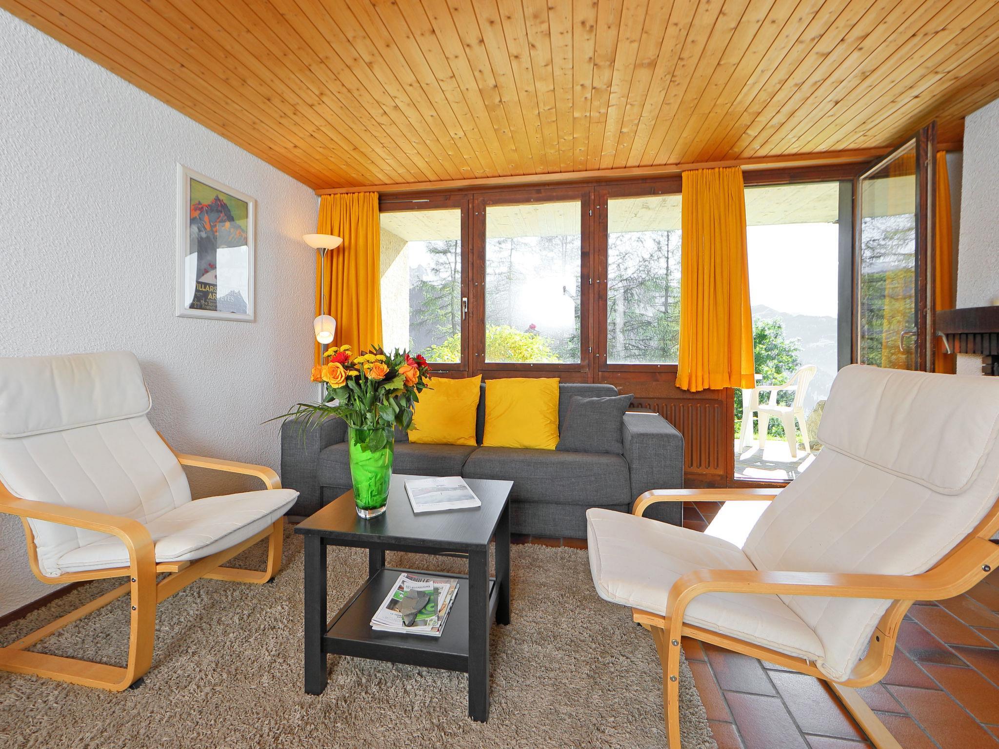 "Les Beluardes Bl. 151/2", 1-Zimmer-Wohnung 30 m2, im ebenerdigen Untergeschoss, Südlage. Einfach und zweckmässig eingerichtet: Wohn-/Esszimmer mit 1 Doppeldiwanbett und 1 Doppelbett (160 cm, Länge 200 cm), offenem Kamin und TV (Flachbildschirm), DVD. Ausgang zur Terrasse. Kochnische (Backofen, 4 Glaskeramikplatten, Toaster, Wasserkocher, elektrische Kaffeemaschine, Racletteofen, Fondue Set (Käse)). Bad/WC. Kleine Terrasse, Südlage. Terrassenmöbel. Sicht auf die Berge und die Landschaft. Zur Verfügung: Haartrockner. Internet (WLAN, gratis). Parkplatz Nr. 151/2.