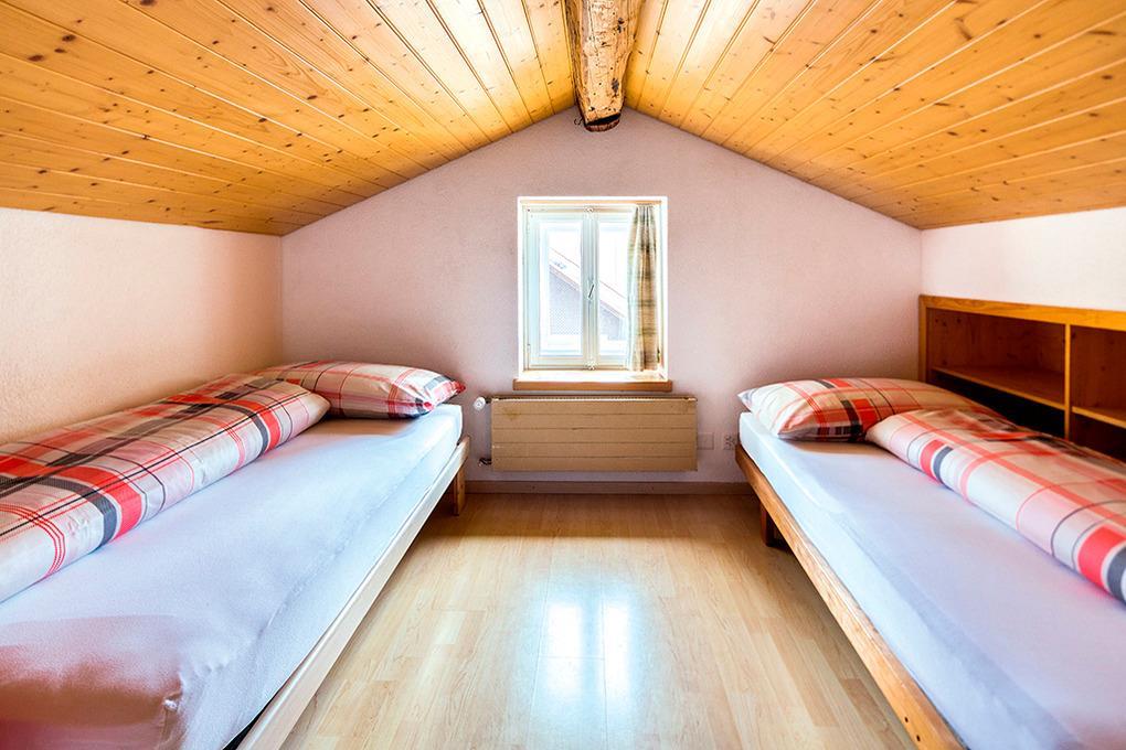 Haus: Regionaltypisches Ferienhaus mit funktionaler Ausstattung. Zwei Chalethälften, die einzeln oder gemeinsam gebucht werden können. Bei Buchung beider Haushälften ergibt sich ein Ferienhaus zum Alleinbewohnen. 10 1/2-Zimmerhaus mit 155 qm Wohnfläche über 3 Etagen. 2 separate Eingänge, Verbindungstür zwischen beiden Hausteilen nur in der 2. Etage. Aufgrund der Größe der Essräume empfehlen wir eine Belegung mit max. 12-14 Personen.
