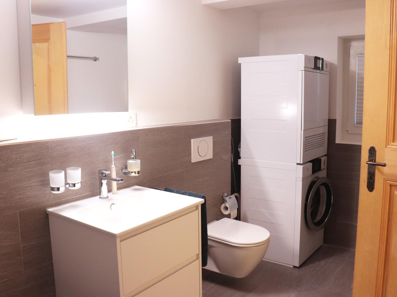 Hell, moderne und komplett eingerichtete Küche mit Abwaschmaschine. Küchenwäsche vorhanden und im Preis inklusive. Badzimmer:
