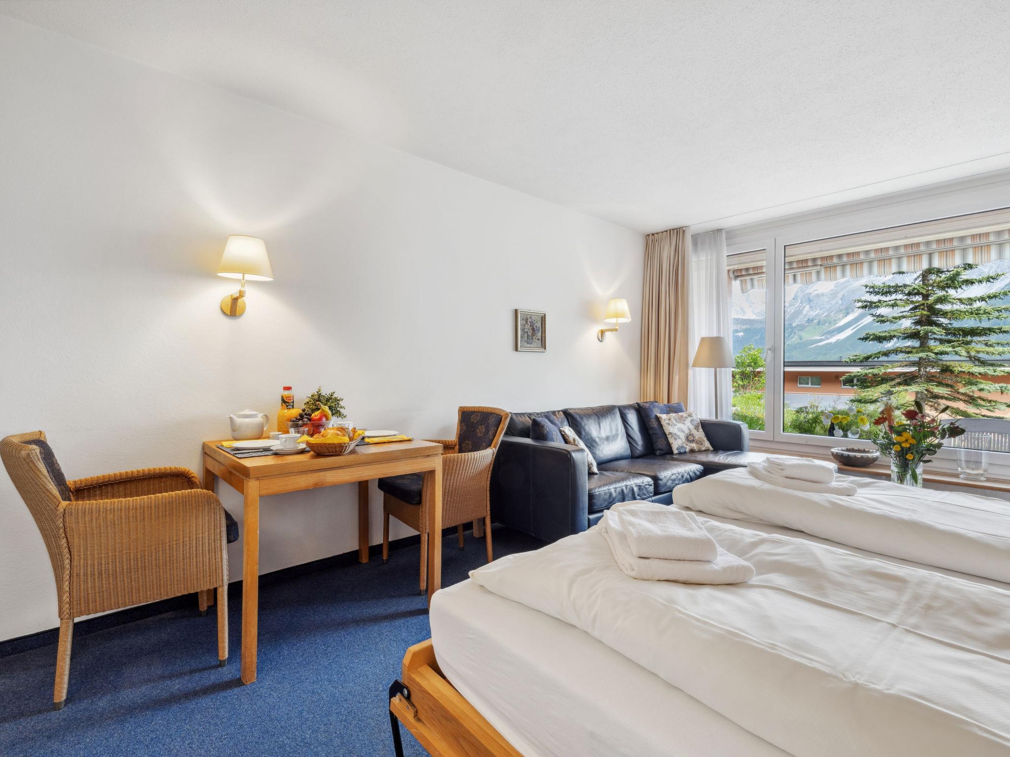 1-Zimmer-Wohnung 28 m2, im Erdgeschoss. Gemütlich eingerichtet: Wohn-/Esszimmer mit 2 Wandschrankbetten und Sat-TV (Flachbildschirm), Radio. Ausgang zum Gartensitzplatz. Kochnische (Geschirrspüler, 4 Glaskeramikplatten). Dusche/WC. Gartensitzplatz, Ostlage. Schöne Sicht auf die Berge, die Landschaft und die Ortschaft. Zur Verfügung: Internet (Wireless LAN, gratis). Bitte beachten: Nichtraucher-Unterkunft.