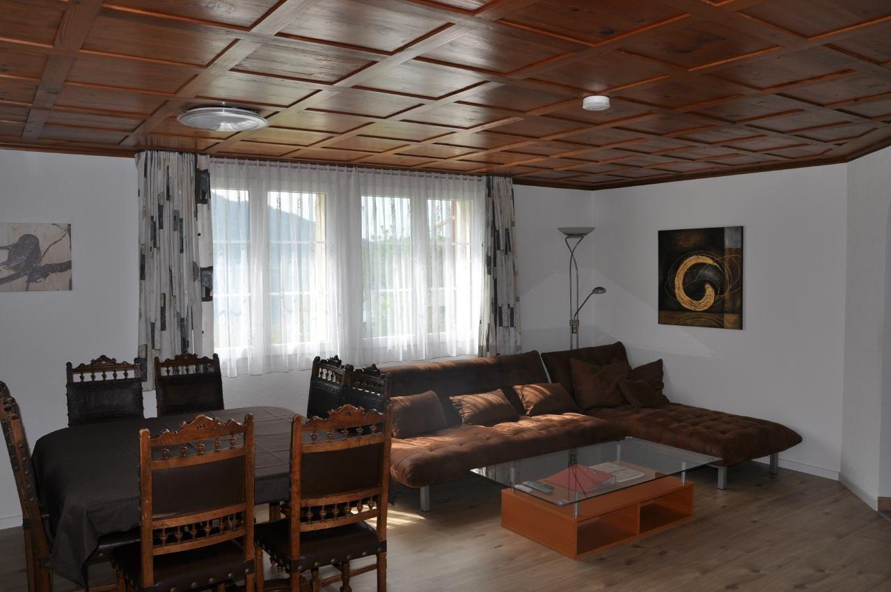 Im Inneren erwartet Sie ein gemütliches Ambiente mit allem, was Sie für einen angenehmen Aufenthalt benötigen. Die Wohnung verfügt über zwei Schlafzimmer, jeweils mit einem Doppelbett (160x200) und Kleiderschrank, und bietet so Platz für bis zu vier Personen. Für Kleinkinder ist ausserdem ein zusätzliches Kleinkinderbett vorhanden. In der separaten Küche mit Kühl-Gefrierkombination, Spülmaschine, Backofen, Glaskeramikherd, Kaffeemaschine, Raclette-Ofen, Fonduepfanne, Wasserkocher und einer gemütlichen Essecke finden Sie alles, was Sie im Urlaubsalltag brauchen. Das Wohnzimmer ist mit einem über 100 Jahre alten Esstisch, einem gemütlichen Sofa, Fernseher, DVD-Player, einer Auswahl an DVDs, Büchern und Spielen ausgestattet – ideal, um es sich bei schlechtem Wetter gemütlich zu machen. Für den Komfort sorgt zudem eine Wasch-/Trocknermaschine.