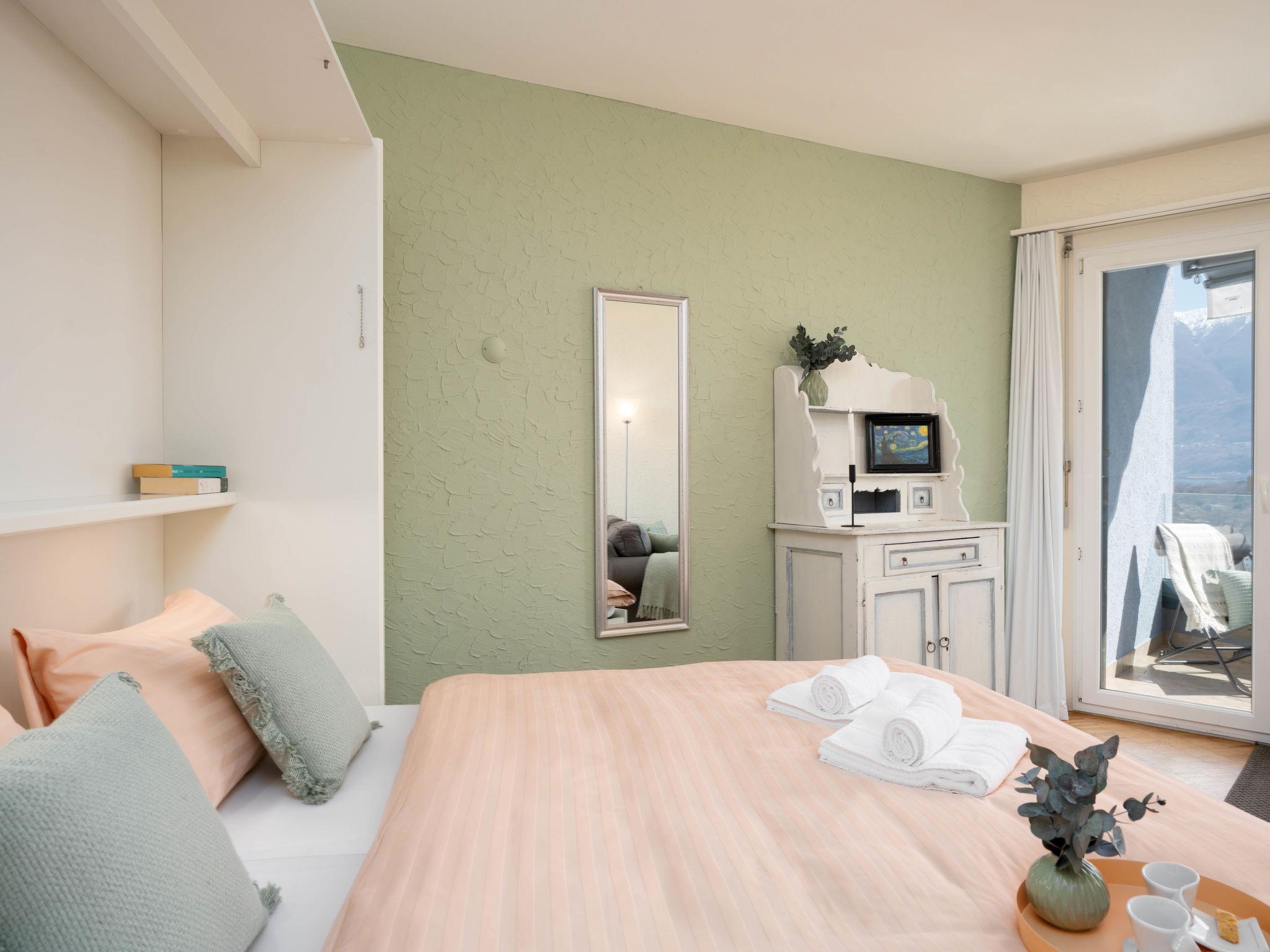 Ascona: Modernes Haus "Palazzo Miralago", auf 4 Stockwerken, Baujahr 1960, renoviert. 22 Wohnungen im Ferienhaus. Oberhalb von Ascona, 400 m vom Zentrum von Ascona, im Bezirk Lago Maggiore, ruhige, sonnige Lage am Hang, 400 m vom See. Im Hause: Empfang, Wireless LAN, Fahrstuhl, Einstellraum für Fahrräder, Zentralheizung, Waschmaschine (extra), Wäschetrockner (zur Mitbenutzung, extra). Brötchenservice möglich. Parkplatz (beschränkte Anzahl, extra) auf dem Grundstück, Gemeinschaftsgarage (extra). Parkplatz/Garage nur für kleine - mittlere Fahrzeuge geeignet. Maße: Höhe 205 cm Breite 220 cm. Einkaufsgeschäft 400 m, Lebensmittelgeschäft, Supermarkt 600 m, Einkaufszentrum 1.4 km, Bäckerei, Fußgängerzone 400 m, Zentrum zu Fuss in 10 Minuten erreichbar, Bushaltestelle "Ascona Centro (Bus Nr. 1)" 400 m, Bahnstation "SBB-CFF Locarno-Muralto" 4.7 km, Sandstrand "Bagno Pubblico Ascona" 1.3 km, Badesee "Lago Maggiore" 1.3 km, See Lago Maggiore 500 m. Golfplatz (18 Loch) 1 km, Tennis 1 km. Nahe gelegene Sehenswürdigkeiten: Madonana del Sasso, Orselina, Locarno-Ascona, Ronco sopra Ascona, Falconeria, Kamelienpark, Piazza Grande, Castelli di Bellinzona, Monte Verità, Ascona, Brissago Inseln. Bekannte Seen in der Umgebung sind gut erreichbar: Lago Maggiore, Lago di Lugano, Lago di Como, Lago di Orta. Wandergebiete: Monte Veritè, Ronco s. Ascona, Valle Maggia, VMonte Tamaro - Monte Lema, Monte Tamaro - Monte Lema. Bitte beachten: Babyausstattung auf Anfrage (extra). Be- und Entladen am Ferienhaus möglich. Weitere Unterkünfte sind buchbar. Ferienwohnung Ref. CH6612.250.1-24 befindet sich auf dem gleichen Grundstück. ACHTUNG - beschränkte Anzahl Garagenplätze und beschränkte Anzahl Aussenparkplätze direkt beim Haus - UNBEDINGT Vorreservieren.