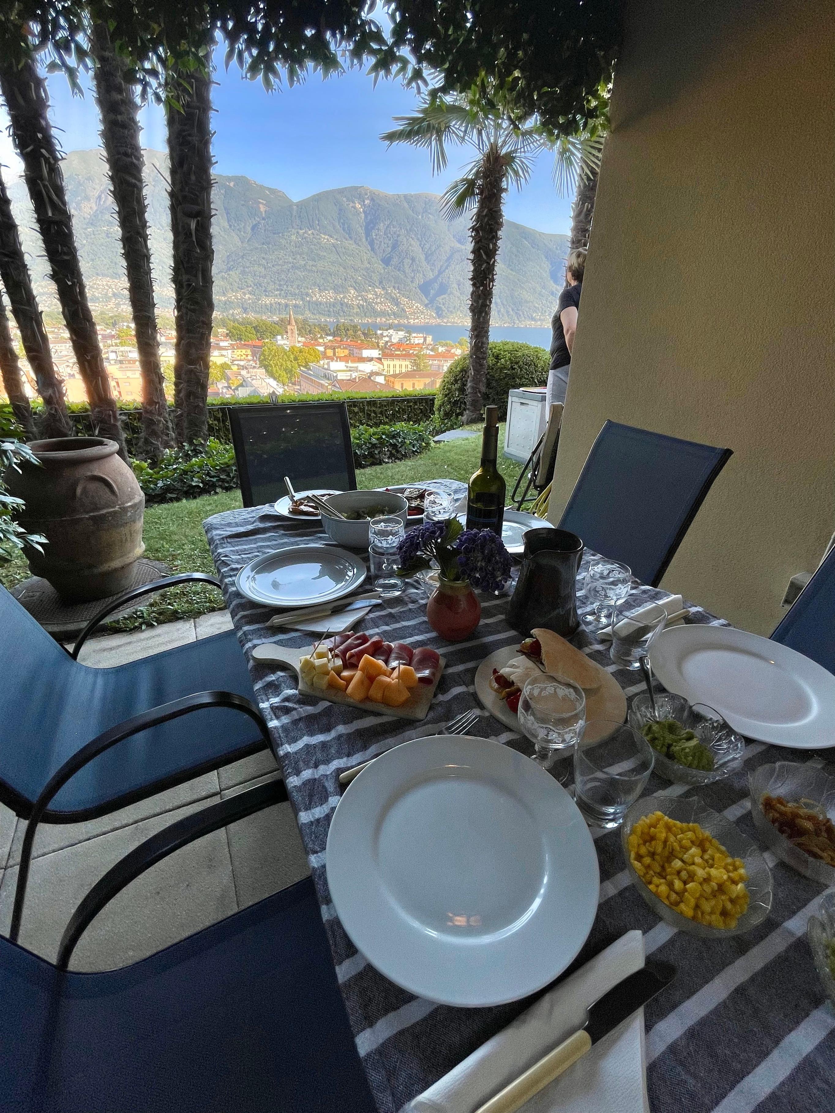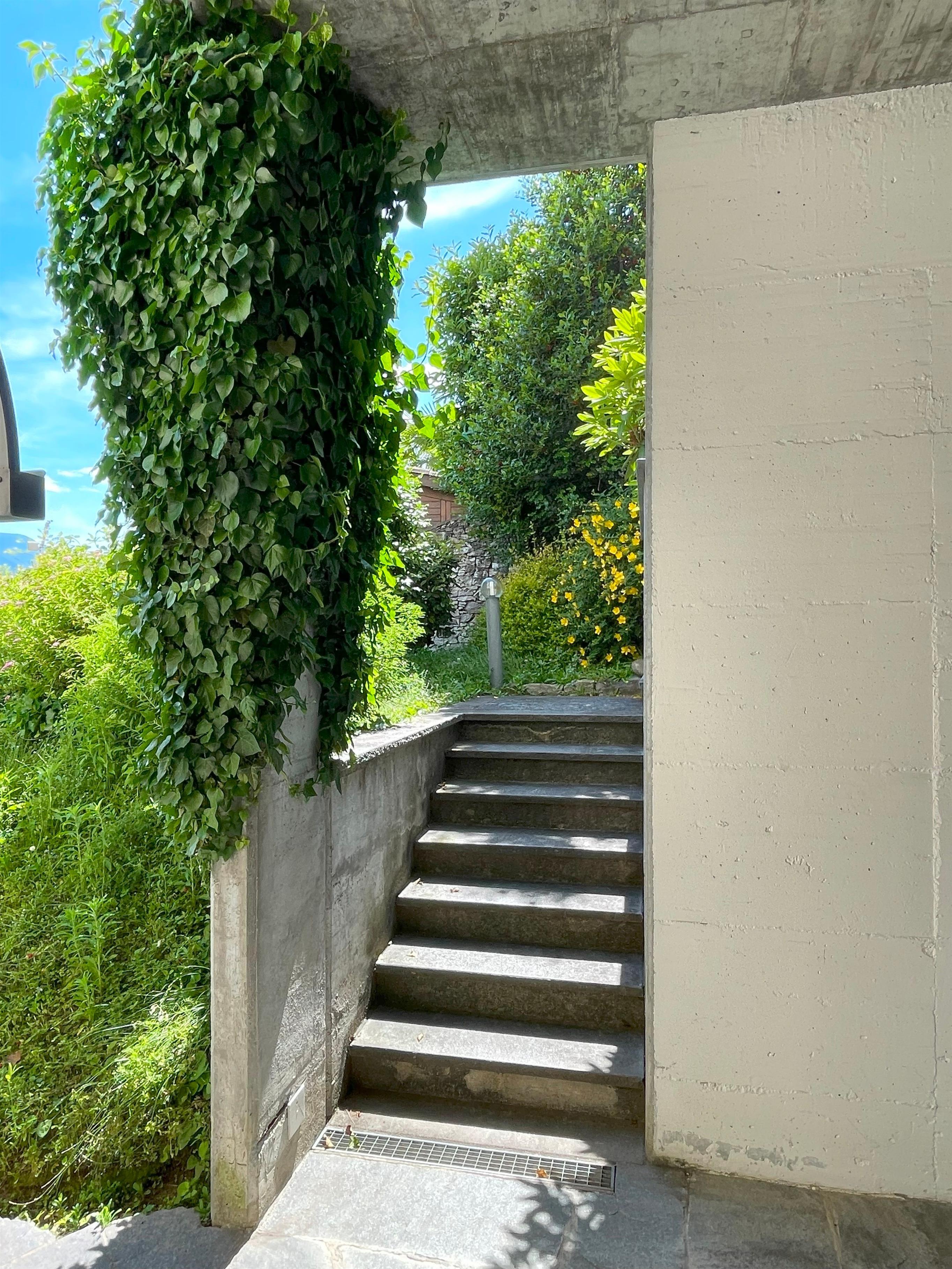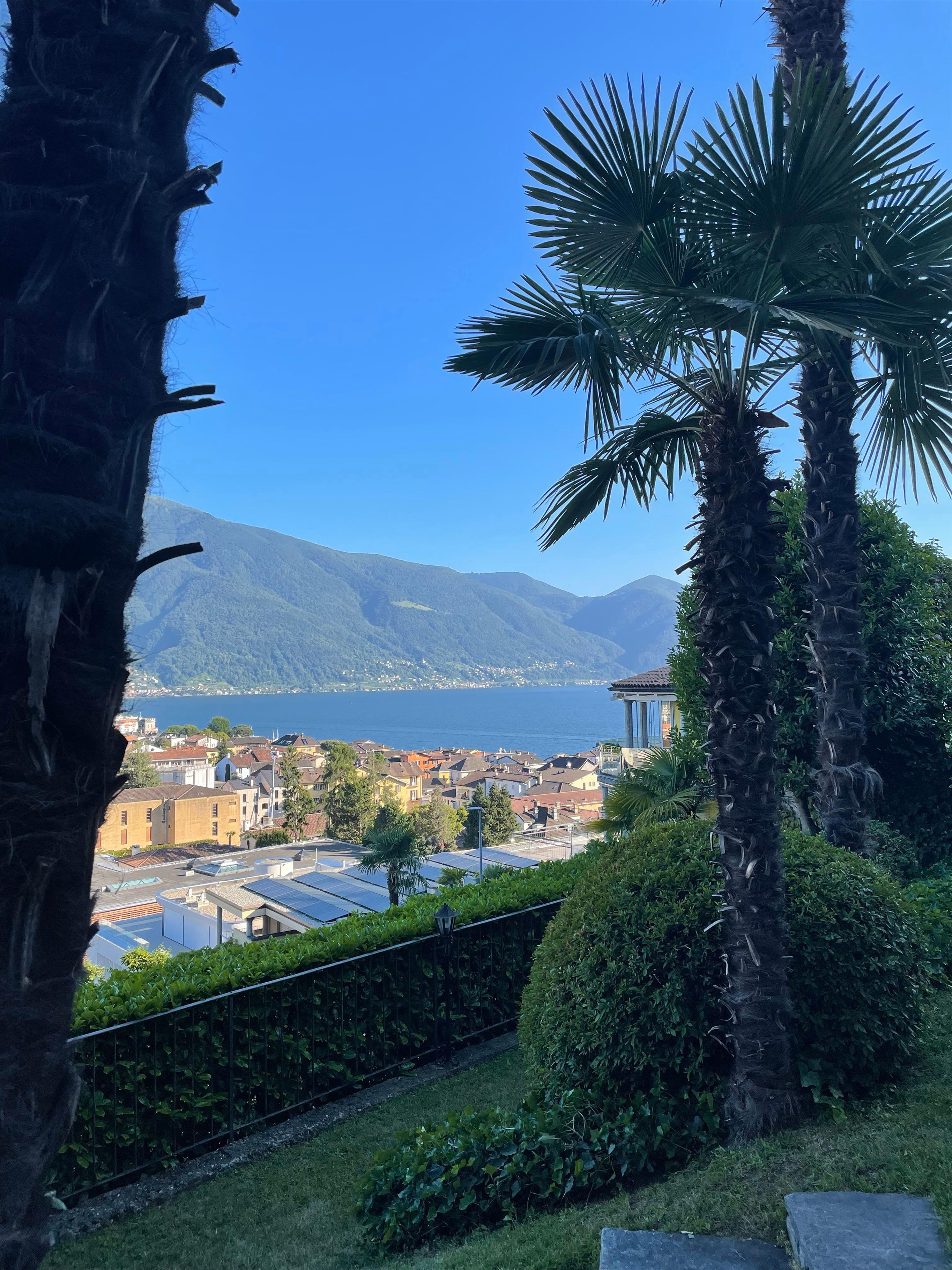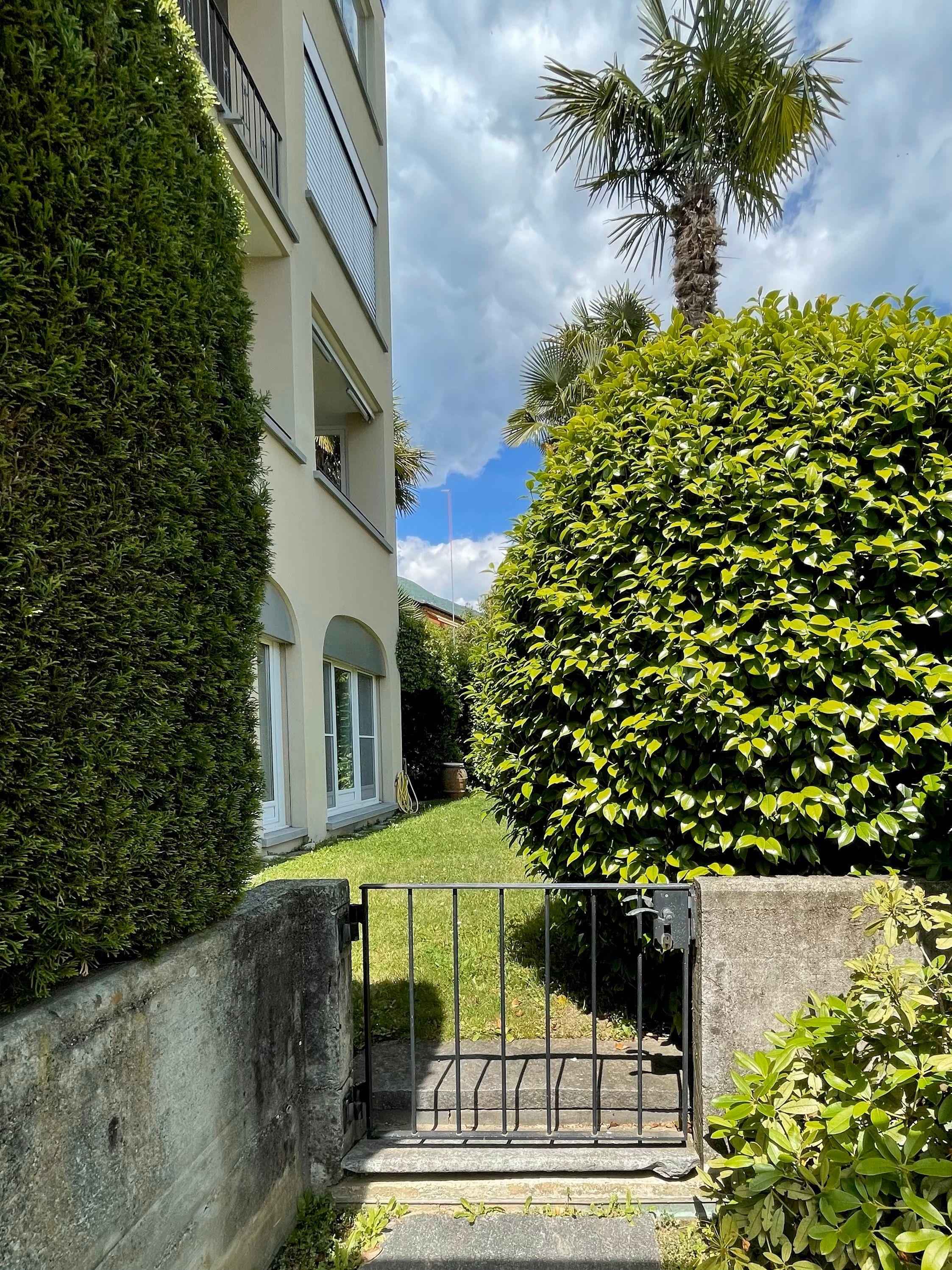 Im Außenbereich erwartet Sie ein privat zum Apartment gehörender Garten, der mit Grill, Tisch, Stühlen und Liegestühlen ausgestattet ist. Hier können Sie ungestörte Stunden im Freien genießen und dabei den uneingeschränkten Panoramablick über das Maggia-Delta, den malerischen Ort Ascona und den nördlichen Teil des Lago Maggiore bewundern. Dieser exklusive Rückzugsort bietet Ihnen die perfekte Kulisse für entspannte Tage unter freiem Himmel.