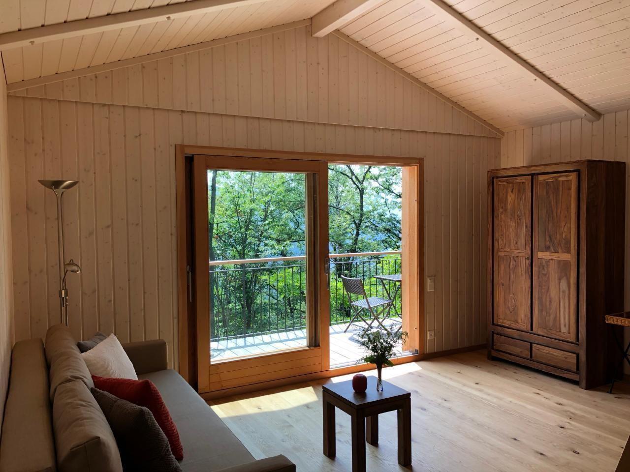 Dieses komfortable Chalet mit vielen Annehmlichkeiten befindet sich mitten im Wald von Malcantone. Terrasse bietet einen schönen Blick auf die Baumwipfel. Die Zufahrt führt über eine Naturstrasse durch den Wald.