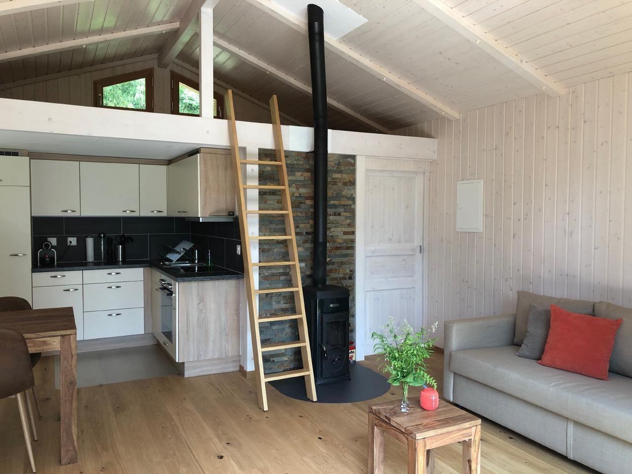 Neu gebautes romantisches Versteck im Wald. Ein modernes Loft-Chalet mit 1 Schlafzimmern für 2-3 Personen. (Kinder ab 12 Jahren) Hunde mit Zustimmung des Eigentümers grundsätzlich willkommen.