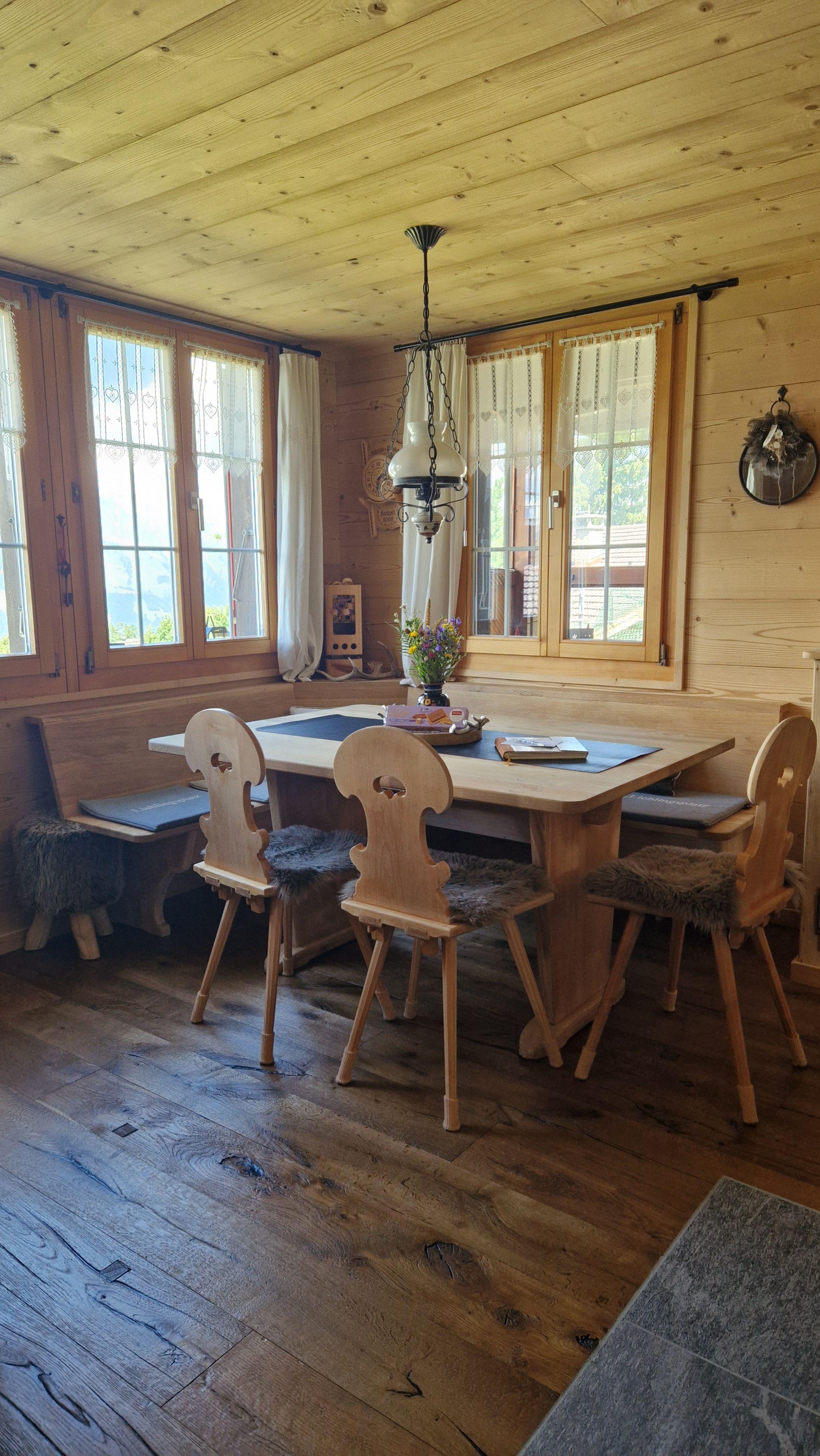 An bester Lage situiert ist das heimelige Chalet. Ihr Ausgangspunkt für tolle Wanderungen in der wundervollen Bergwelt rund um Axalp sowie für Schneesport jeglicher Art oder einfach ein gemütlicher Ort zum Relaxen.