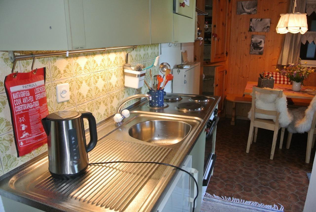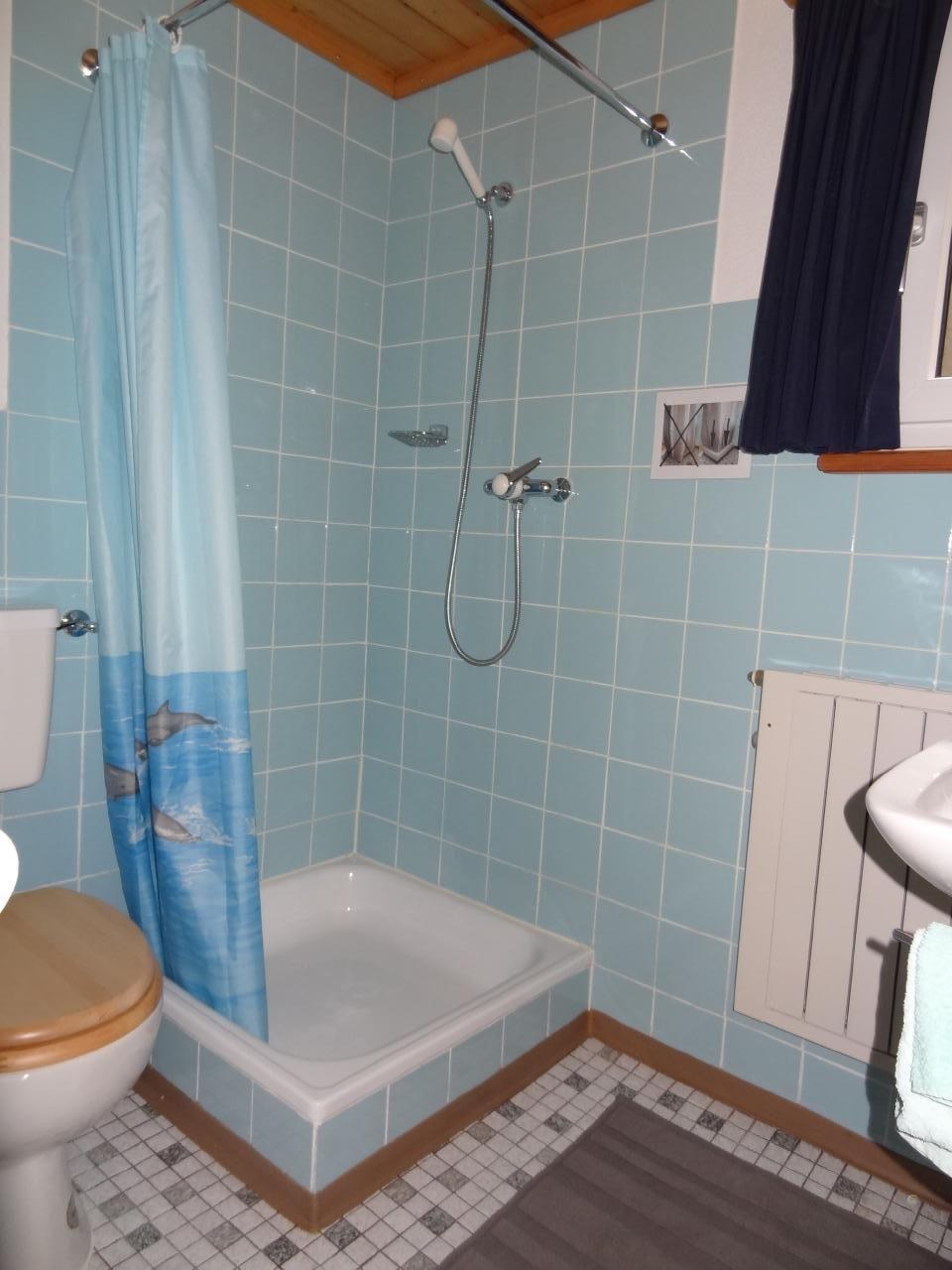 Die Wohnung liegt im Ergeschoss eines Ferienhauses. Sie besteht aus einer Essecke, Dusche mit WC und einem Wohnzimmer mit Küche und 2 Betten.